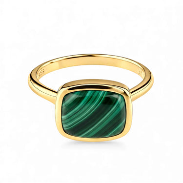 In our Malachite rings, every stone goes through strict selection and inspection to confirm its authenticity and quality. The gem is processed according to the direction of its natural lines so the pattern appears as complete and defined as possible.