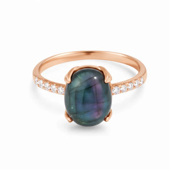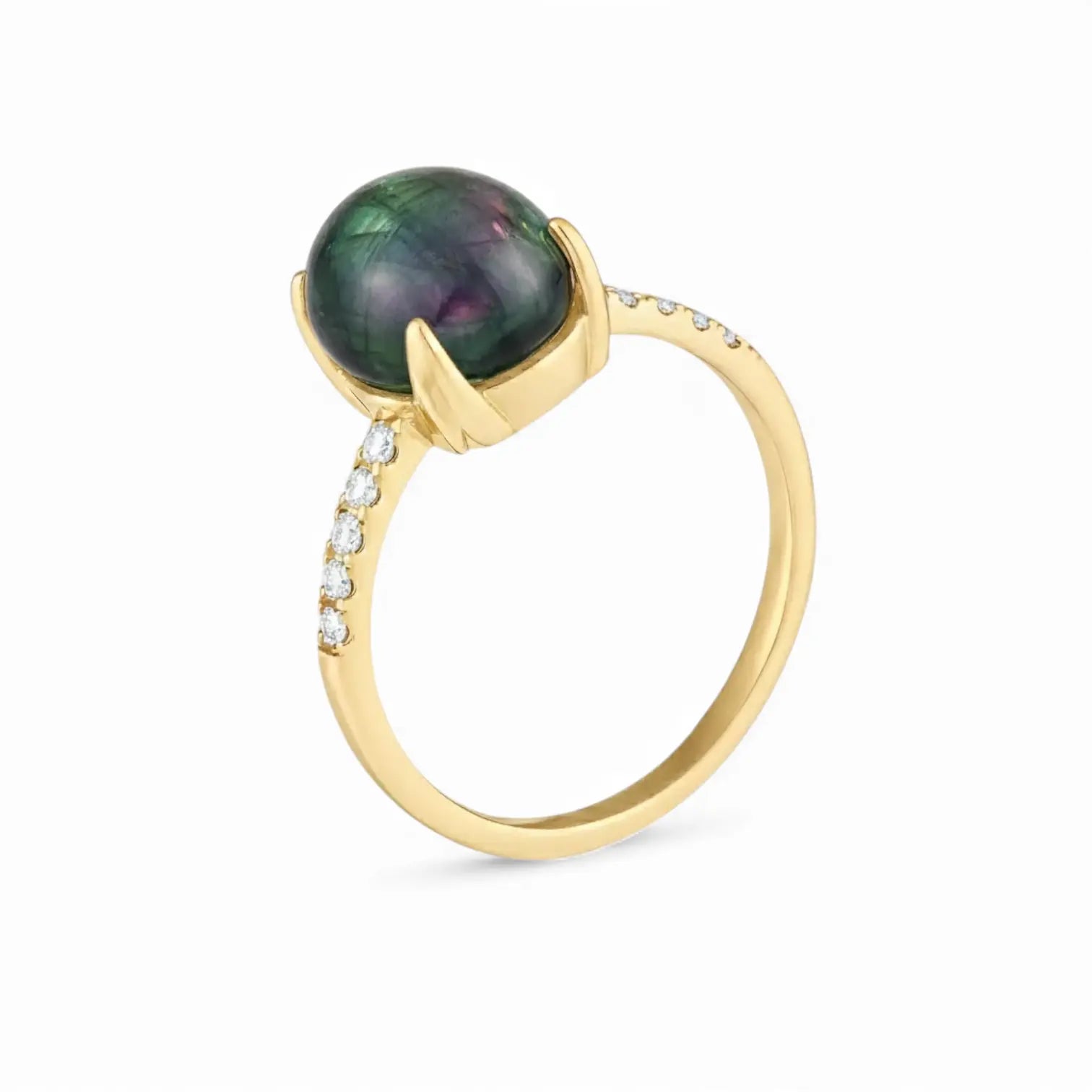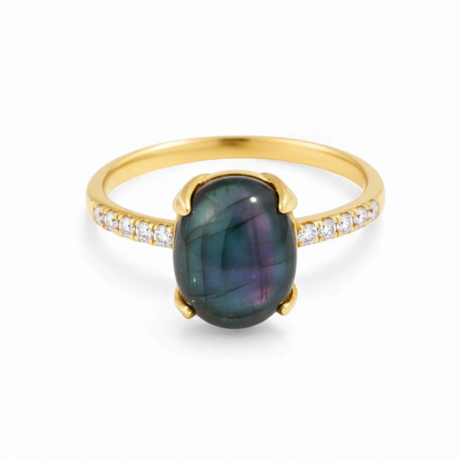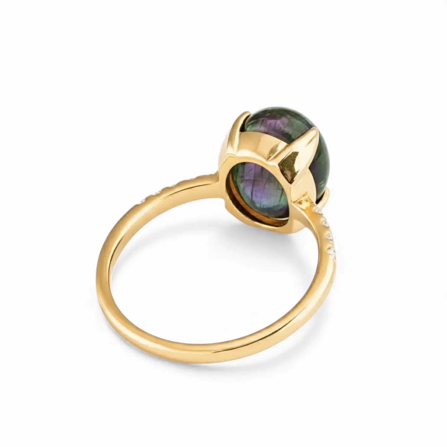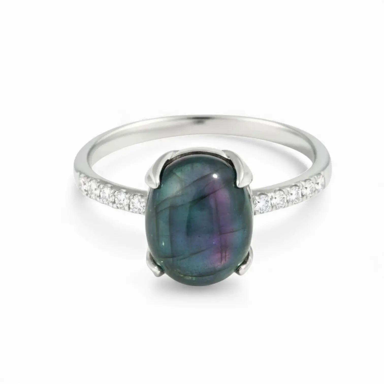 This alexandrite cabochon ring is like a magician of light, always carrying a touch of mystery. Under the light, the gemstone transforms like the passage from dawn to dusk. Created for those who embrace change fearlessly and keep their radiance through every shift. Wear it, and let your unique light keep shining through every change.
