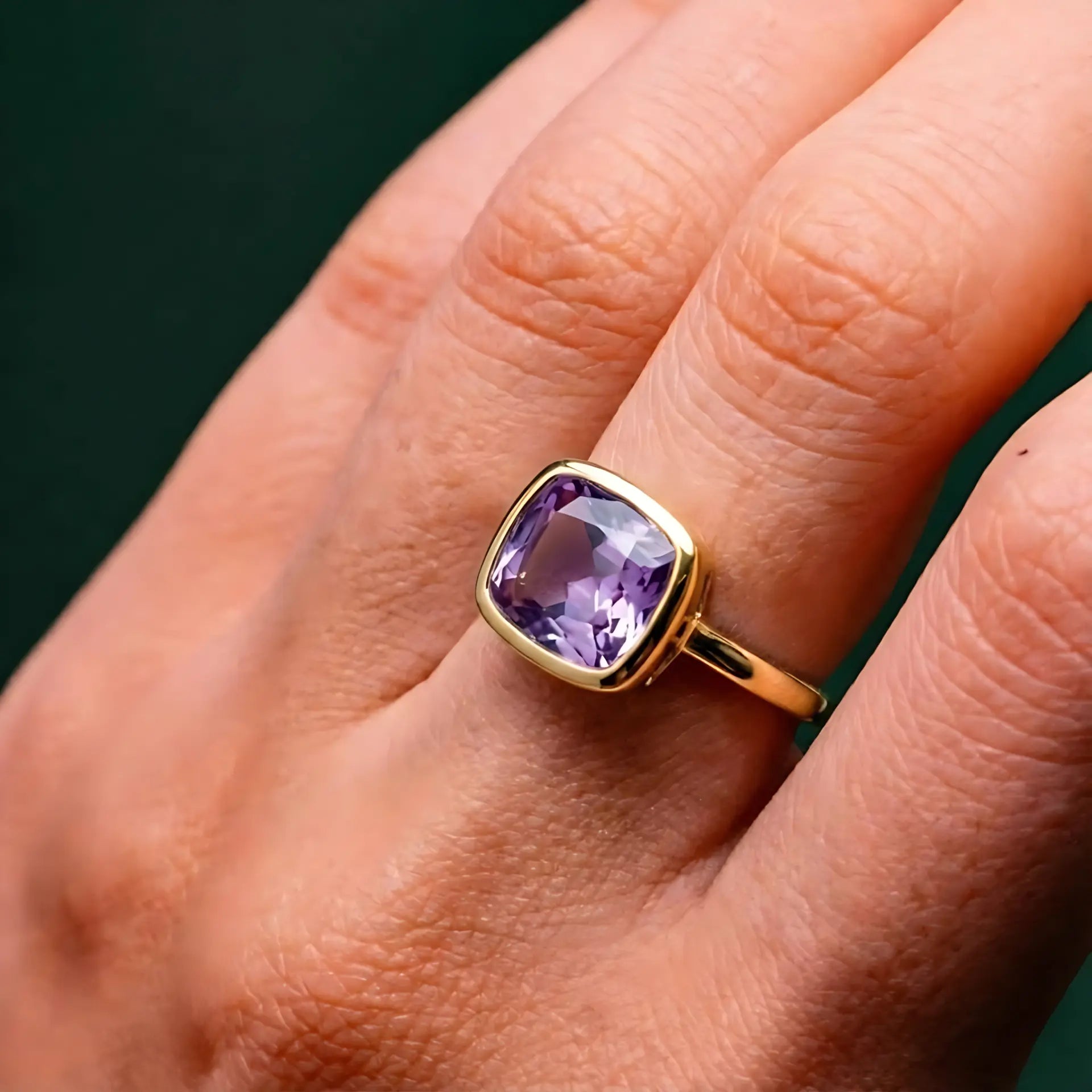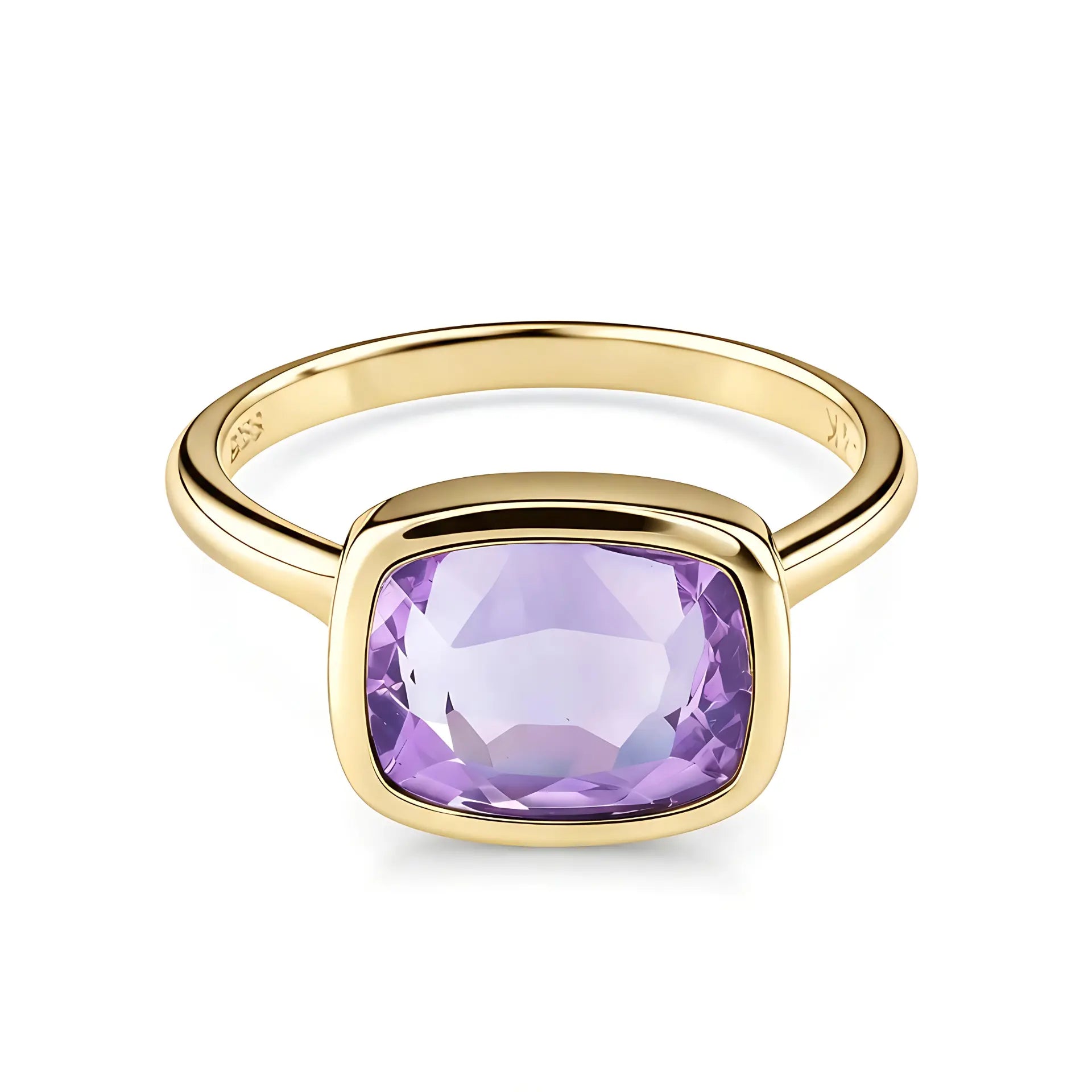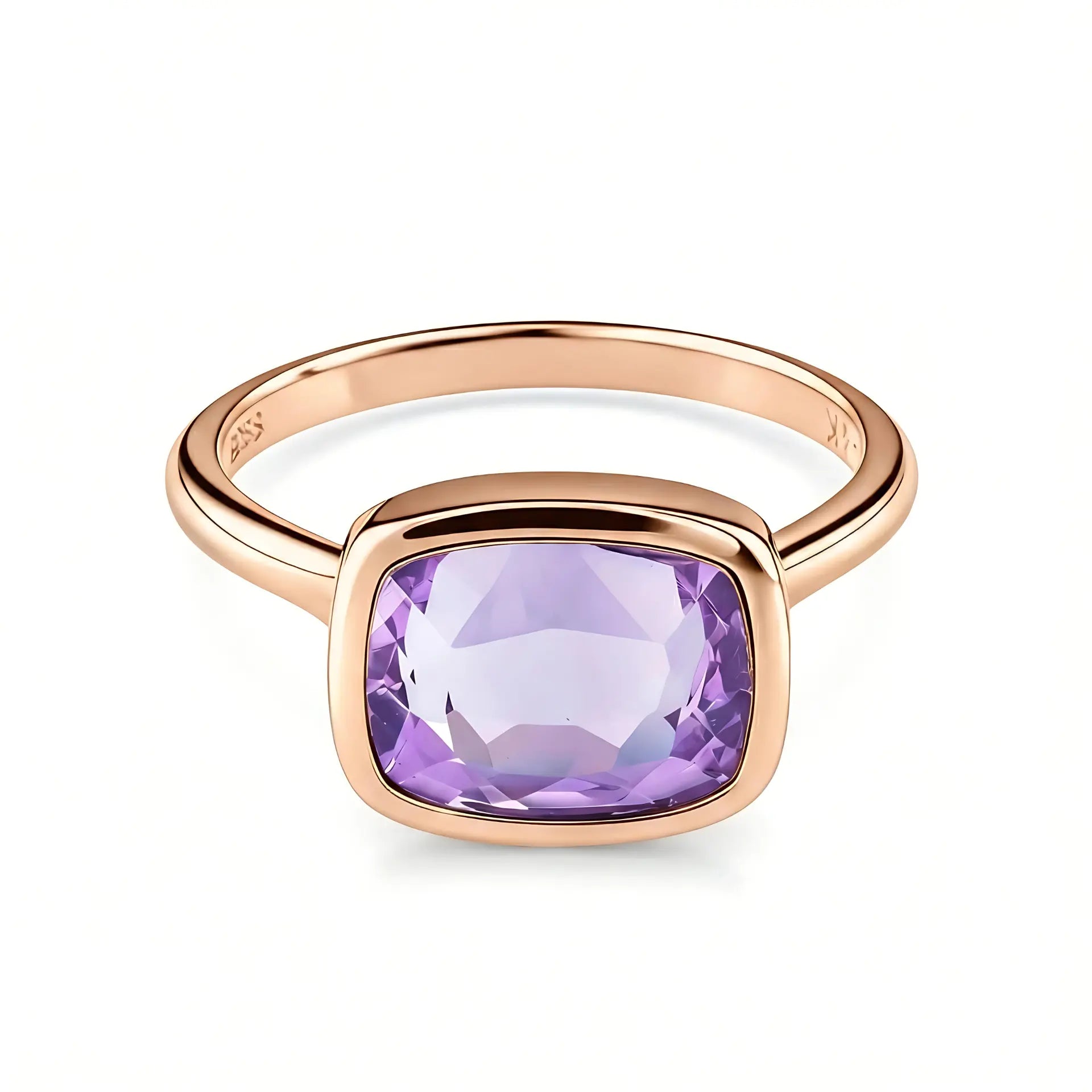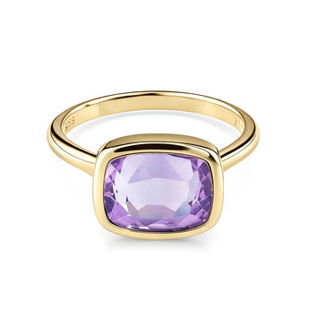 Soft purple light settles on your finger like a quiet moment that gently sinks in. The cushion-cut amethyst rests securely in its bezel setting, which allows your heart to ease. As the birthstone of February, it symbolizes tranquility. Brings a touch of gentle calm into your everyday life. It stays with you when you slow down and when you begin again. Own this ring and embrace a softer rhythm.