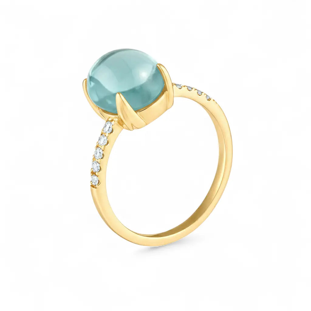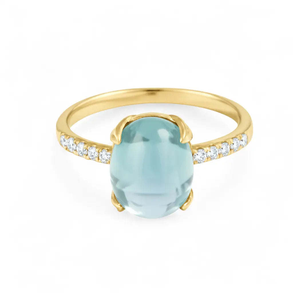 Our aquamarine cabochon ring holds the soft light of the sea within your palm. A soft blue light flows across its smooth curve, calm yet powerful. It steadies your mind and fills you with quiet courage. For babies born in March, this blue hue feels like a destined blessing. Let it become your everyday talisman, gently accompanying you as you welcome each new beginning.