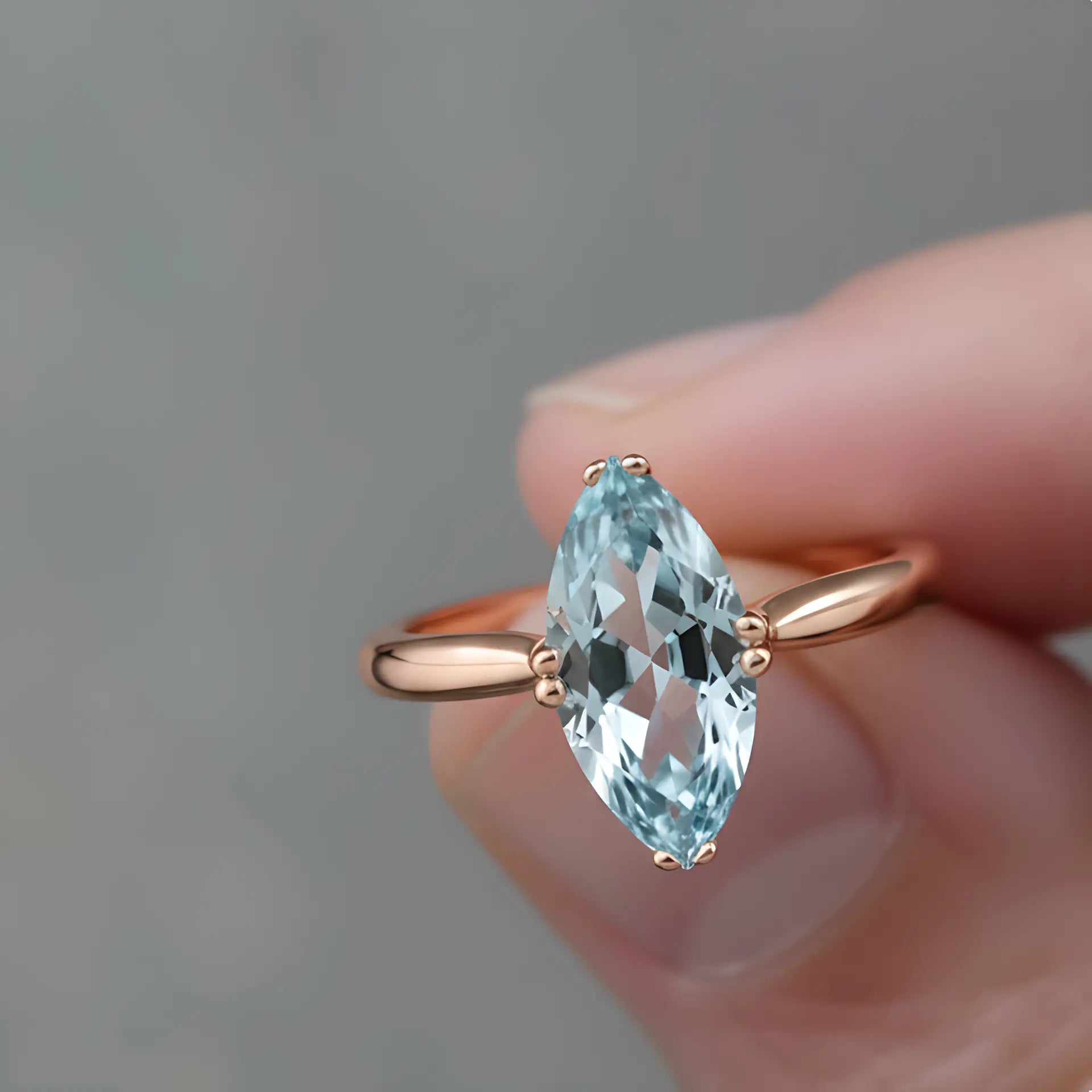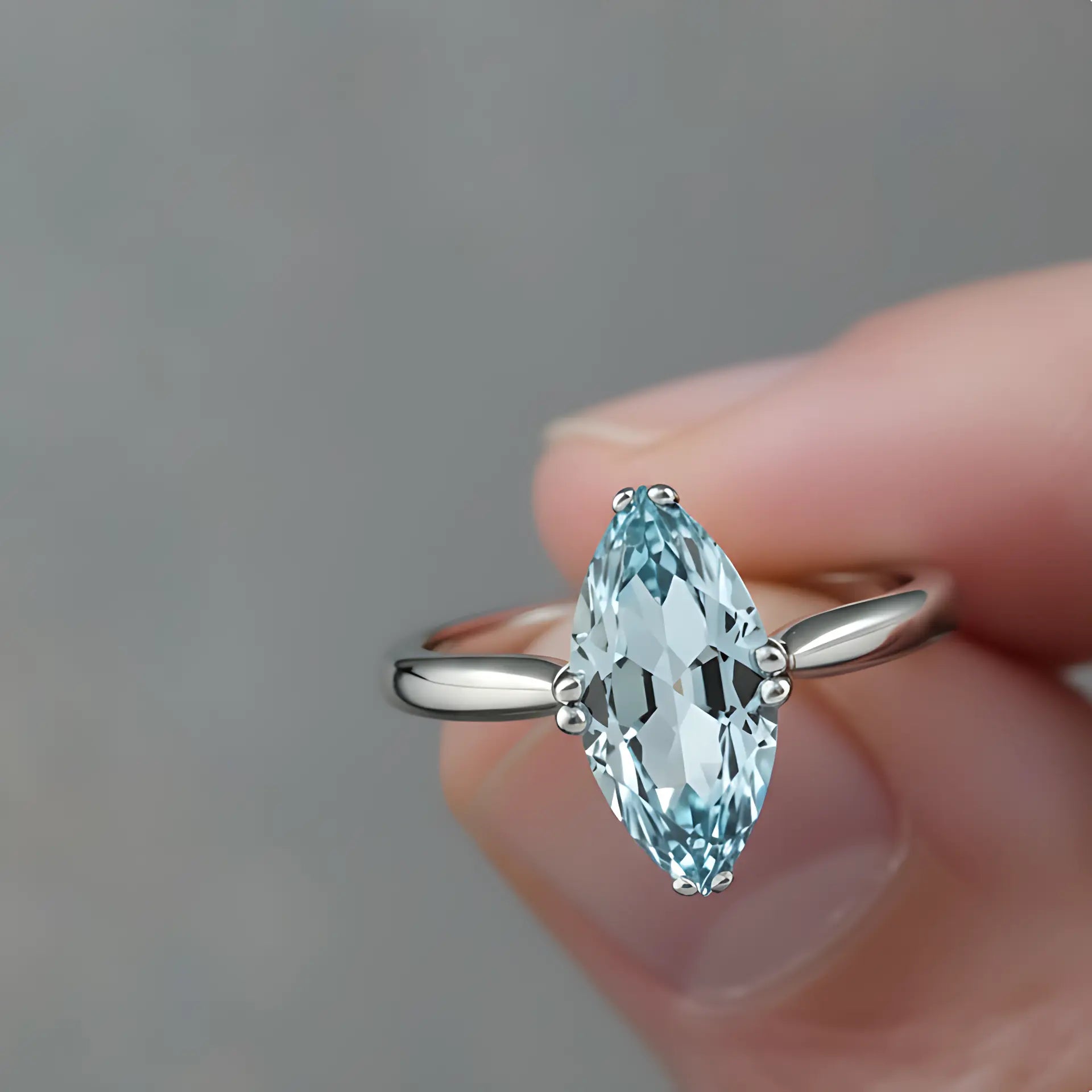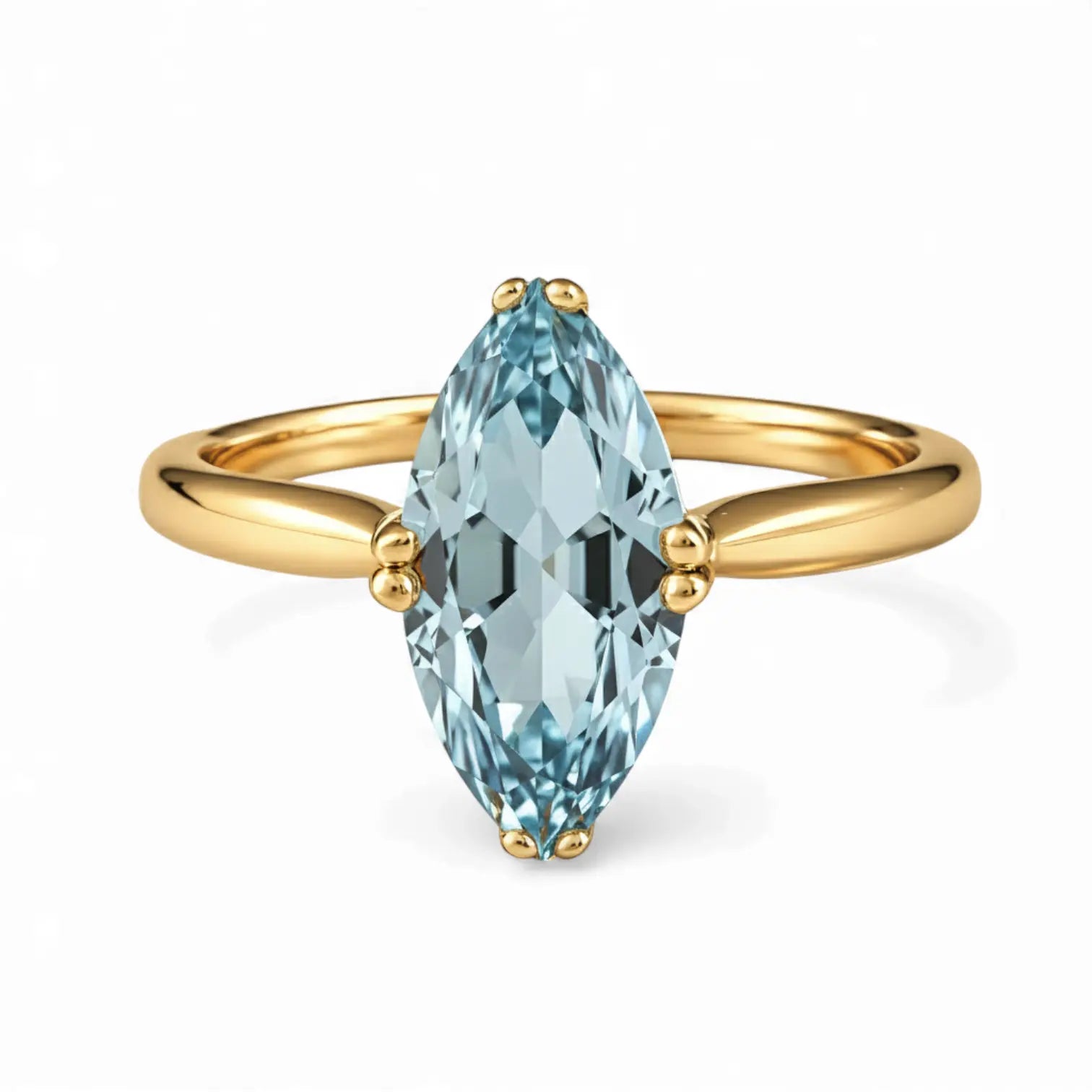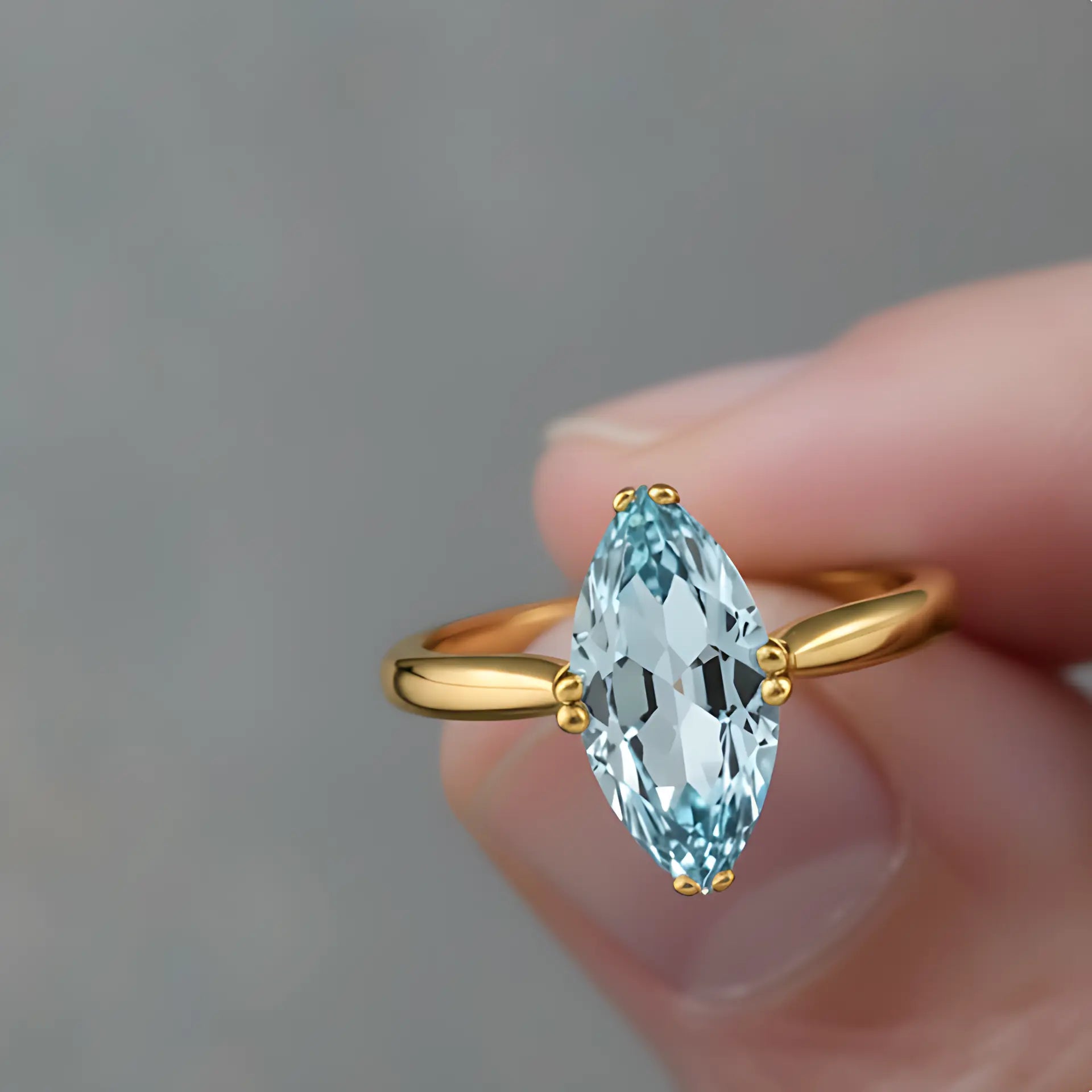 Like the first glimmer of light before dawn, our Aquamarine Marquise Ring symbolizes gentle yet unwavering courage. Courage is not fearless. It’s the step you take while fear walks beside you. Its blue is quiet, yet it never fades. The marquise cut gives it life, light in motion, calm in strength. As the birthstone for March, it is a wonderful gift for those who possess inner strength and courage.