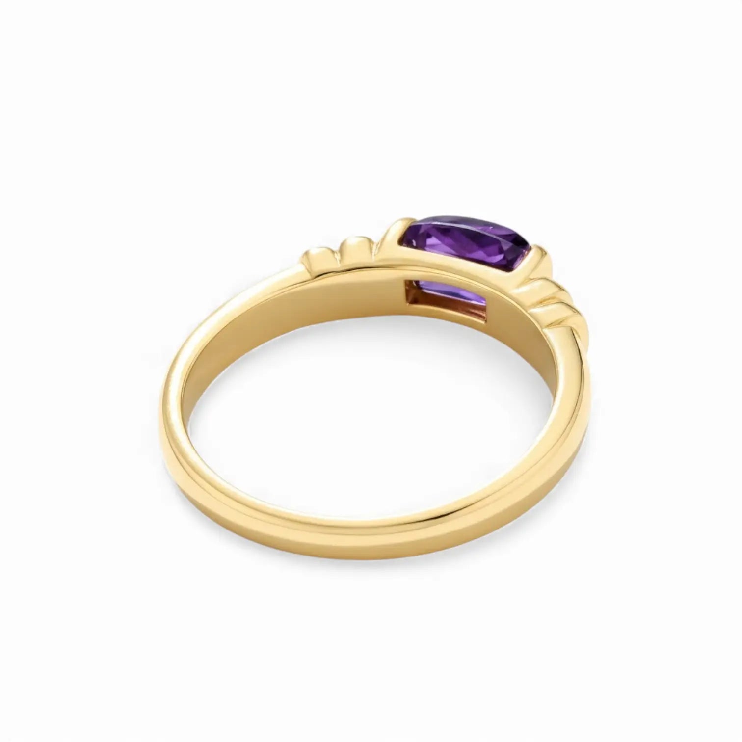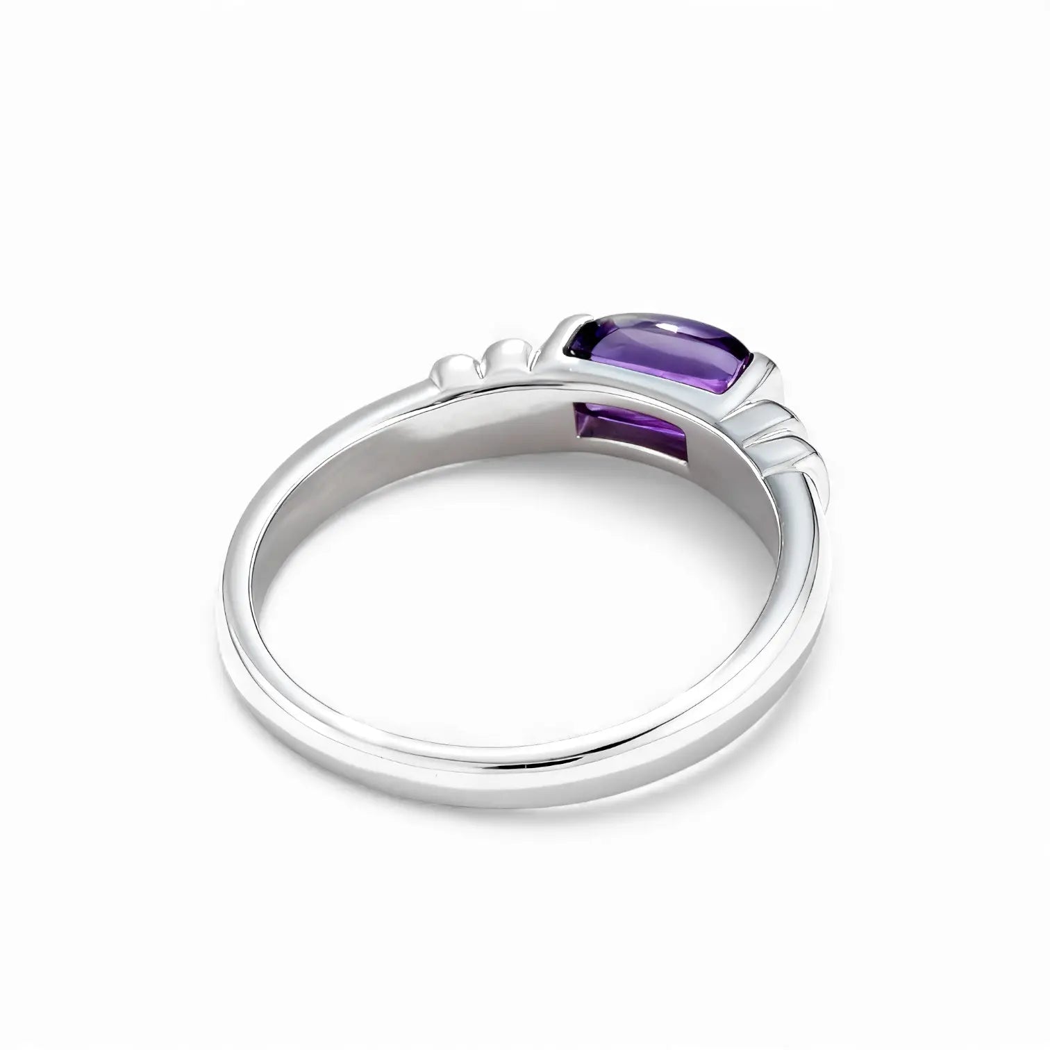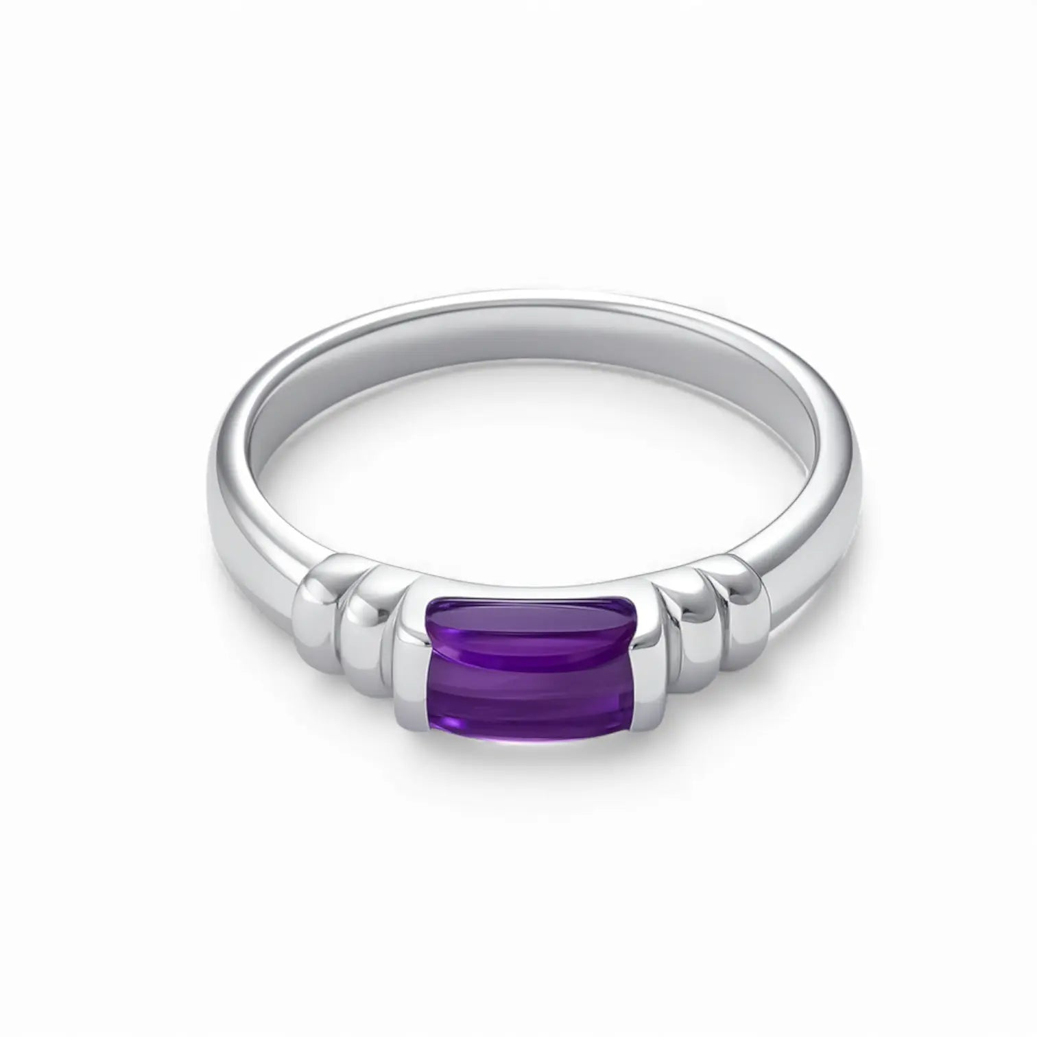 Life is like this simple amethyst ring; the deep amethyst exudes a calming power yet possesses immense charm. The smooth, polished band encircles an amethyst simple, symmetrical design on both sides, making it a versatile piece. Amethyst is the birthstone for February, representing a calming power that helps balance emotions and brings a sense of peace. Whether worn daily or as a meaningful gift, it is a perfect choice. May this ring always bring you inner peace.