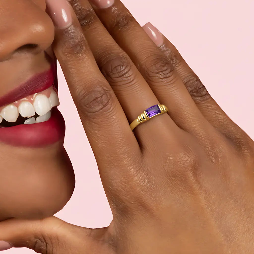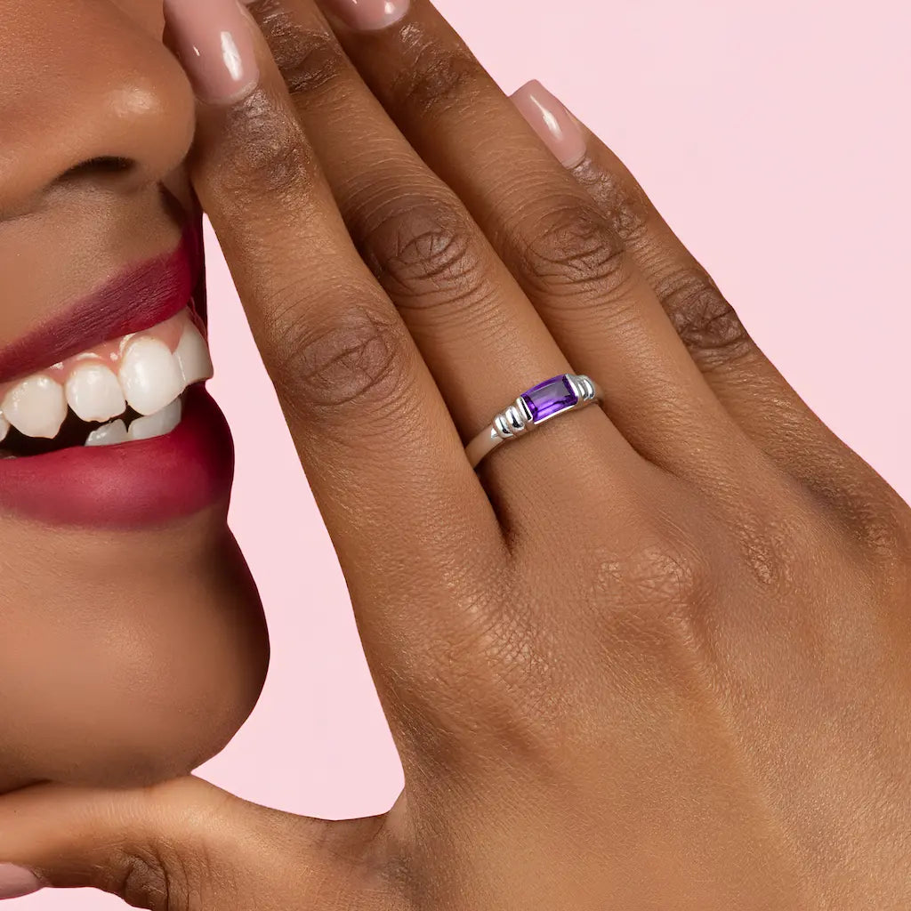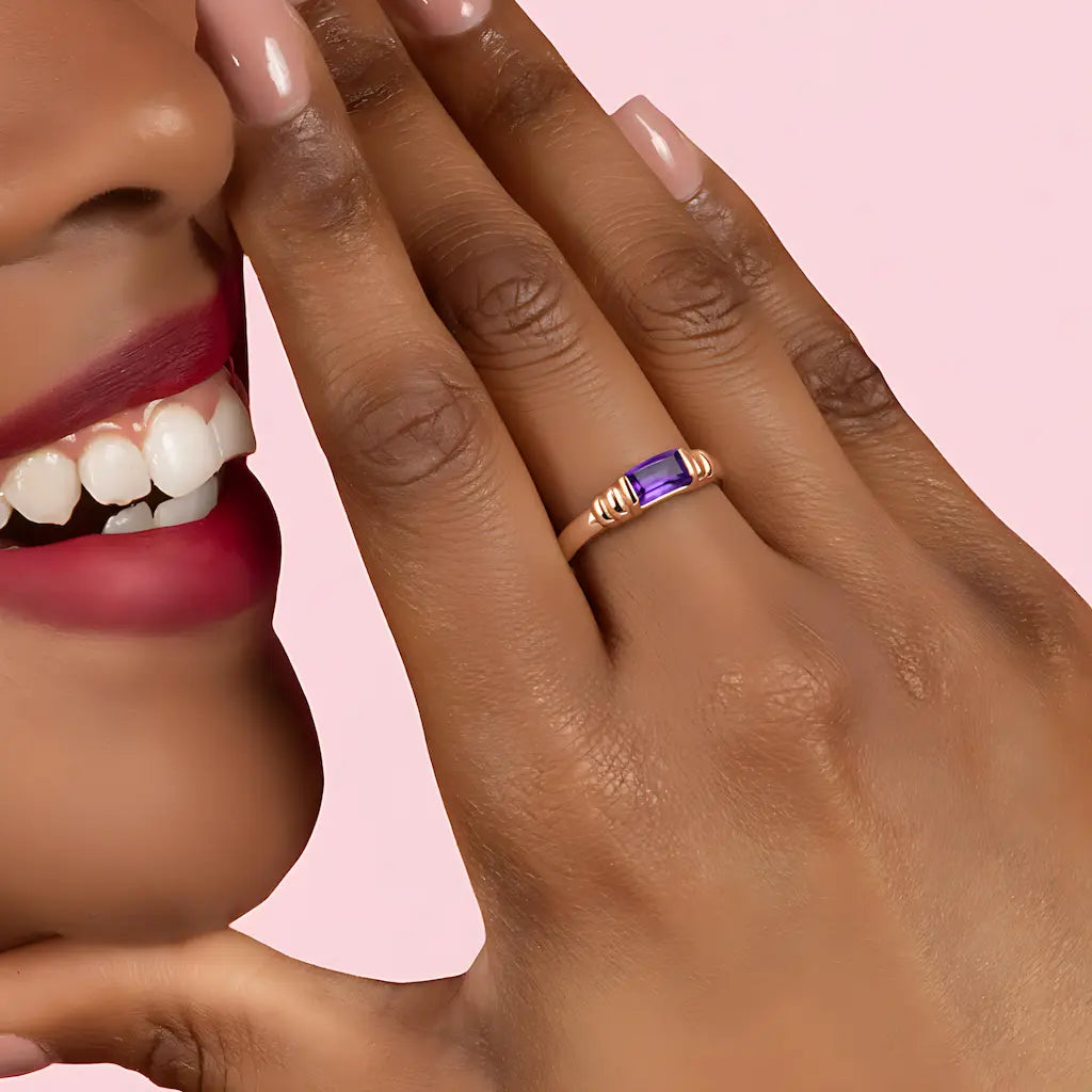 Life is like this simple amethyst ring; the deep amethyst exudes a calming power yet possesses immense charm. The smooth, polished band encircles an amethyst simple, symmetrical design on both sides, making it a versatile piece. Amethyst is the birthstone for February, representing a calming power that helps balance emotions and brings a sense of peace. Whether worn daily or as a meaningful gift, it is a perfect choice. May this ring always bring you inner peace.