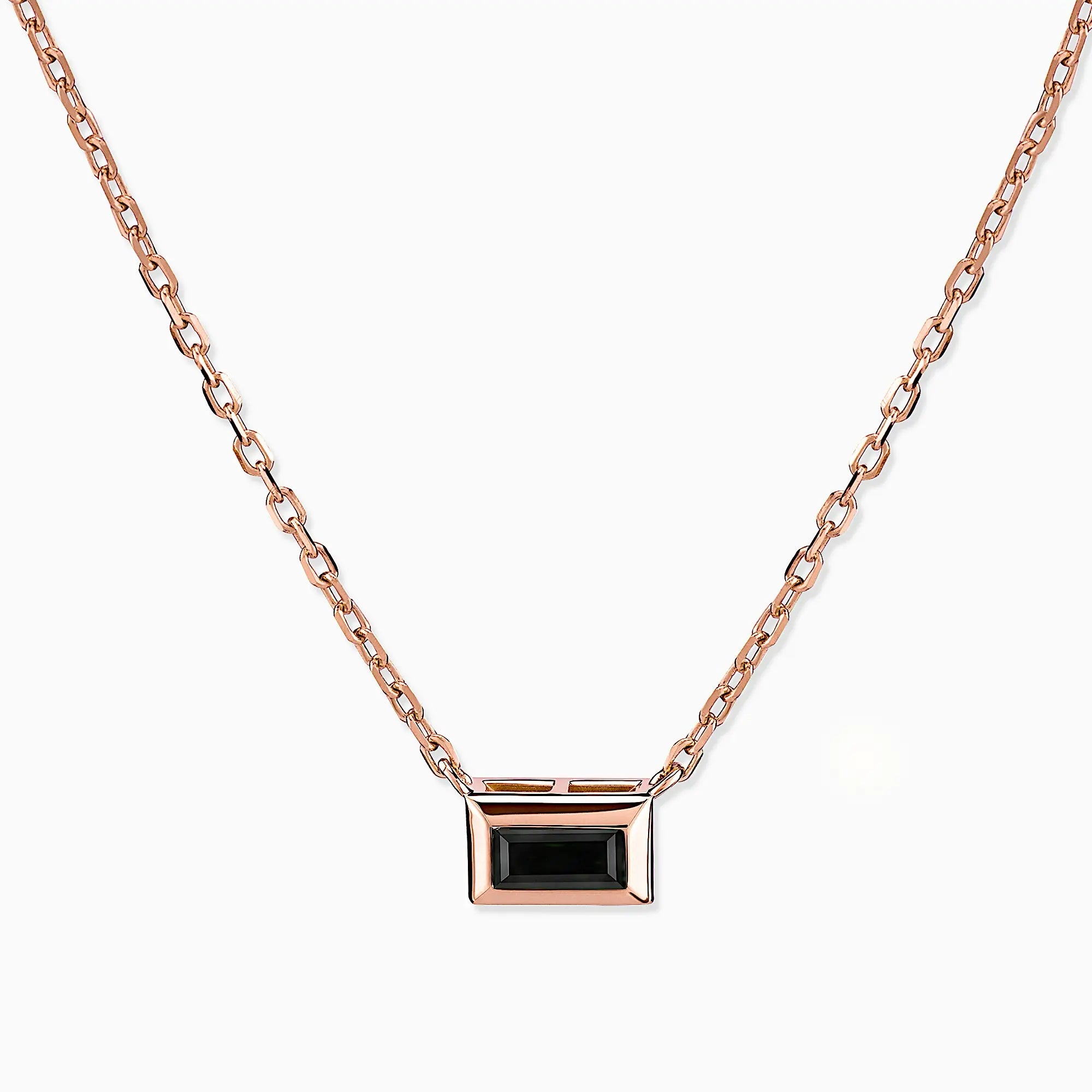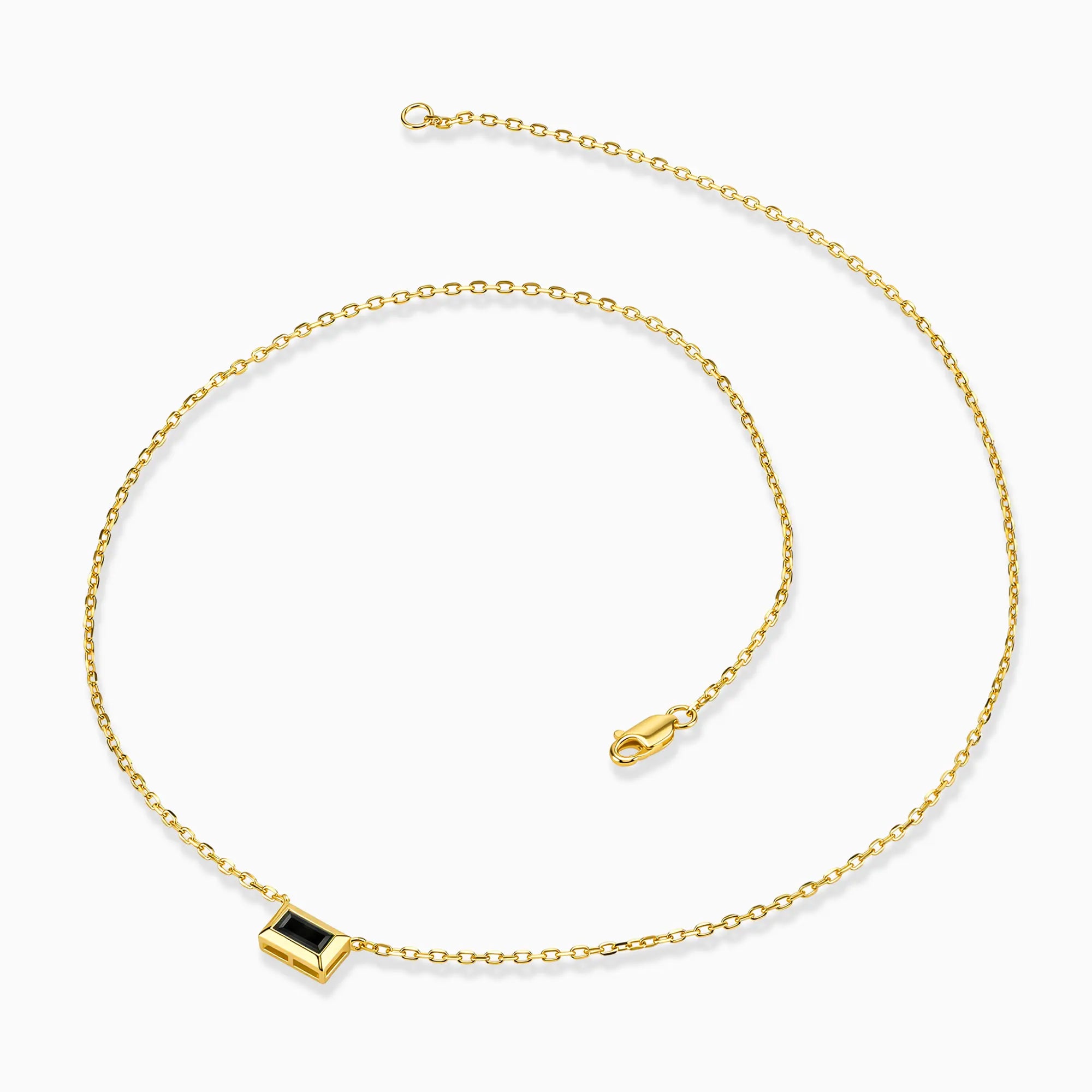 A rectangular black onyx rests within a clean bezel, its edges drawing a quiet, steady boundary. The necklace carries a sense of weight and calm, like a hidden anchor beneath the surface. Close to the skin, it speaks in stillness, holding strength in a gentle, unspoken way.
