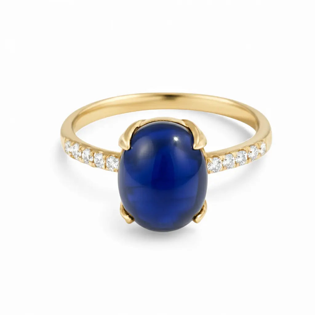 Blue Sapphire Cabochon Ring - Minimal Spiritual