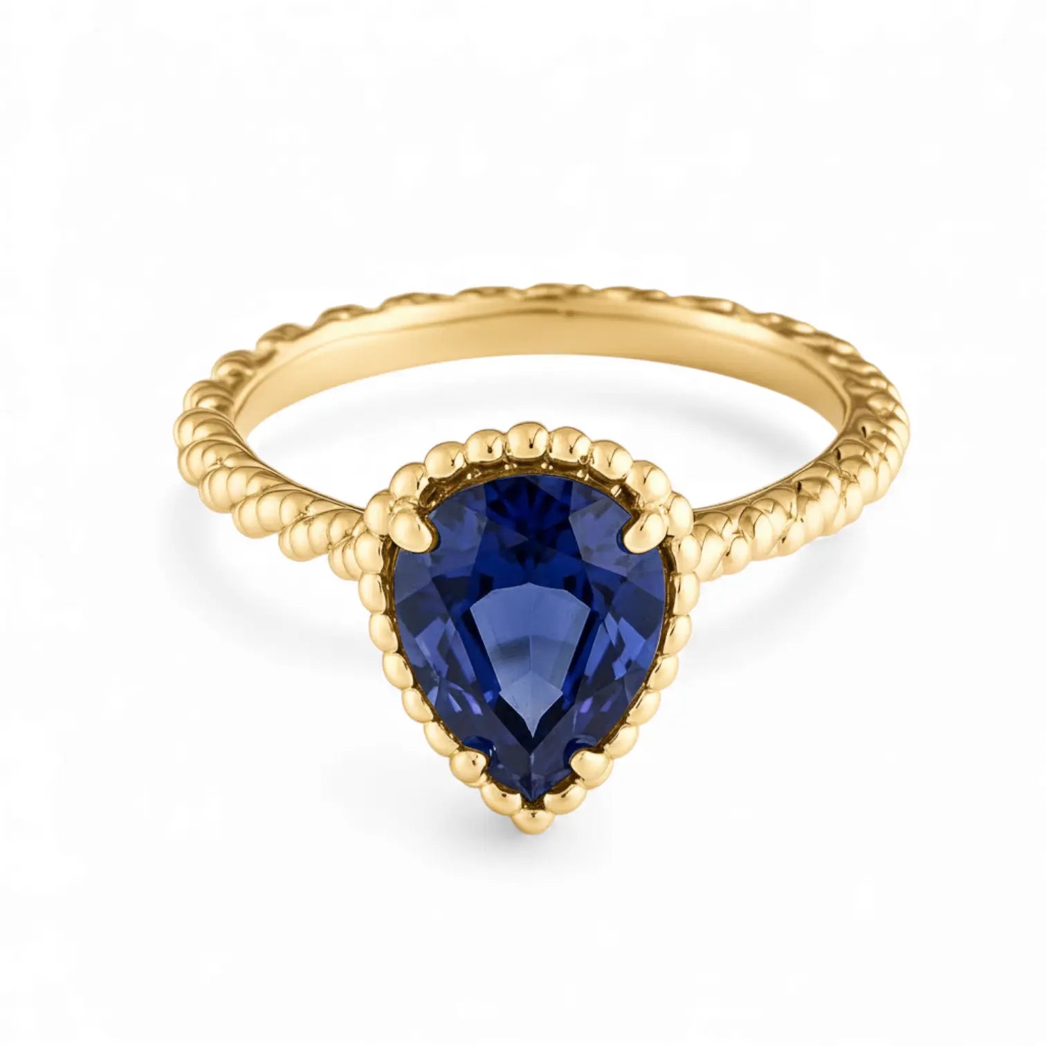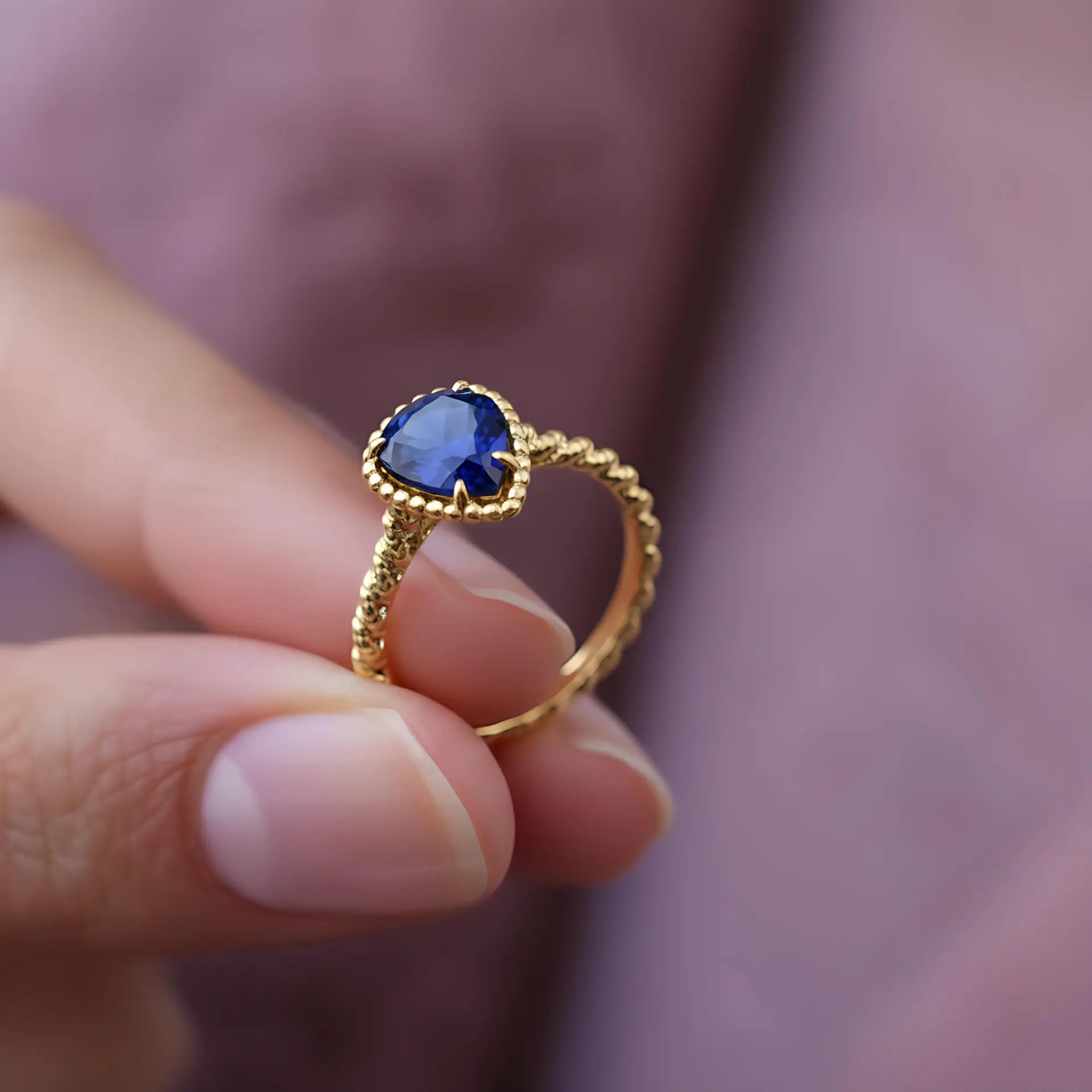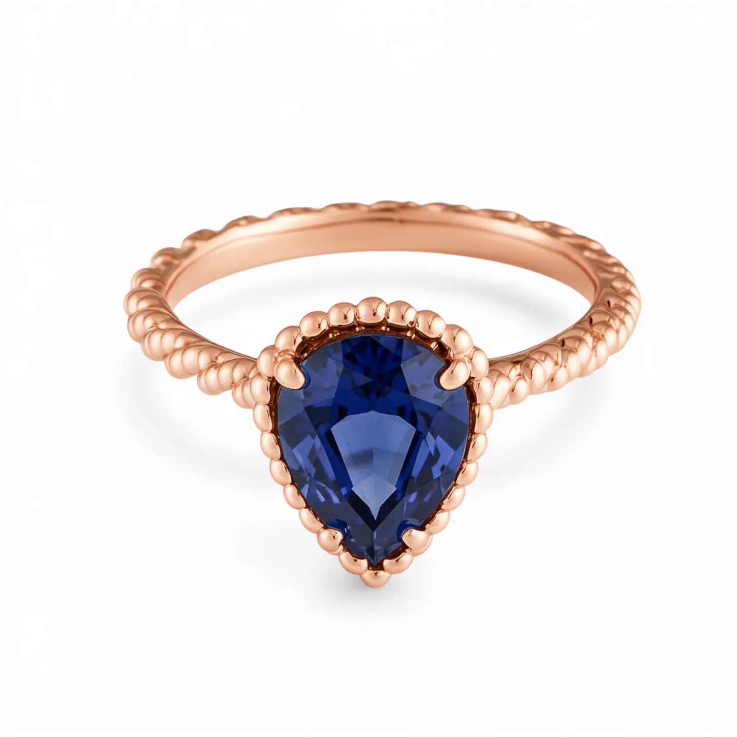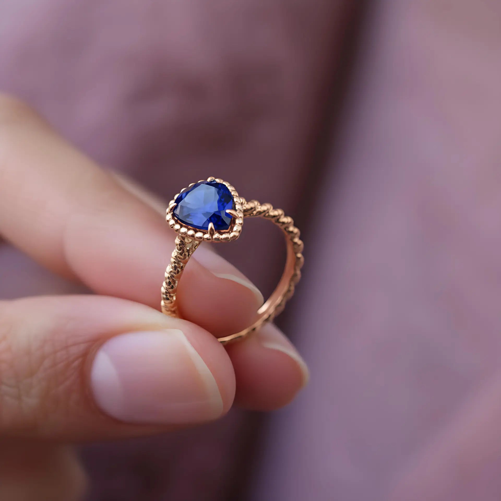 The blue of Blue Sapphire Rings is like the tranquil depths of the sky. Loyalty in it isn't a promise, but a naturally occurring sense of peace. A pear gemstone rests on your finger, as if instantly calming your wandering thoughts. Our pear-shaped blue sapphire ring symbolizes unwavering commitment. Wear this deep blue loyalty now, walking with you as you stay devoted to the direction that means the most.