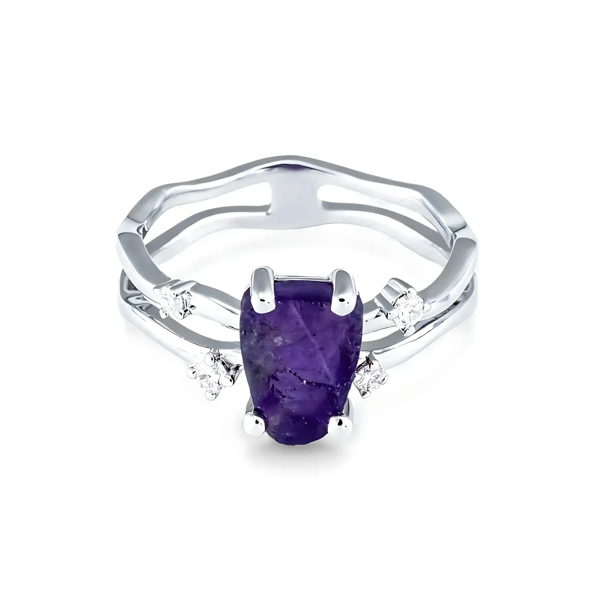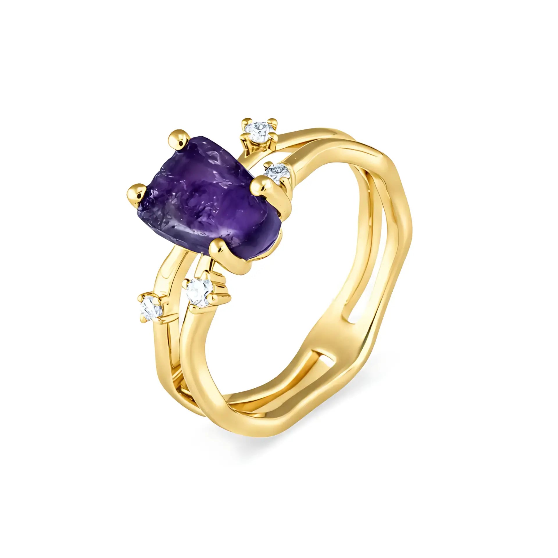 Double Band Raw Amethyst Ring - Interweave