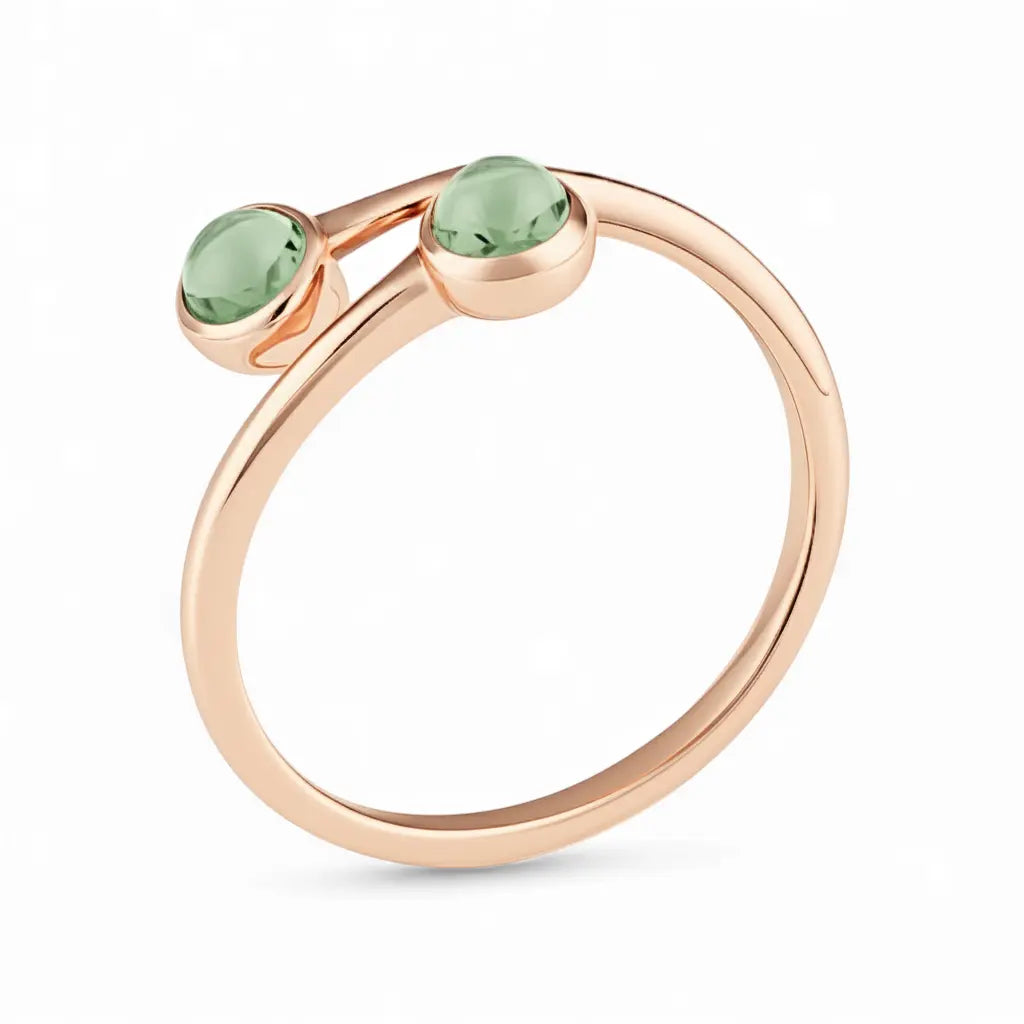 Our green amethyst double-cabochon ring features two clear green amethyst crystals facing each other, like two soft rays of light meeting in the air. It carries the energy of Harmony, perfect for a solitary afternoon or for moments spent in a crowd. Wearing it feels like pressing pause on the world, just for you.