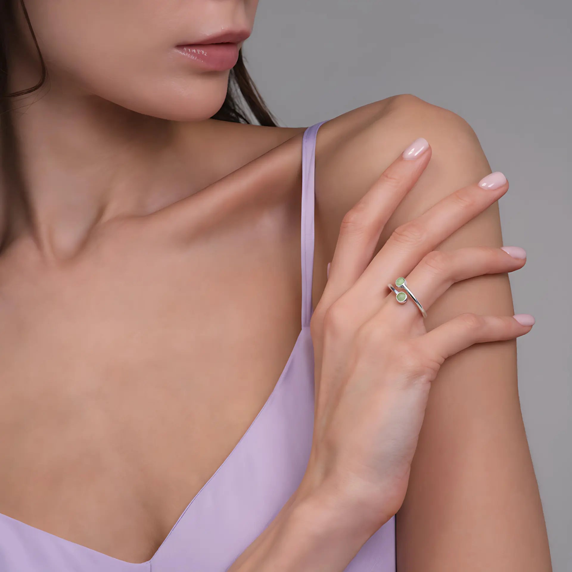 Double Cabochon Green Amethyst Ring - Twins Collection