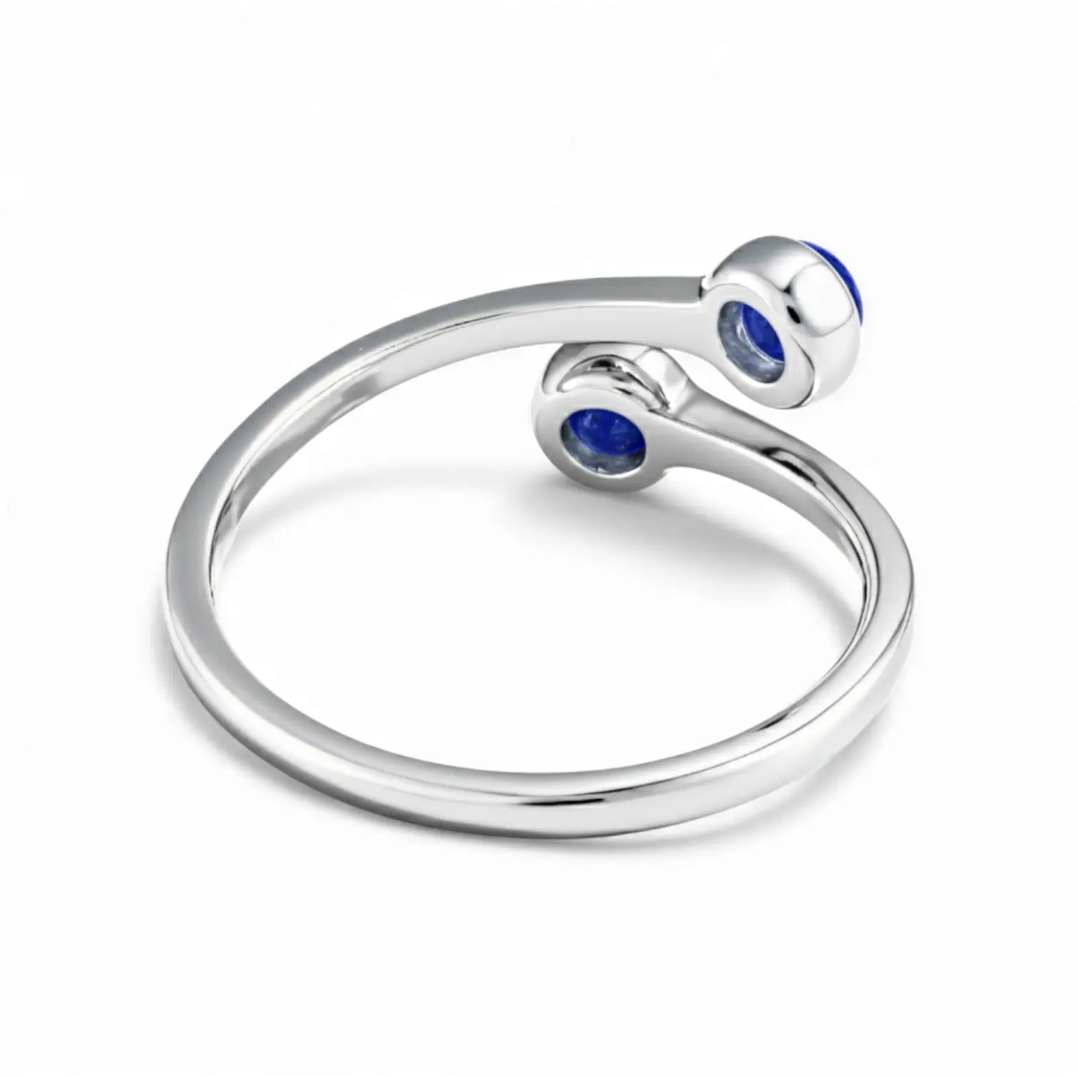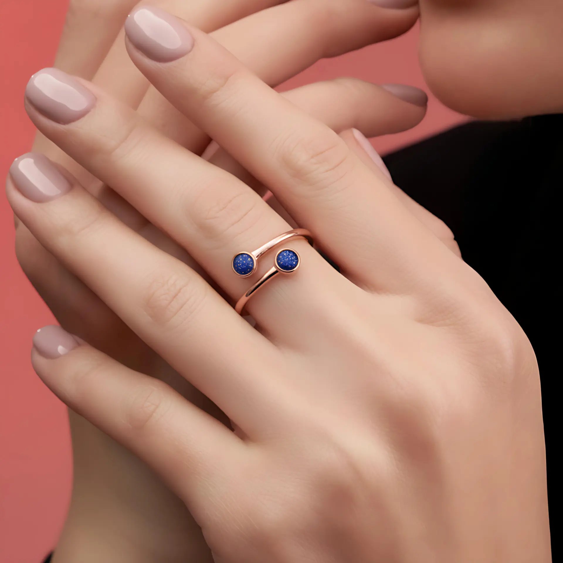This Lapis Lazuli Double Cabochon Bypass Ring carries a pure energy of wisdom. The deep blue energy of lapis lazuli acts like an inner guiding light, calming hesitation and purifying thoughts. The bypass ring symbolizes unity of paths, realigning scattered thoughts towards what truly matters. It will be the most reliable signal in your hand when you need wisdom and clear judgment.