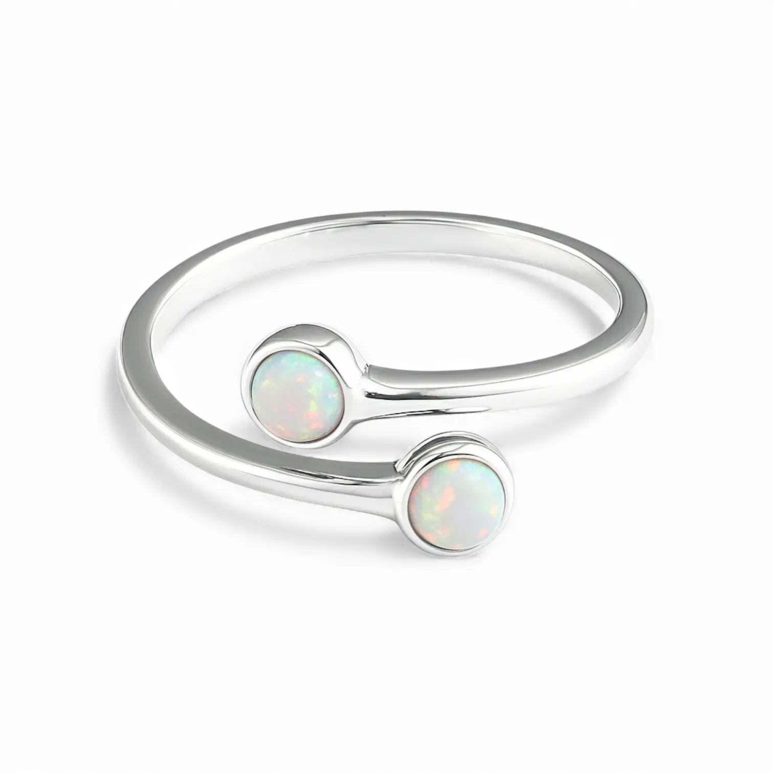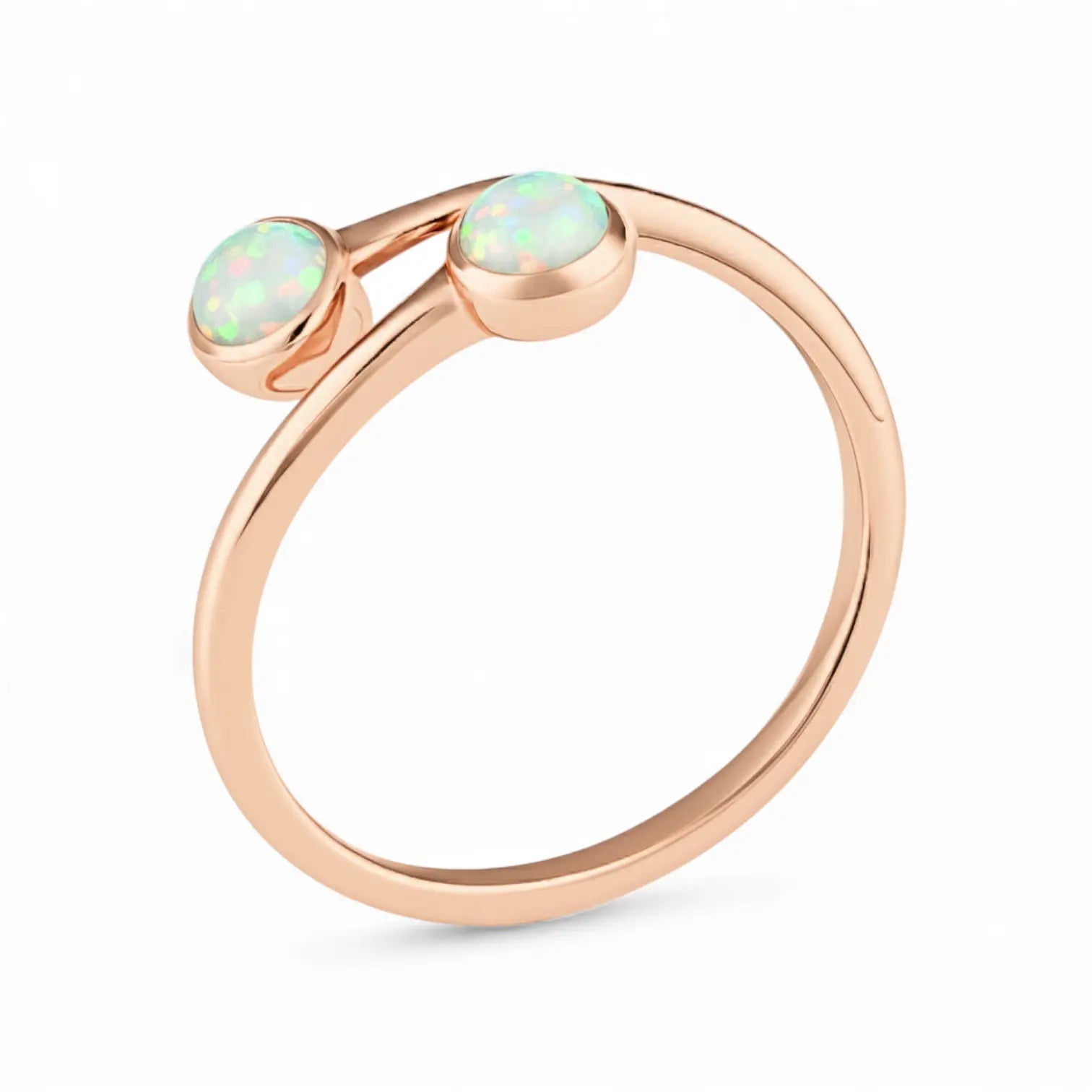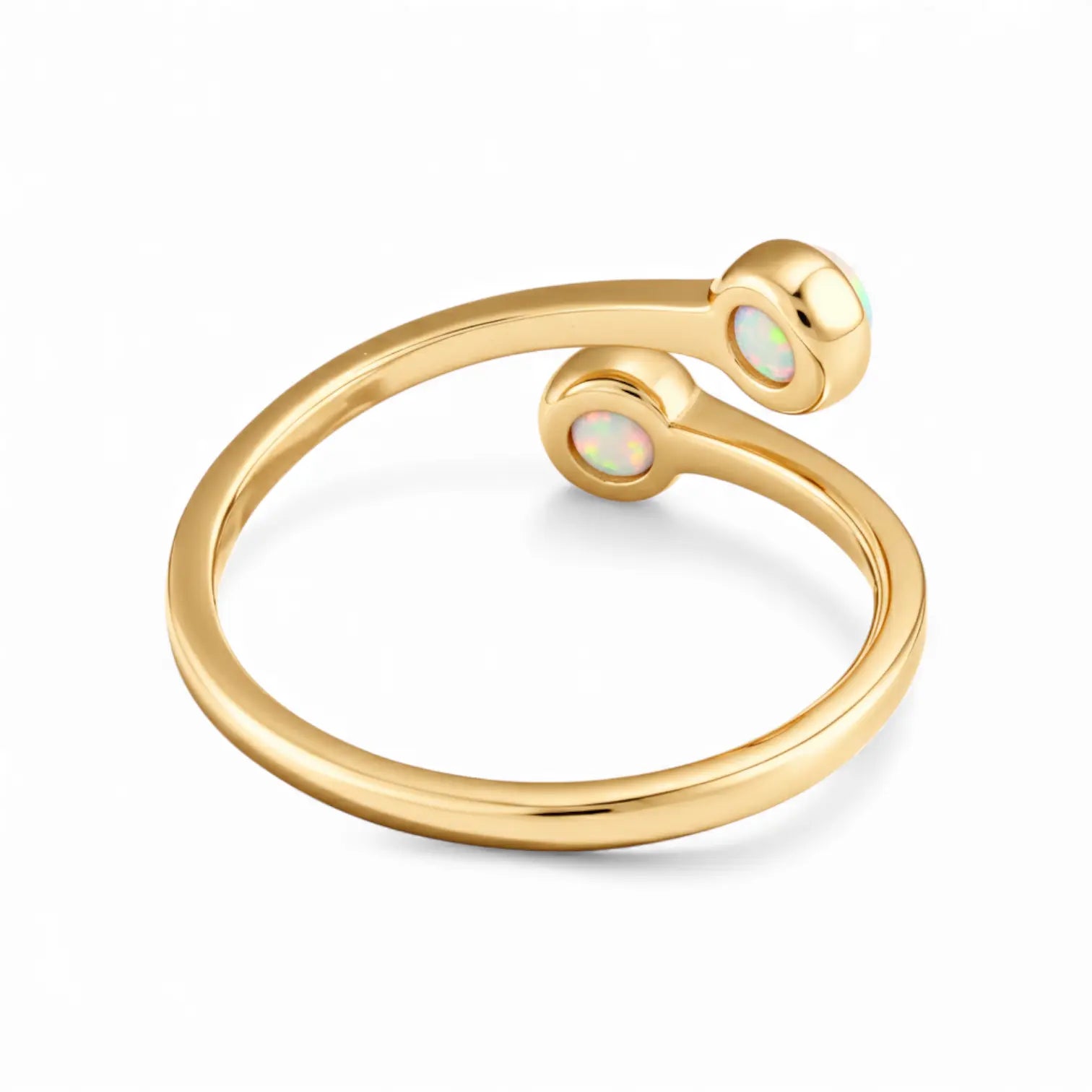 Opal's iridescent light always brightens your mood. The bypass band creates a gentle curve, and the gemstone changes its sparkle with the light. As October's birthstone, it embodies positivity. If you want your days to feel lighter and brighter, this double-cabochon opal ring is a great companion. It brings a soft glow that lifts your mood.