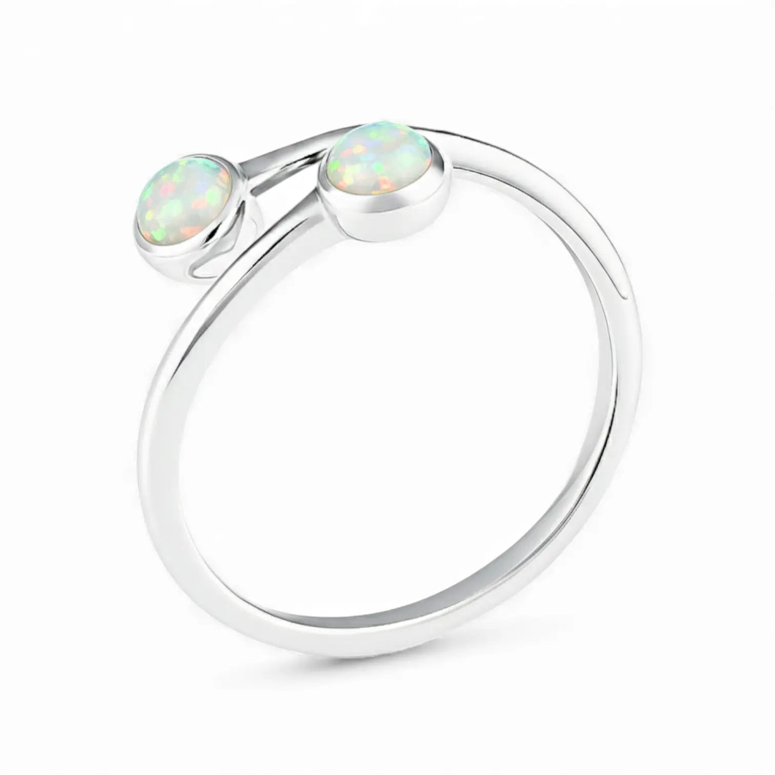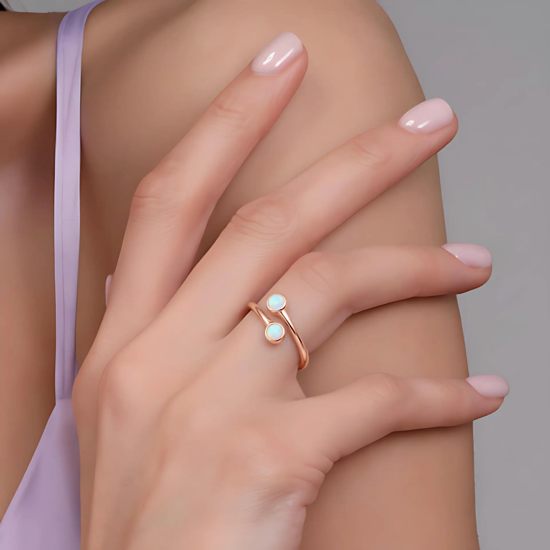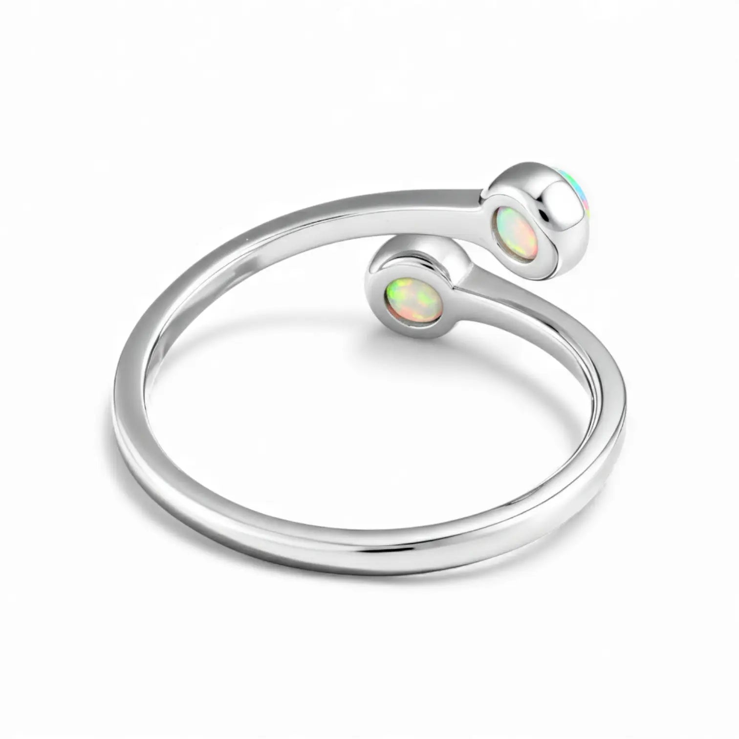 Opal's iridescent light always brightens your mood. The bypass band creates a gentle curve, and the gemstone changes its sparkle with the light. As October's birthstone, it embodies positivity. If you want your days to feel lighter and brighter, this double-cabochon opal ring is a great companion. It brings a soft glow that lifts your mood.