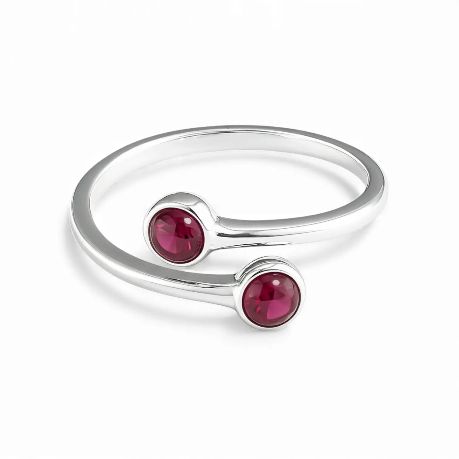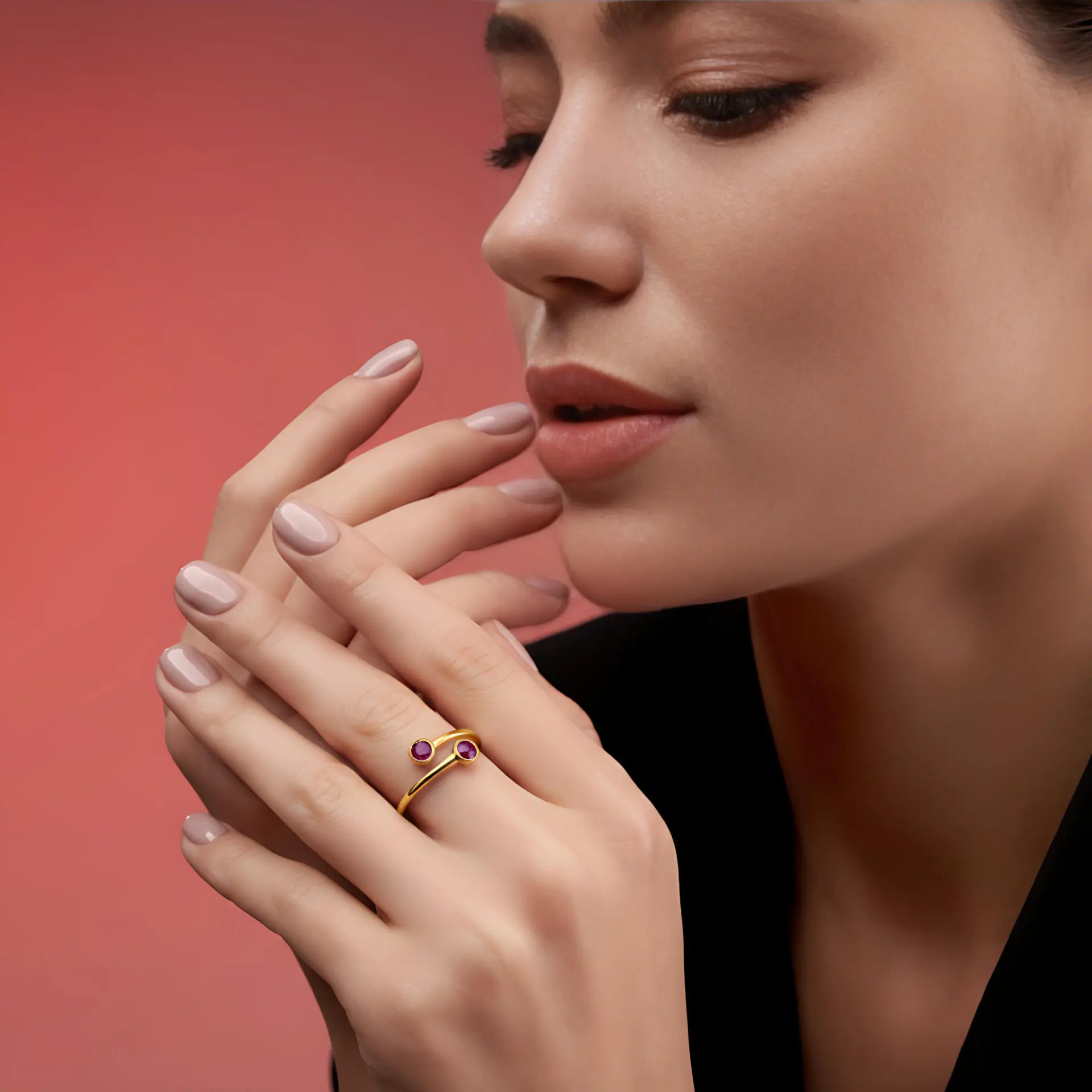 Ruby's red isn't flamboyant, but rather an energy rising from within, reminding you to stay passionate and proactive. Our ruby bypass ring features a double-cabochon design that makes the red appear even purer. The gentle curve of the band feels like two forces coming together, pushing you forward. Wearing it is a great way to start on days when you need vitality, motivation, or want to reignite your energy.