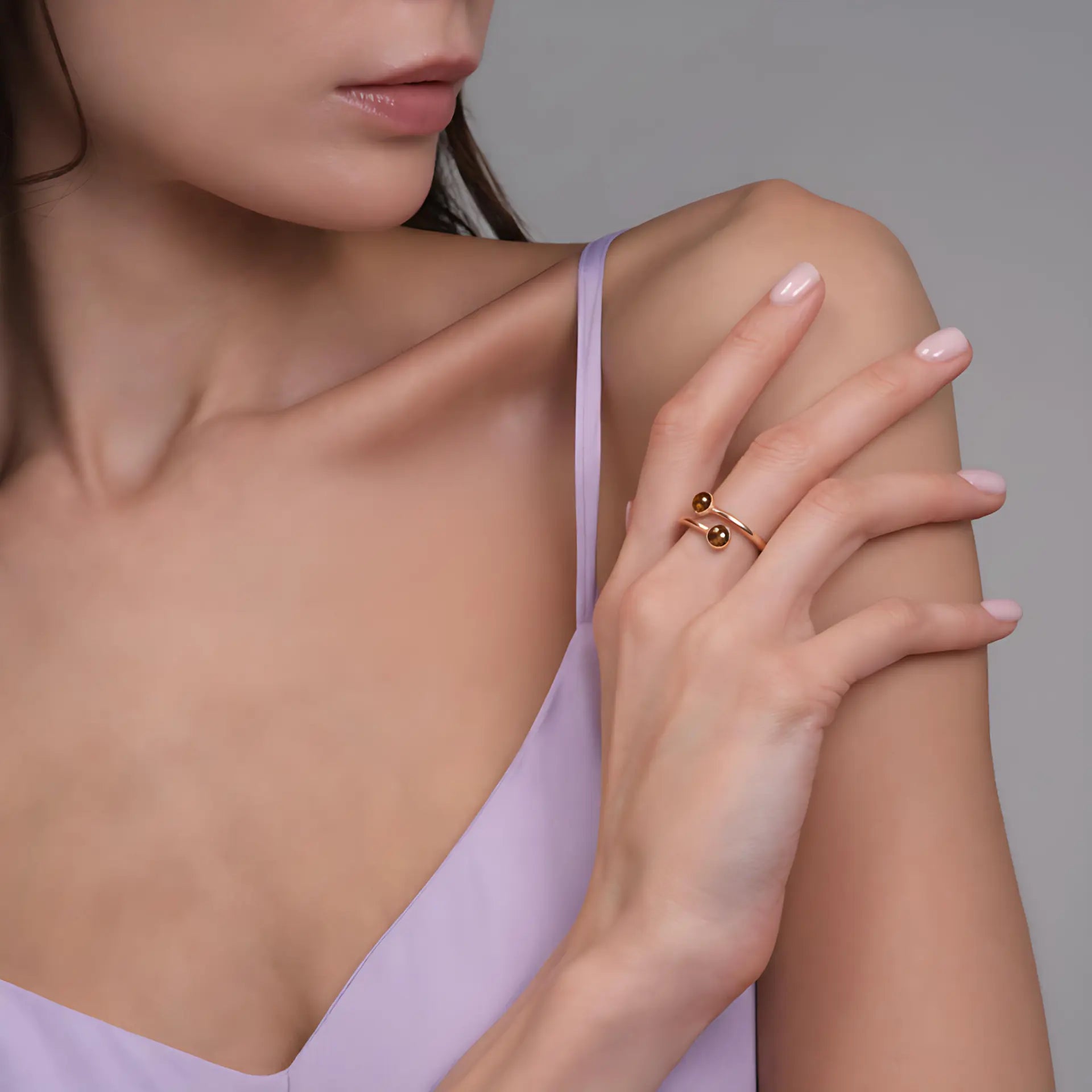 The deep smoky luster brings a quiet, sophisticated elegance. Paired with a double-cabochon design, the smoky quartz ring looks fuller, smoother, and remarkably pure. The bypass band provides a comfortable wearing experience, making it easy to slip on for everyday commutes without any pressure. The concept for the Smoky Quartz Ring is Grounding, a sense of stability emanating from within. If you like a style with a touch of power and crispness, this is an ideal choice.