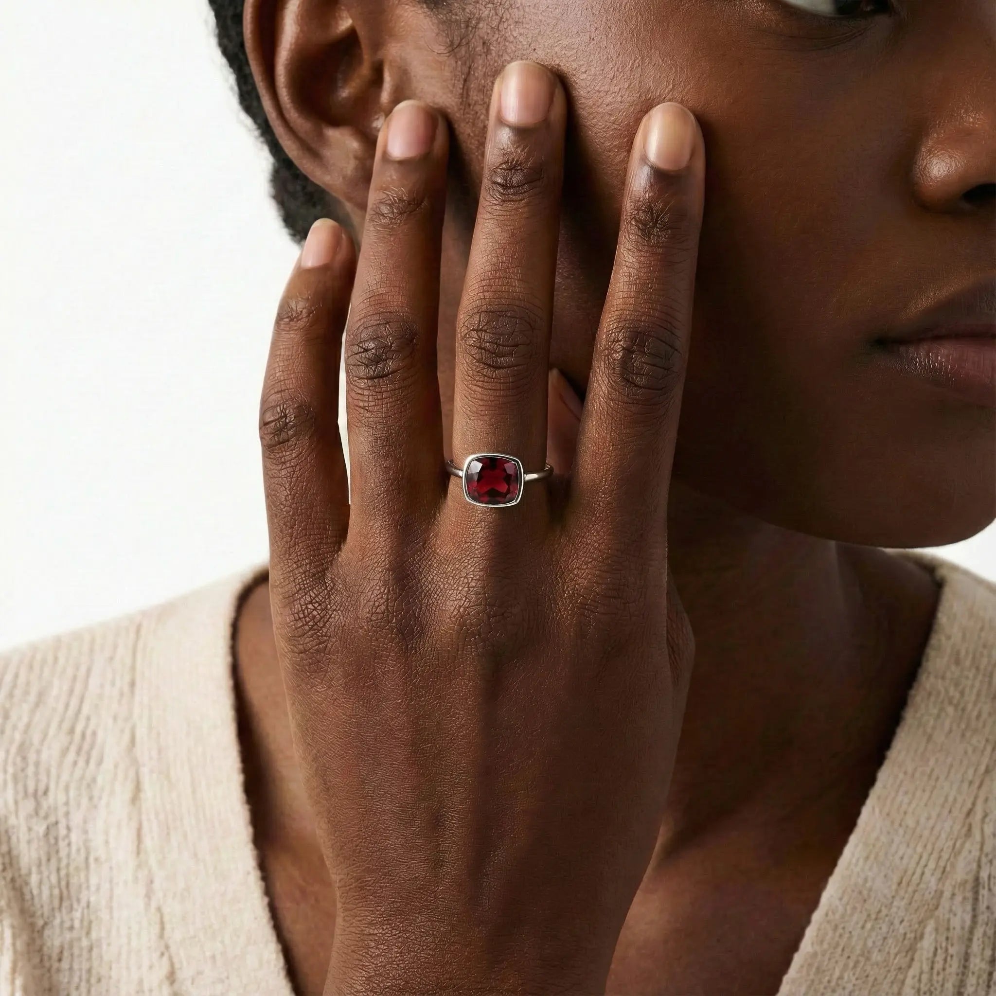 Garnet Cushion Ring - Pure Hush