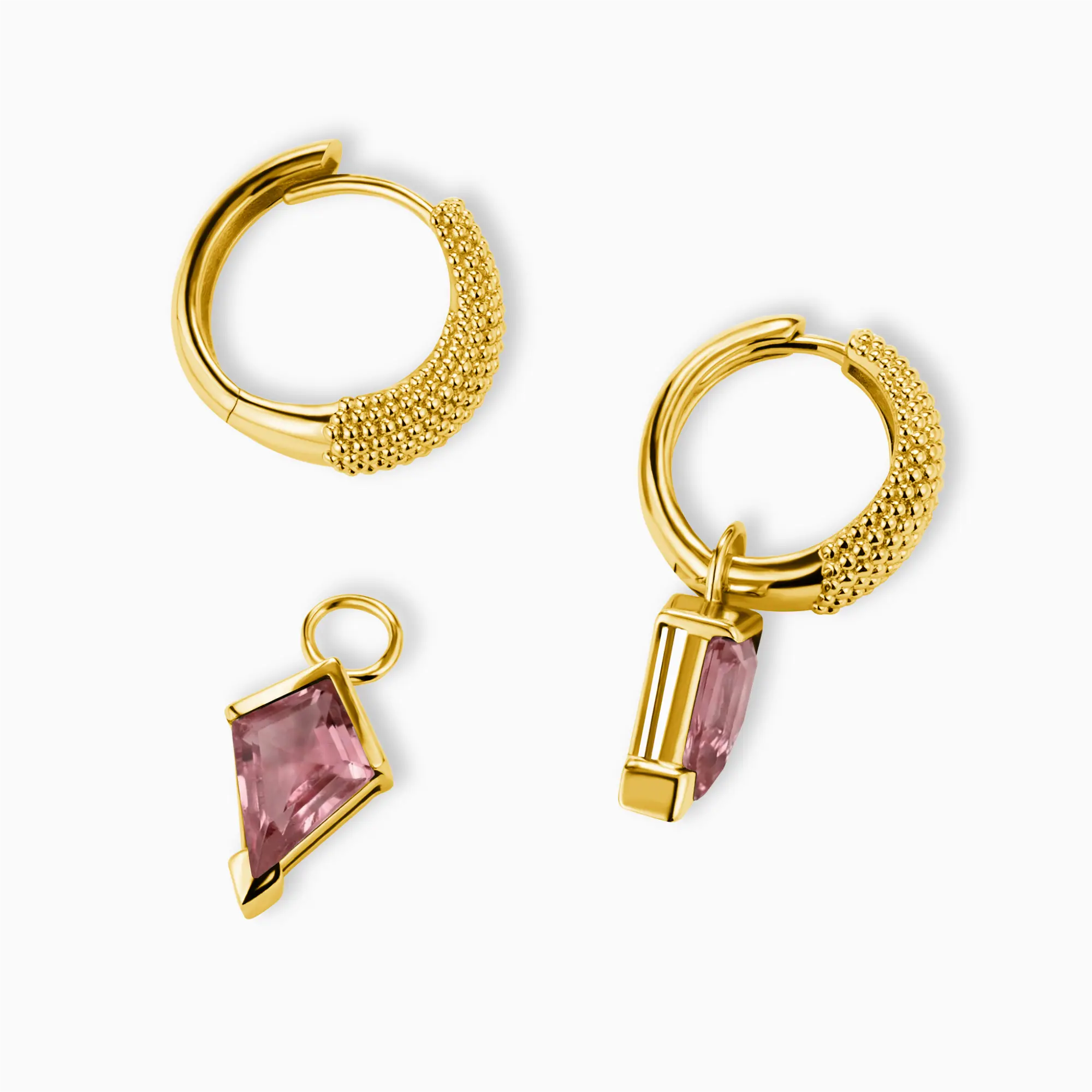 Granulated Kite Pink Tourmaline Earrings - Valkyrie