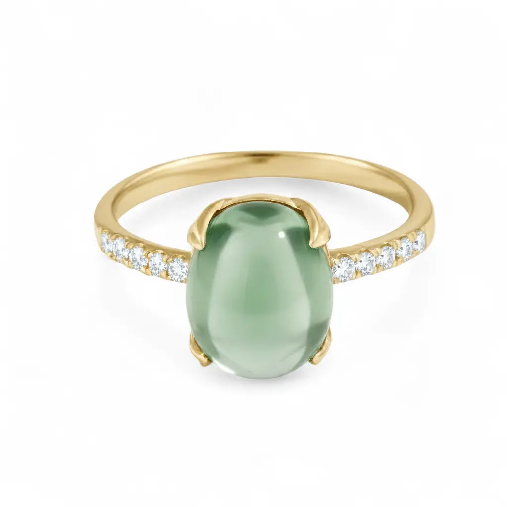 Green Amethyst Cabochon Ring - Minimal Spiritual