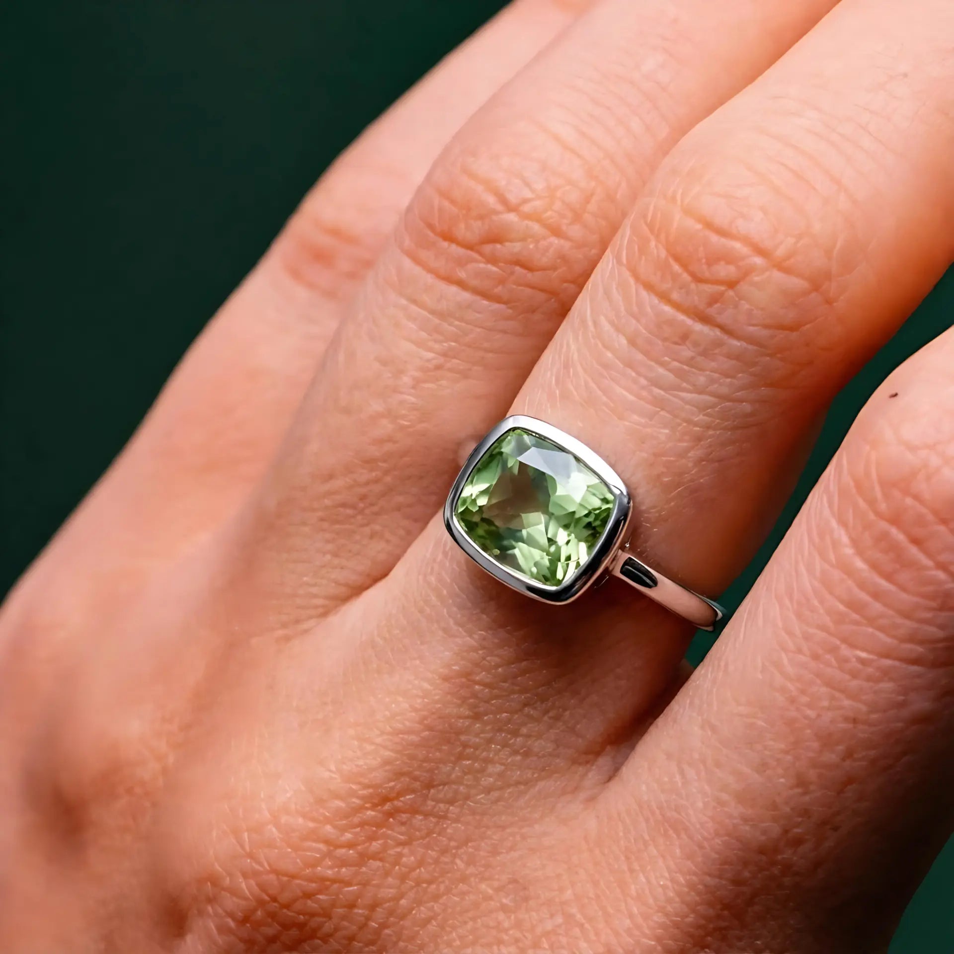 Green Amethyst Cushion Ring - Pure Hush