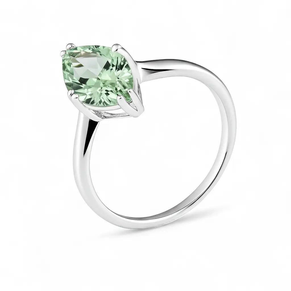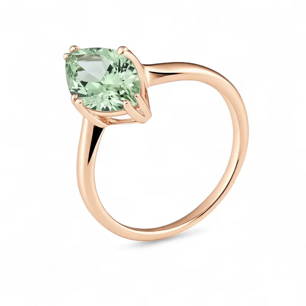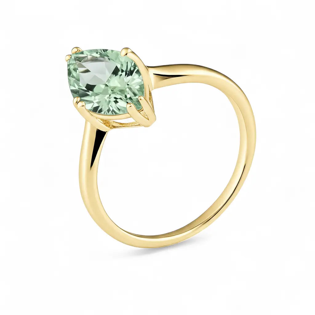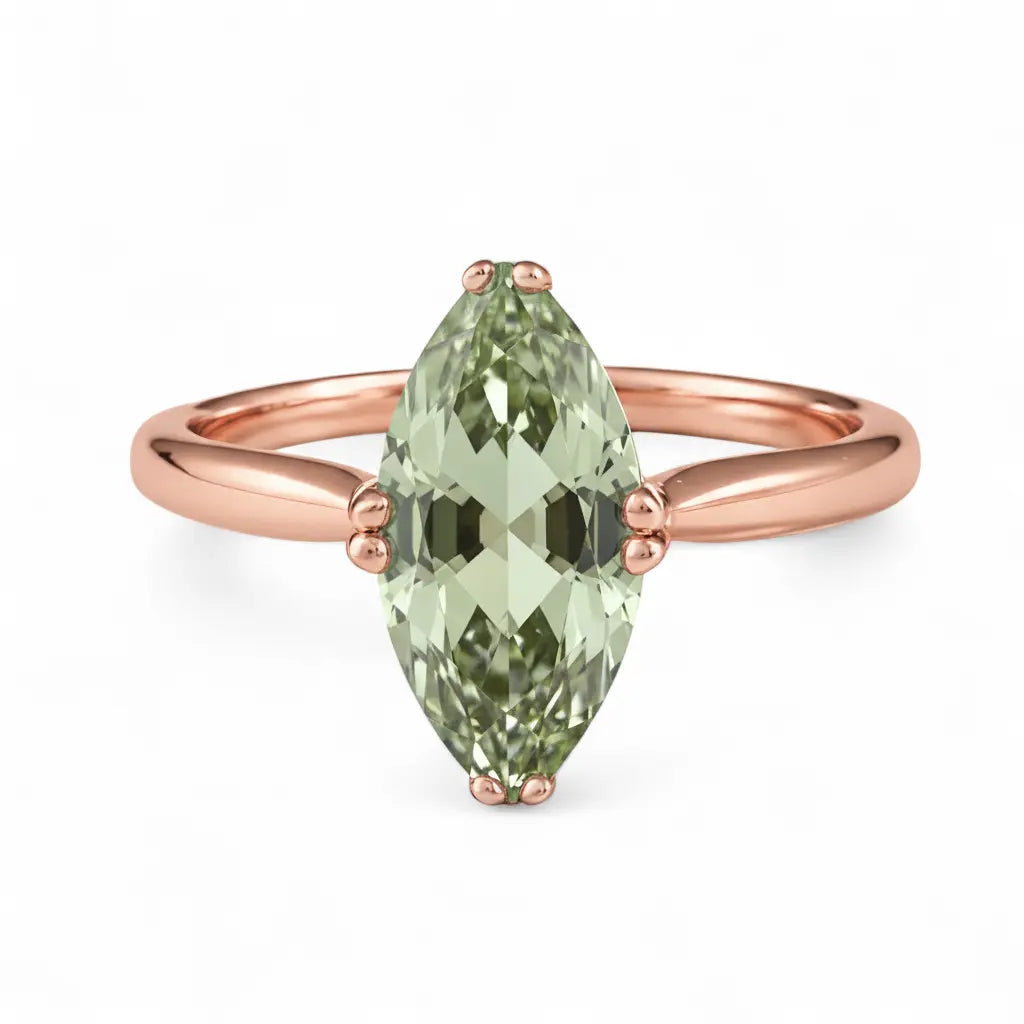 To radiate a soft, light green glow, this marquise-cut green amethyst ring brings you calm and grace. Feels like a gentle spring breeze that caresses the heart. This ring, in its play of light and shadow, embodies inner tenderness and strength. Its slender silhouette and refined lines highlight a simple, timeless charm. Worn alone or shared with a loved one, it whispers from the heart, expressing harmony and peace.
