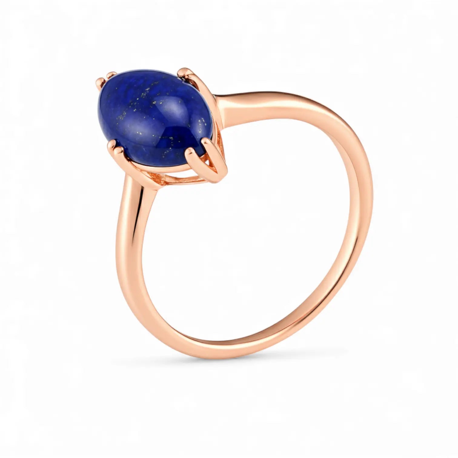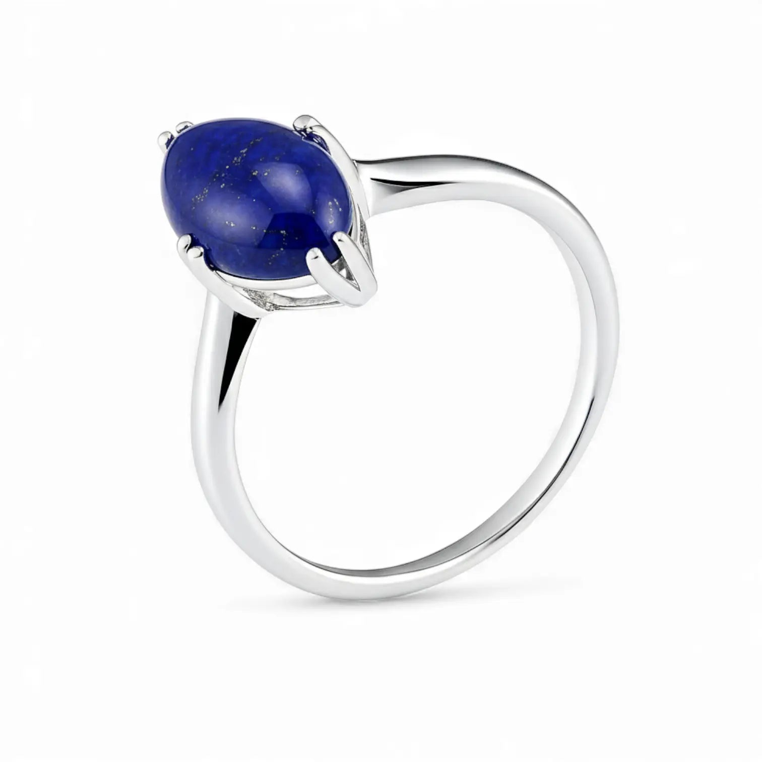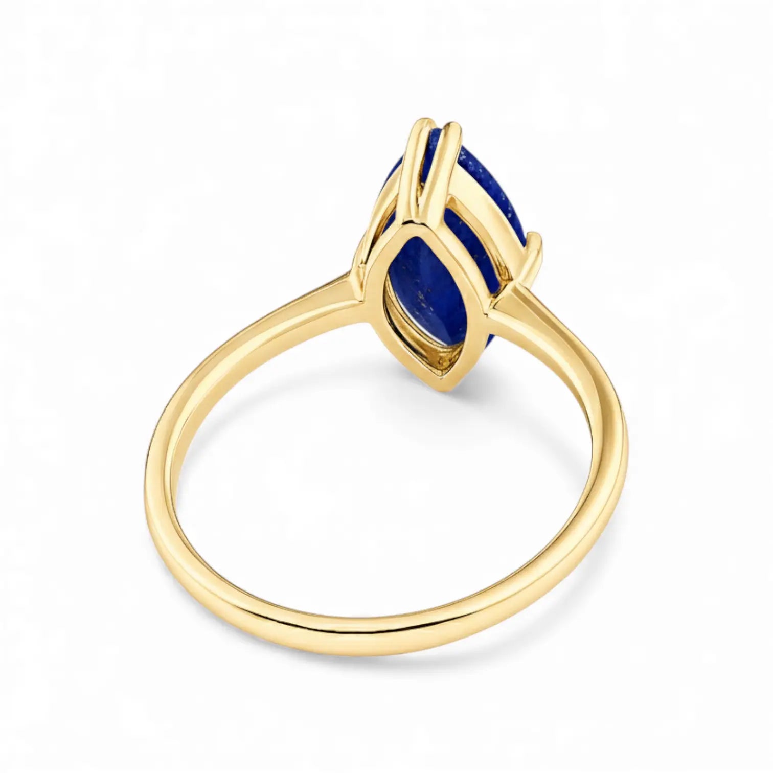Our Lapis Lazuli Marquise Ring glows in deep blue. Delicate golden lines shimmer across its surface, like stars on a quiet night. Lapis lazuli carries the calm of wisdom and the light of insight, guiding the mind to clarity and the heart to peace. With its clean band and refined stone, it suits any occasion and carries an easy sense of confidence.