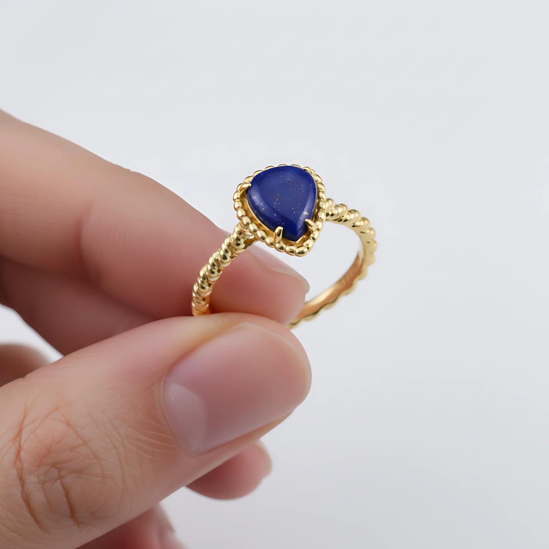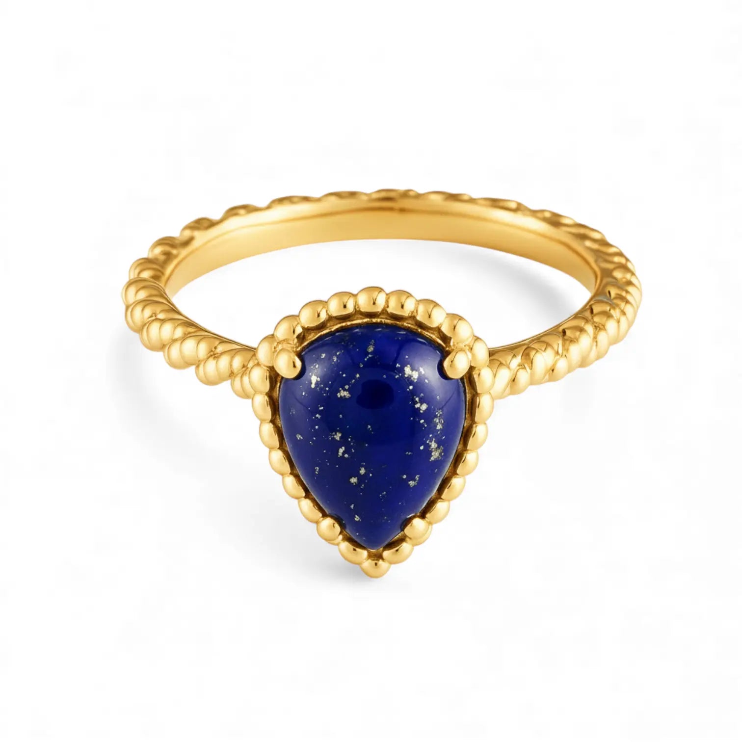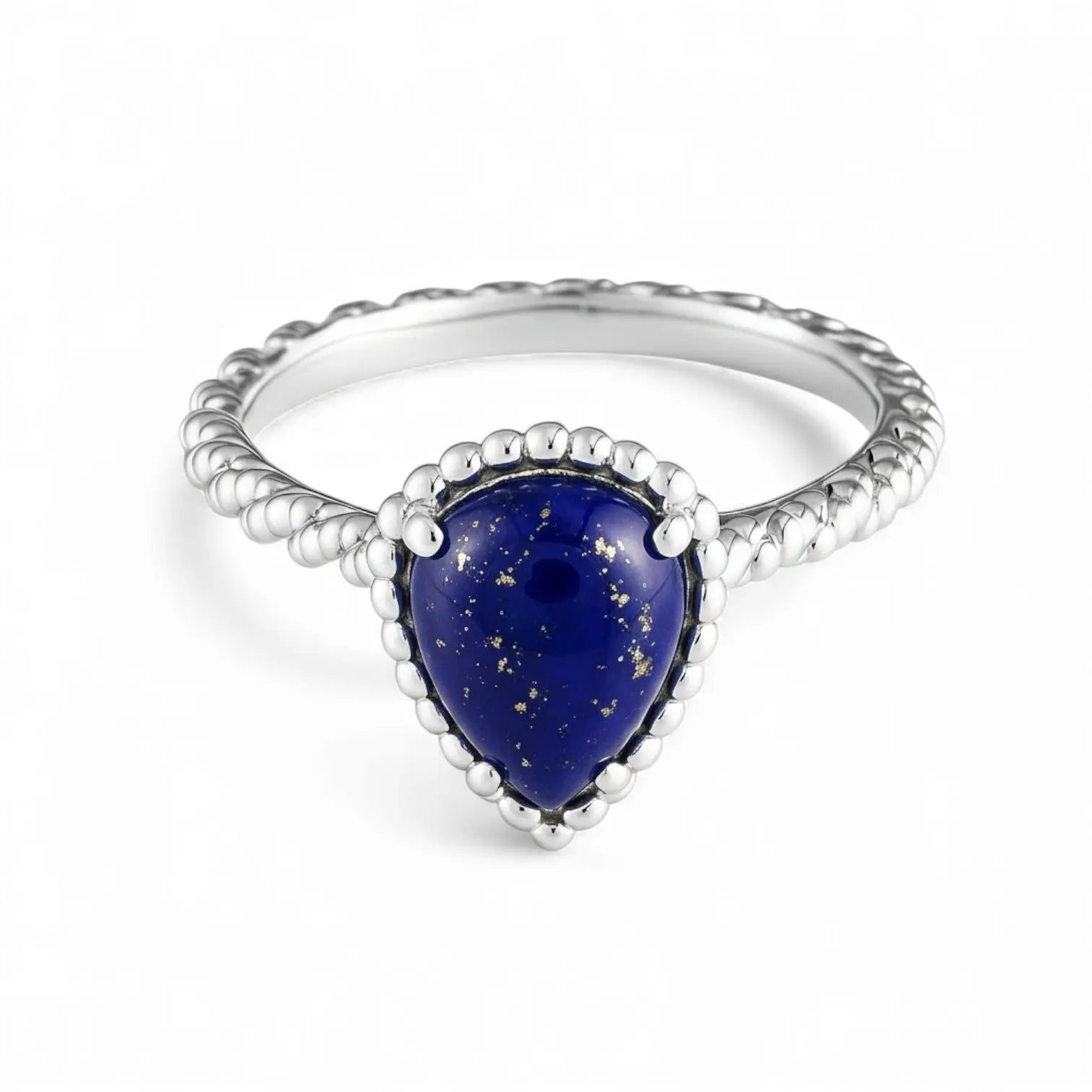 Wear this pear-shaped lapis lazuli ring and let thoughtful clarity become your attitude.