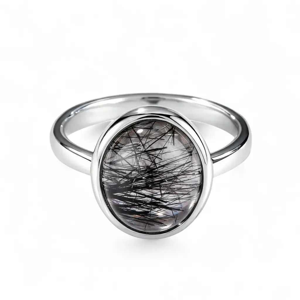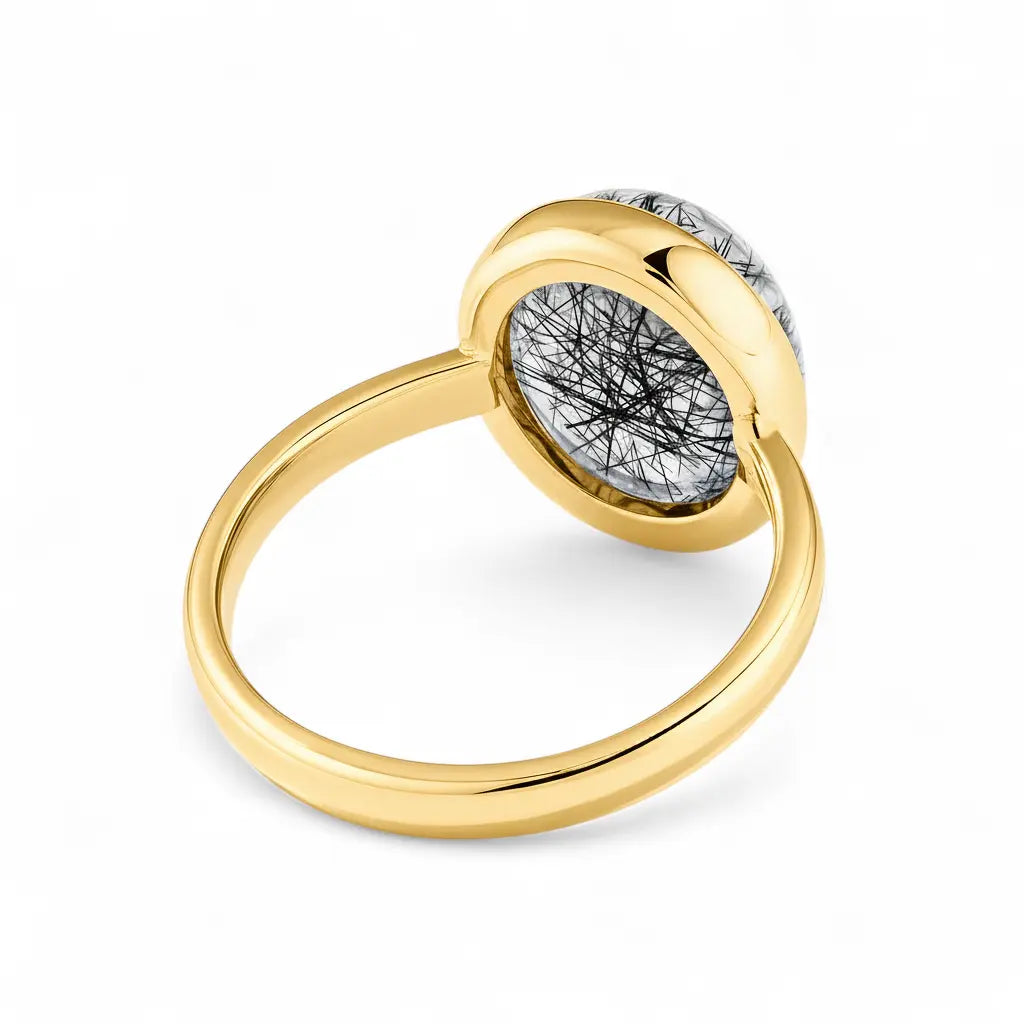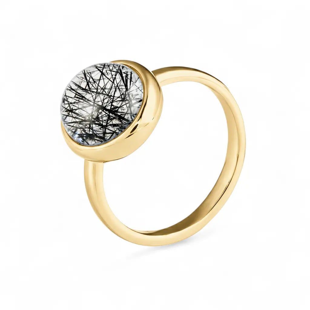 Large Cabochon Black Rutilated Quartz Ring - Bold Serenity