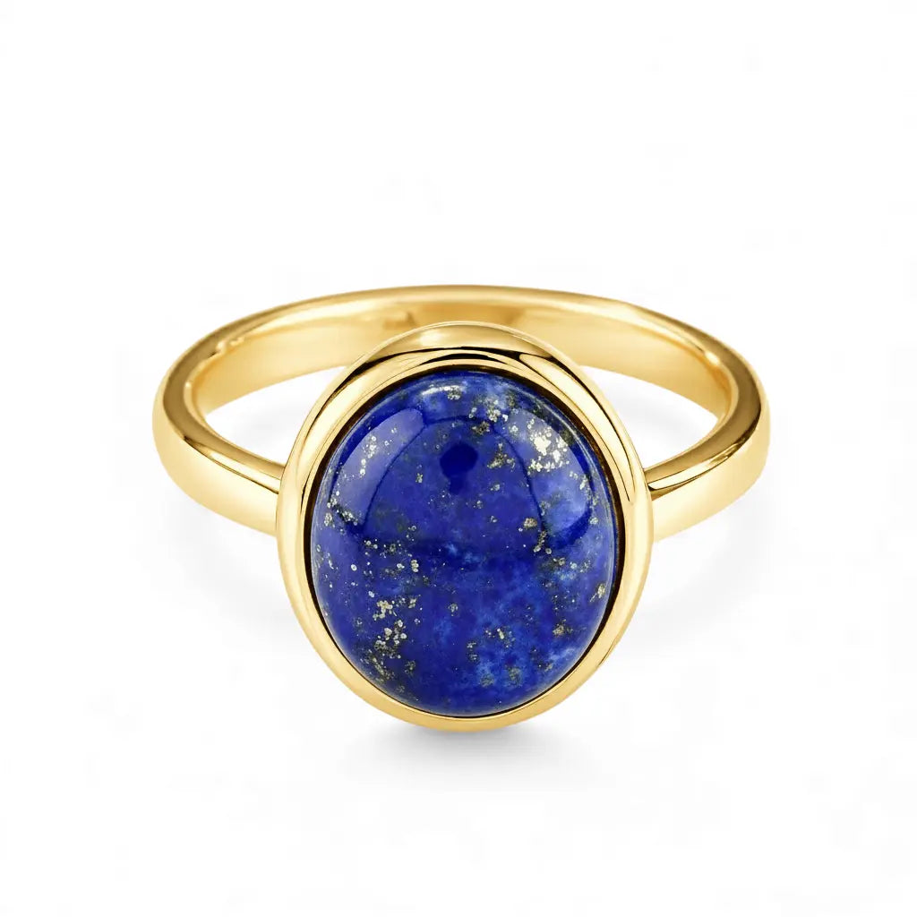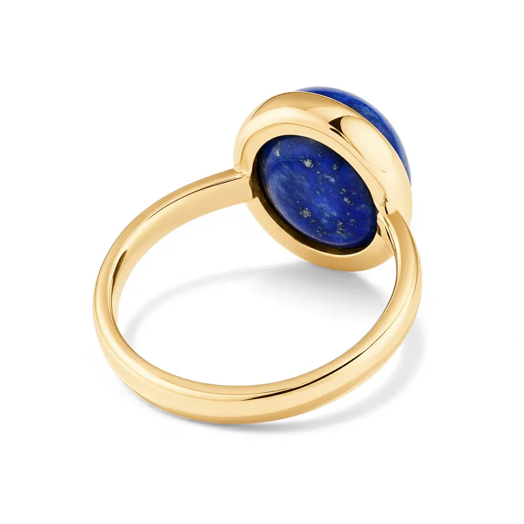 Like the night sky falling onto your finger, this Lapis Lazuli Large Cabochon Ring is both serene and dazzling. Tiny golden specks are scattered across the deep blue, like an ancient star map, recording the trajectory of time and thought.