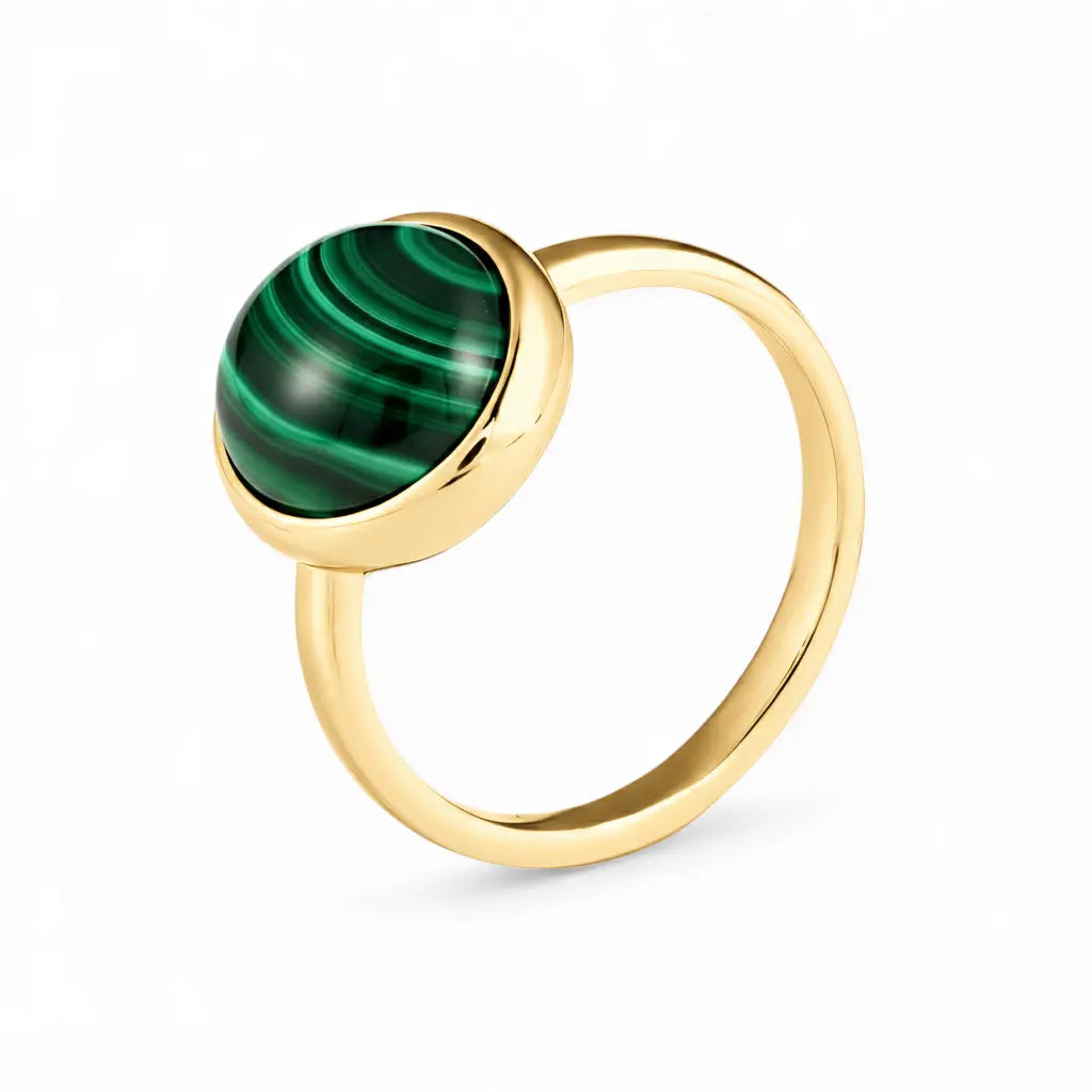 Of all the greens, malachite's green has the most story. This Malachite Large Cabochon ring is like the heart of the earth breathing. The interwoven patterns of light and dark are the rings of time, and also the veins of power. It contains the energy of protection, not to build walls, but to teach you to exist peacefully. When the world is too noisy, wear it, carry a safe space of your own. And you can be confident and composed wherever you go.