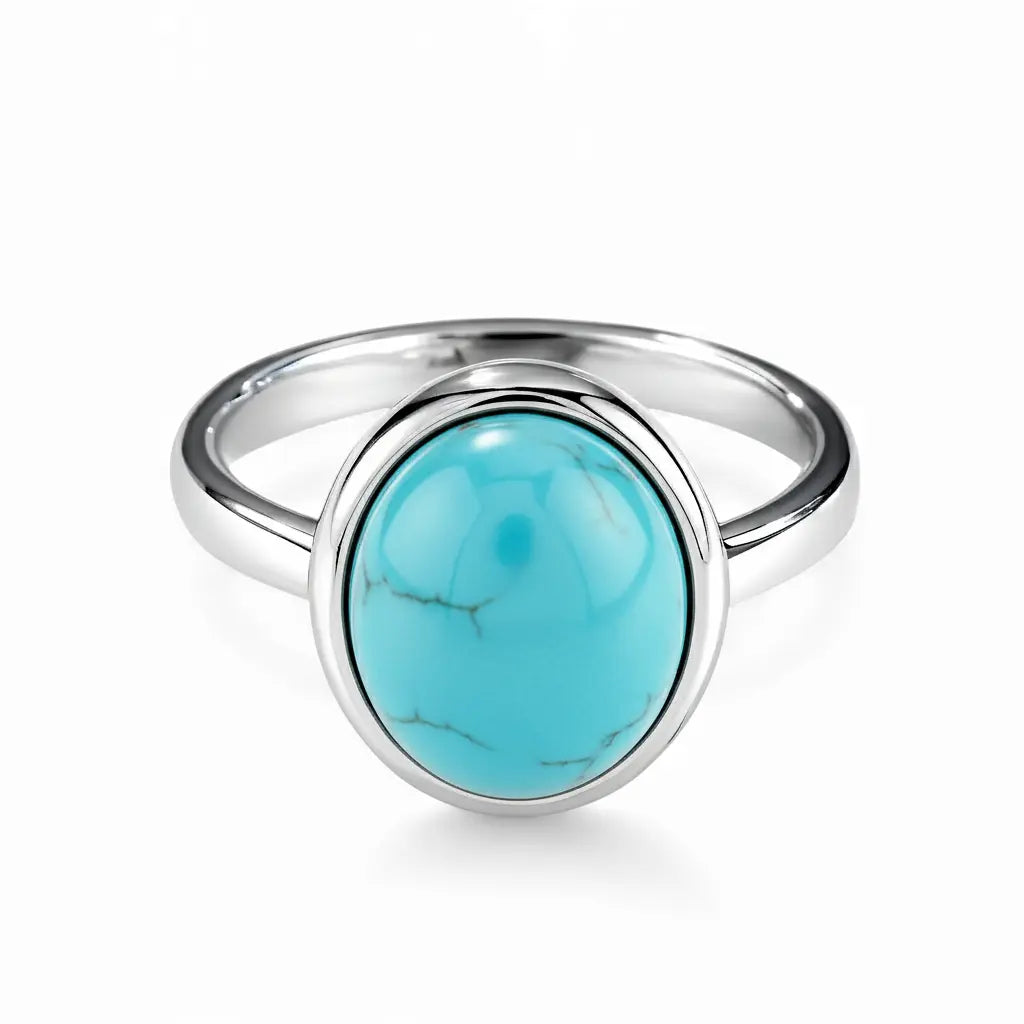 The blue of turquoise is like the untouched sea in your heart. The large cabochon ring from us carries a kind of healing stillness, soft and steady, like a slow breath. Its blue-green luster soothes the heart in an instant, evoking the wind, the sea, and your own peaceful self. Keep it for you, or give it to someone who matters; either way, it’s a small, timeless act of love.