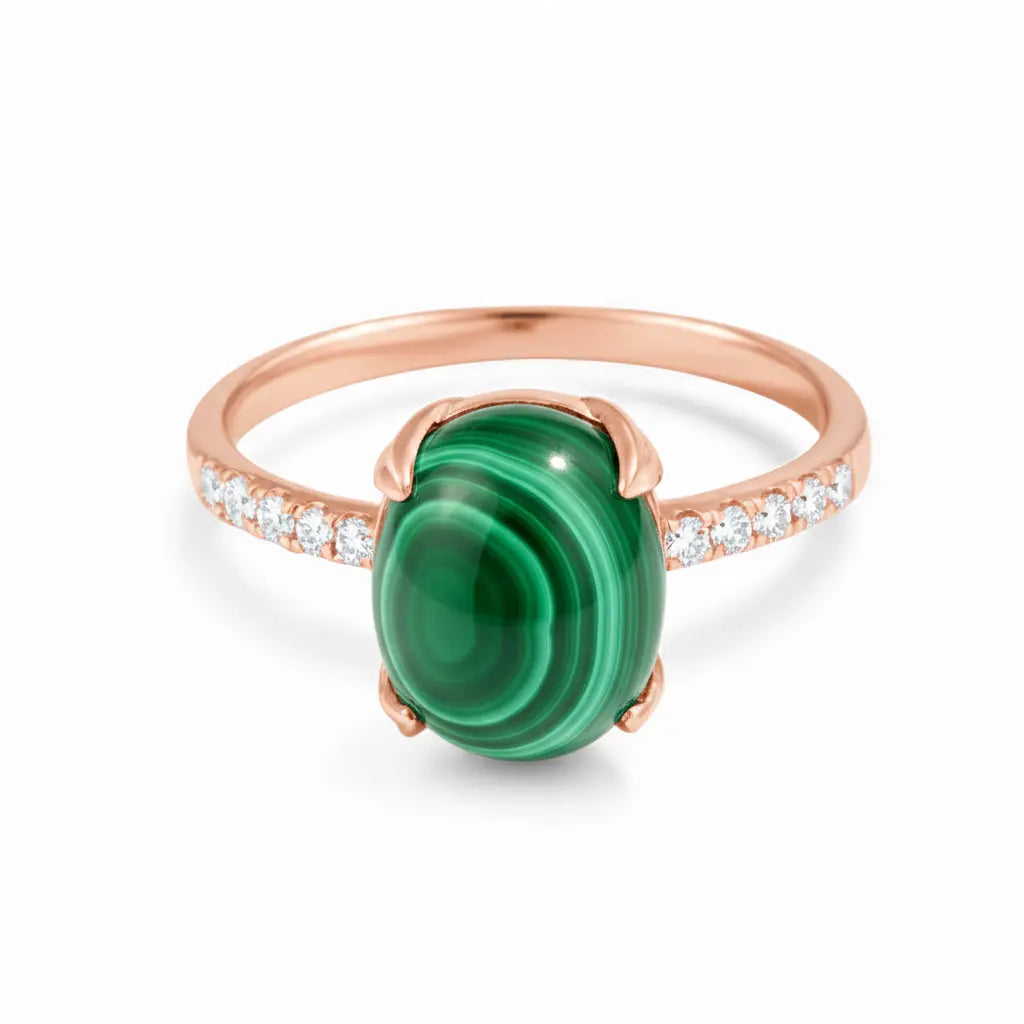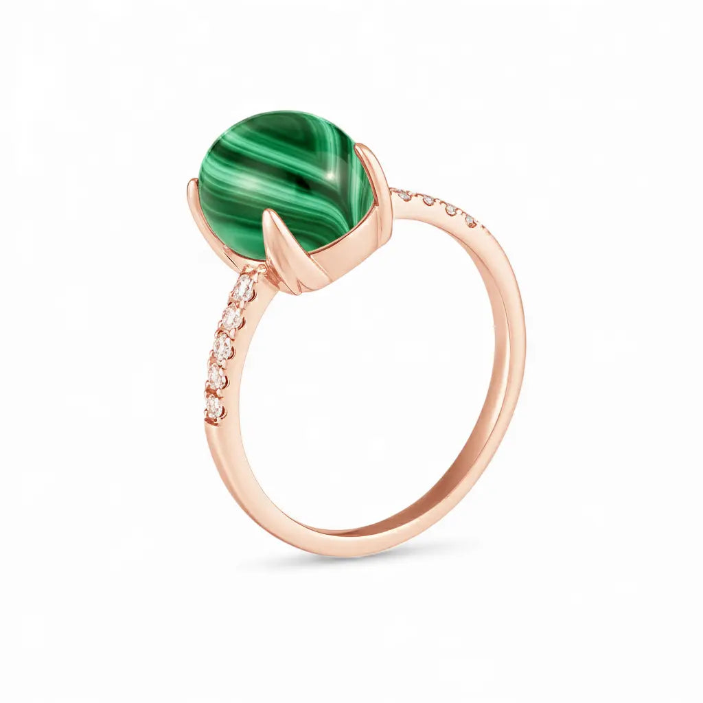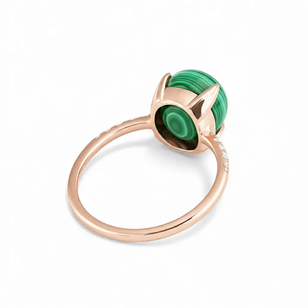 The deep green veins meander and flow in the light, like the breath of a forest. This malachite cabochon ring possesses a quiet power, understated yet calming. Its curved surface, smooth as stone and perfectly polished, is like a talisman left by time. Its protection isn’t about defense, but about bringing stability and clarity when you are facing life’s storms.