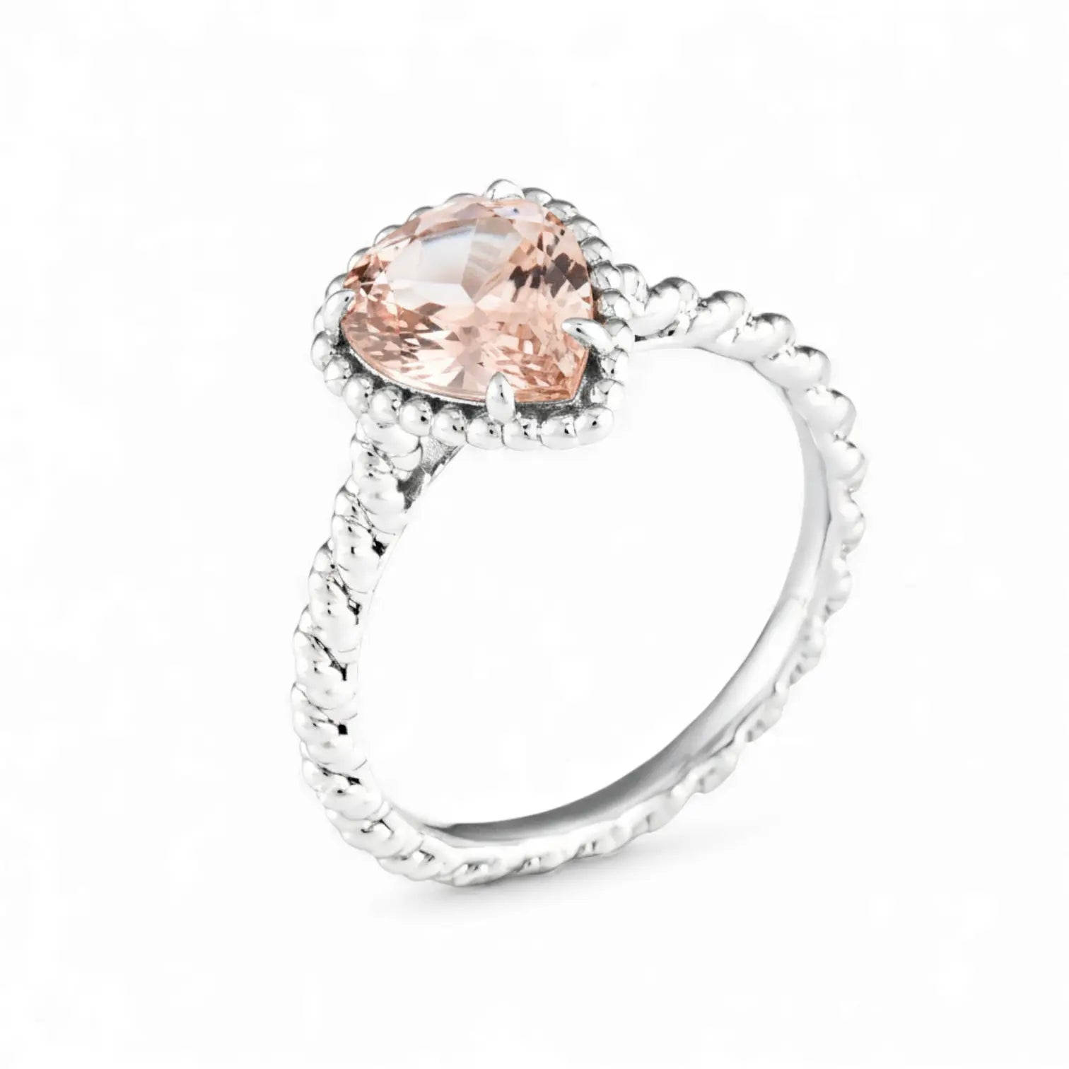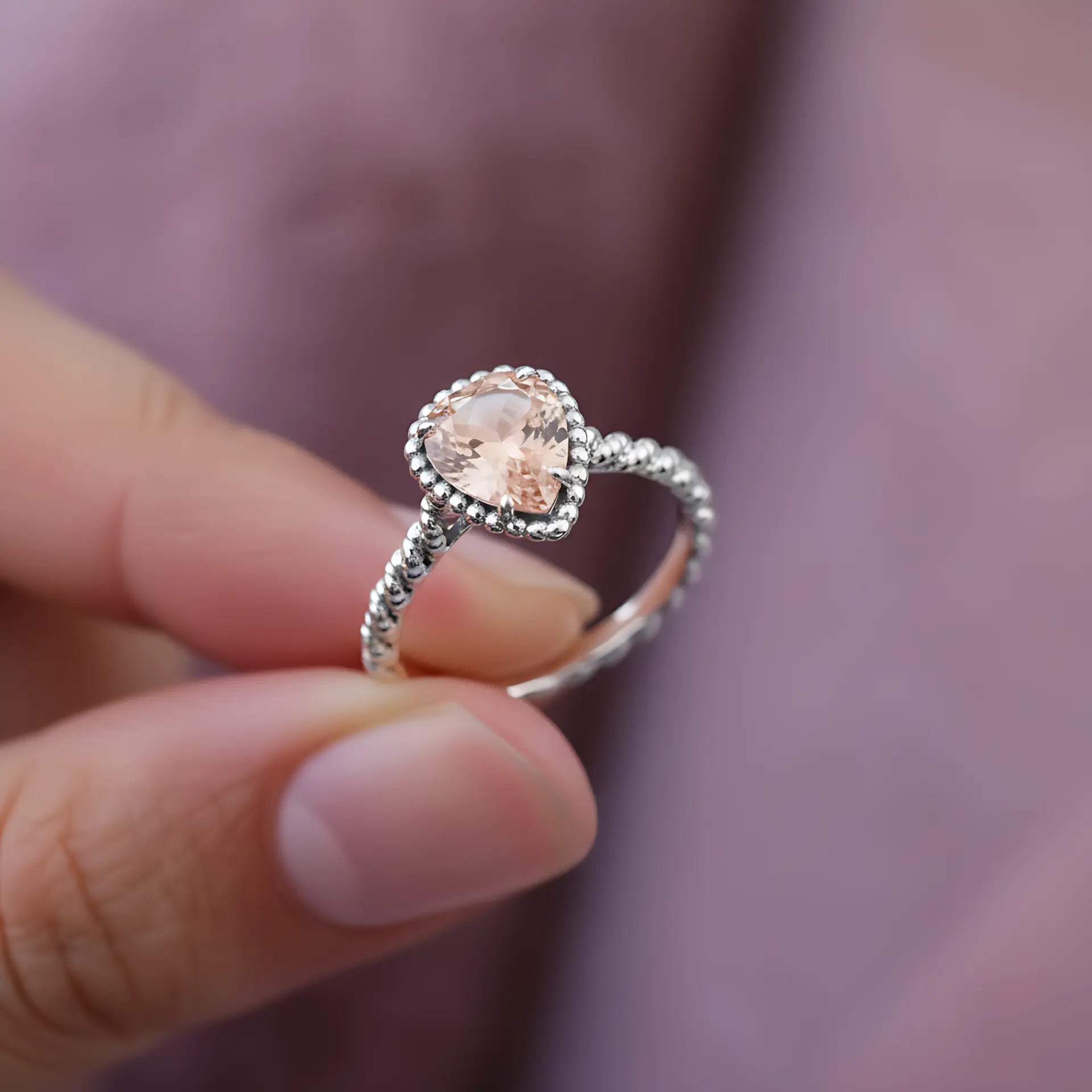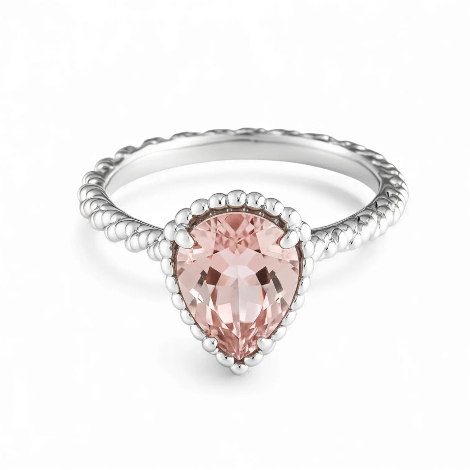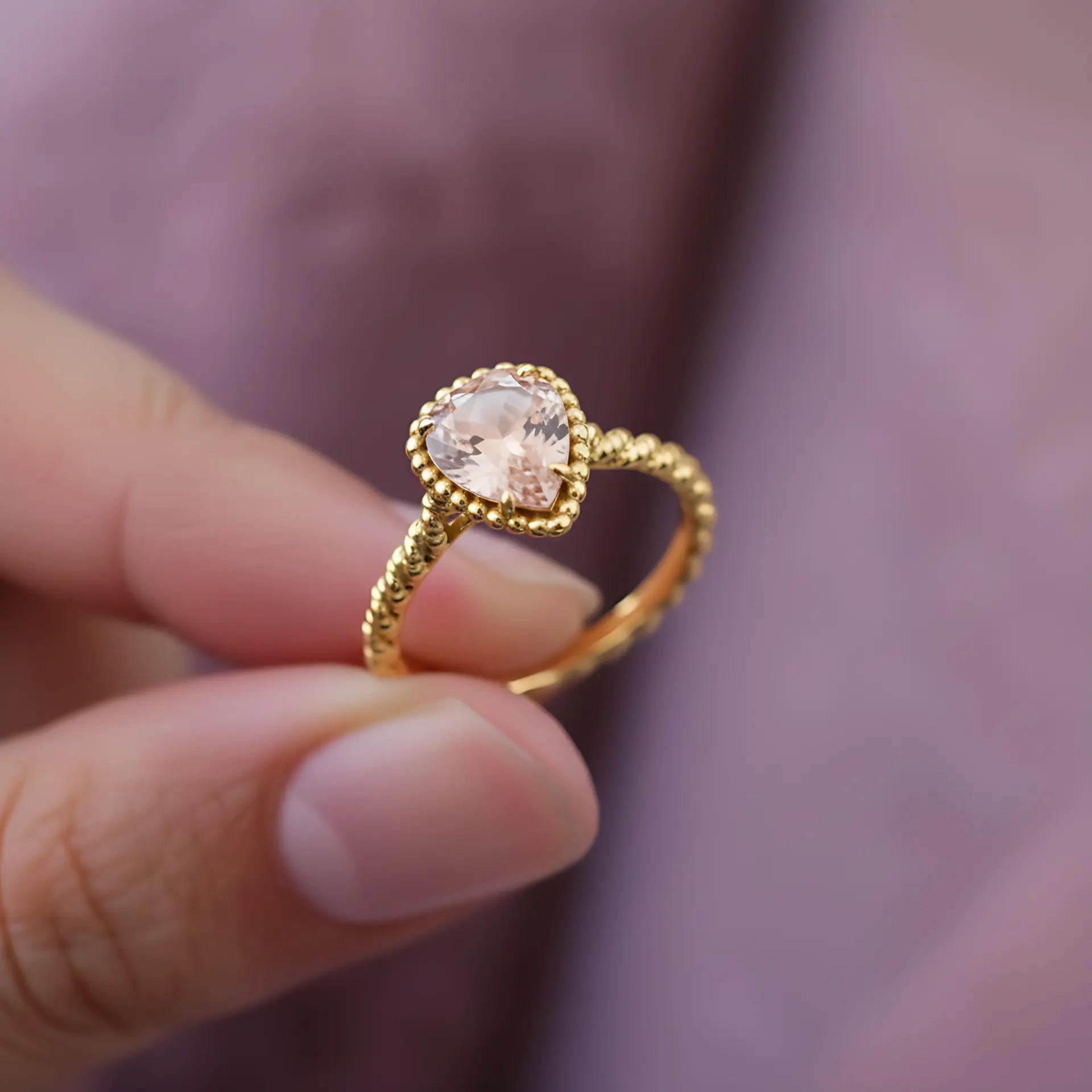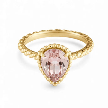The morganite in our pear-shaped ring carries a quiet and gentle character. The pear cut works with the twisted band to create a clean and structured look. Compassion appears in a clearer and more grounded form. Turn Compassion into a strength you can wear. Minimalist, yet full of presence.
