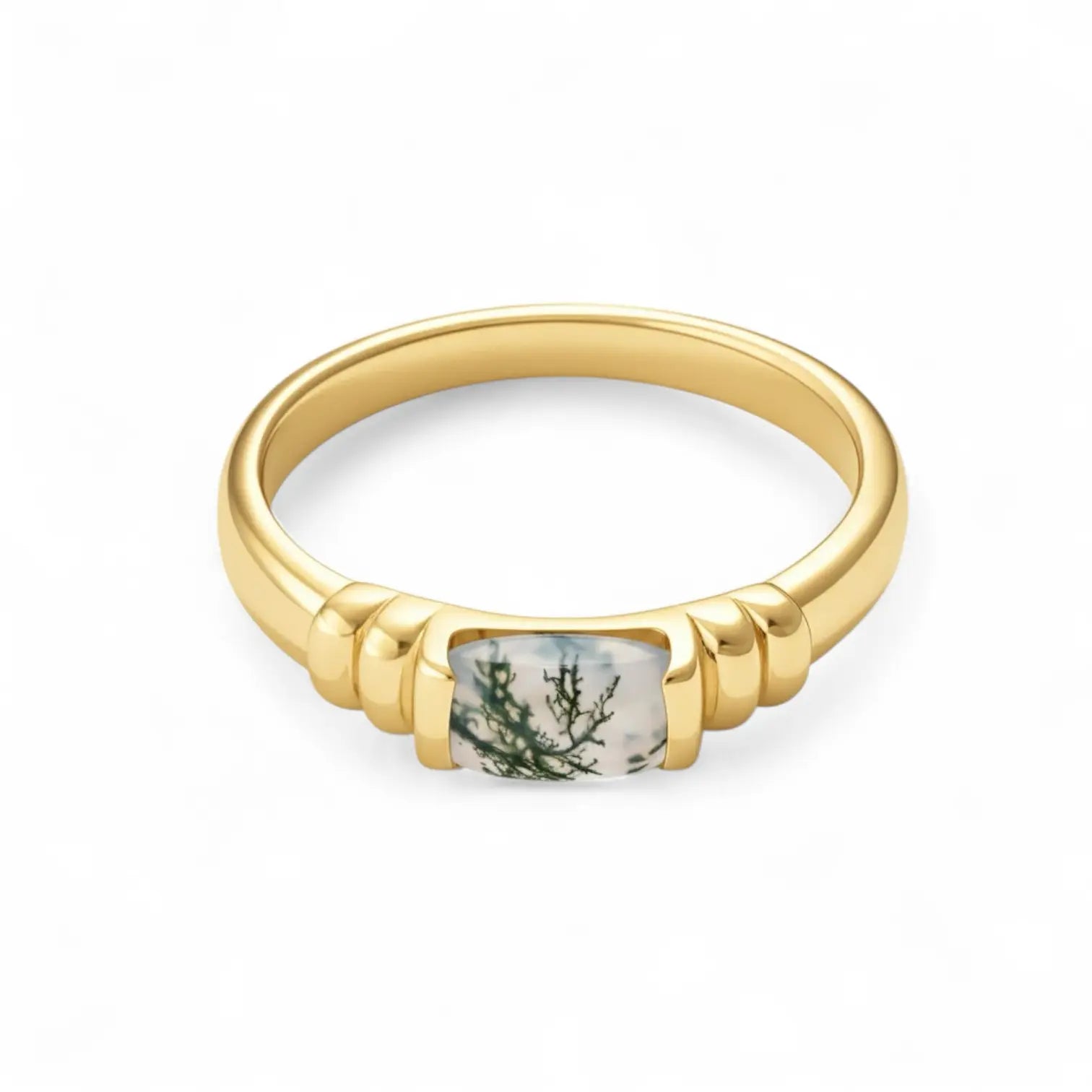 Moss Agate Baguette Ring - Axis