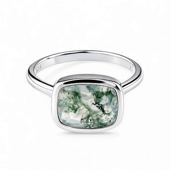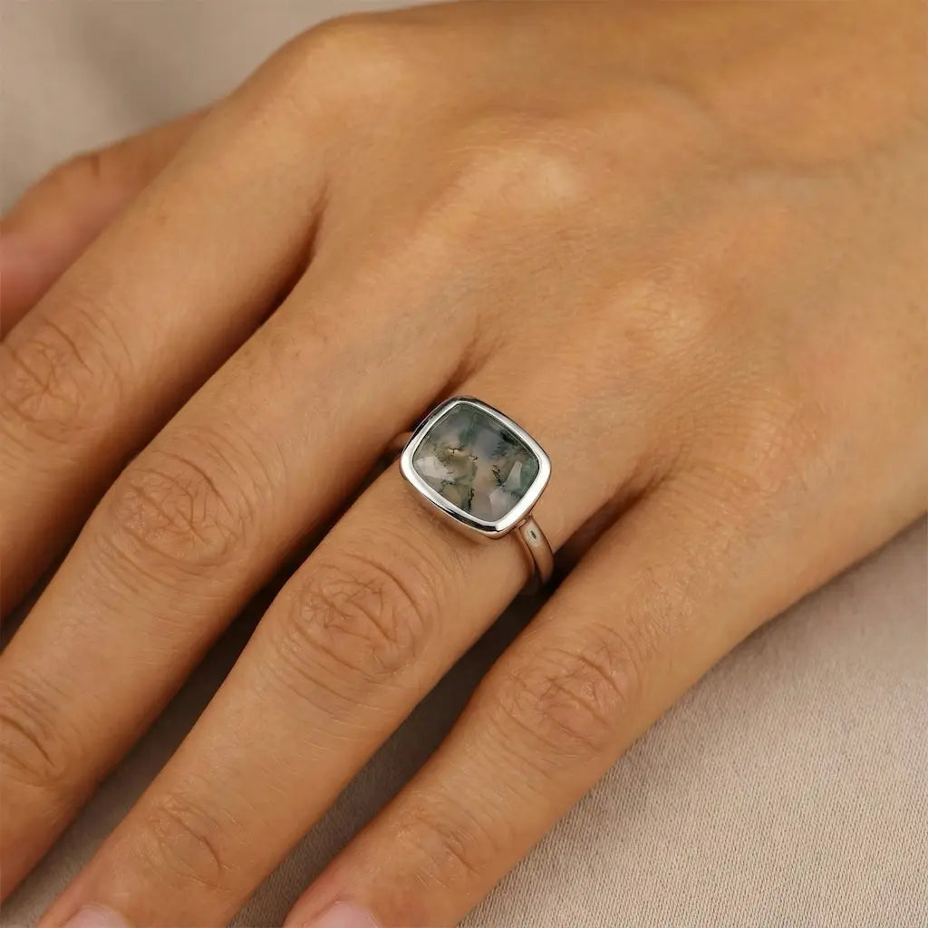 Moss Agate Cushion Ring - Pure Hush
