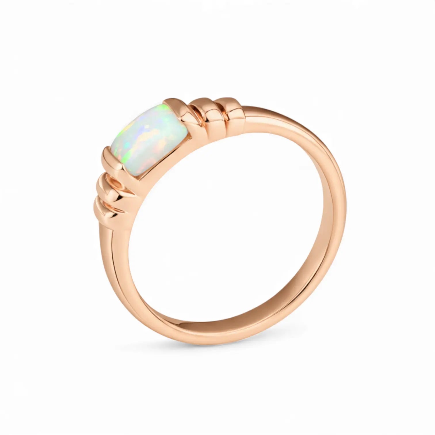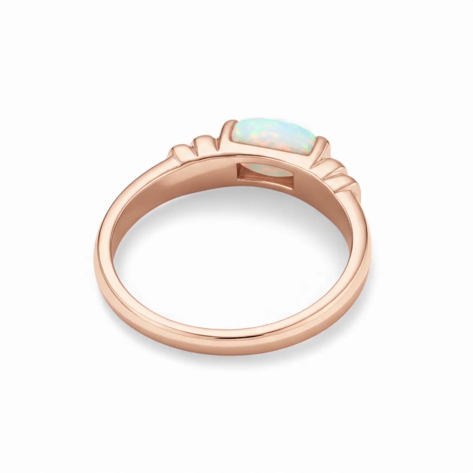 Drunk Angel’s Opal Baguette Ring shows a smooth, rounded band with gentle, symmetrical ridges that frame the stone in a soft, balanced way. At the center rests an Opal, as October’s birthstone, glowing with quiet flashes of color. Opal carries a sense of positivity. This ring feels easy to wear, warm in mood, and close enough to guide your day toward something a little brighter.