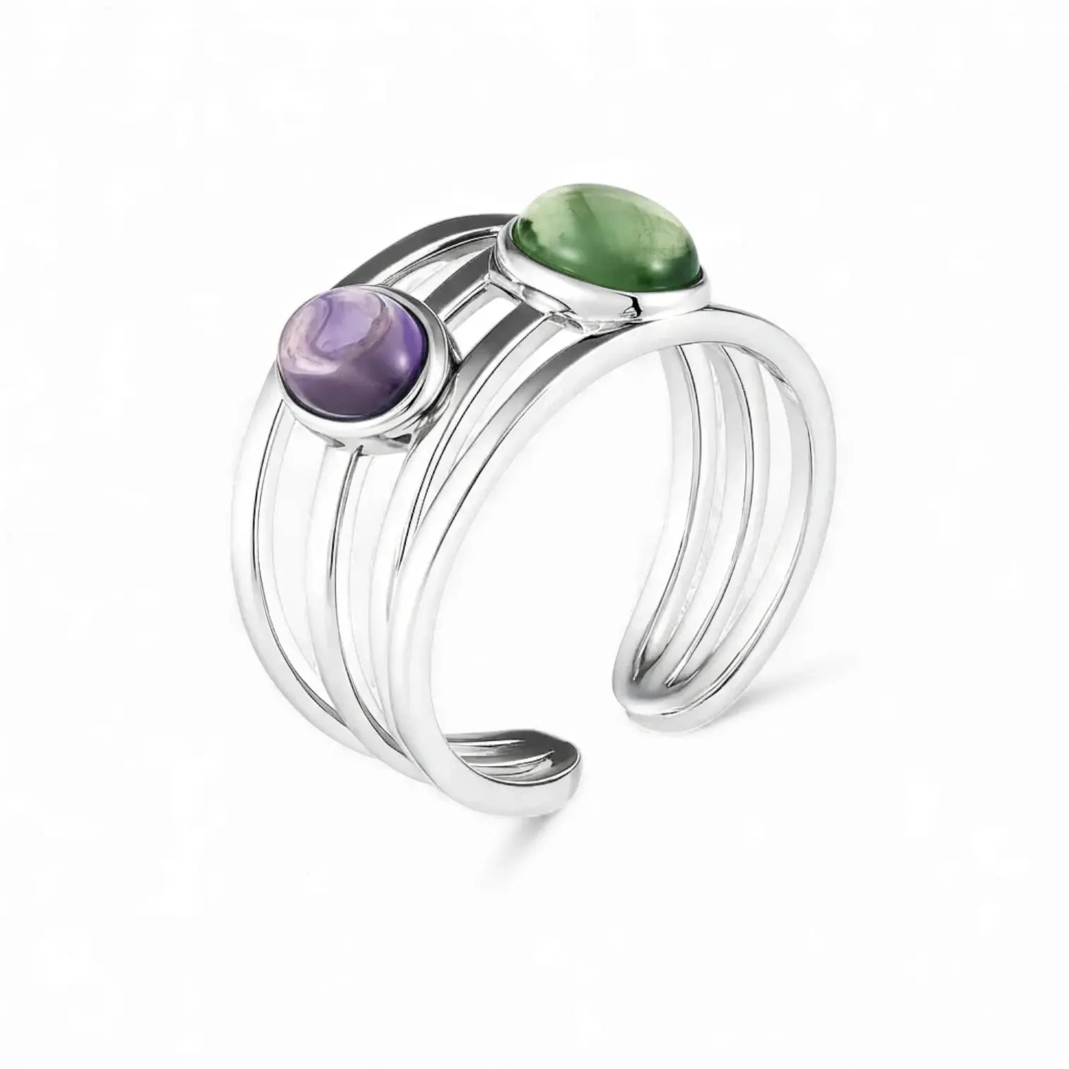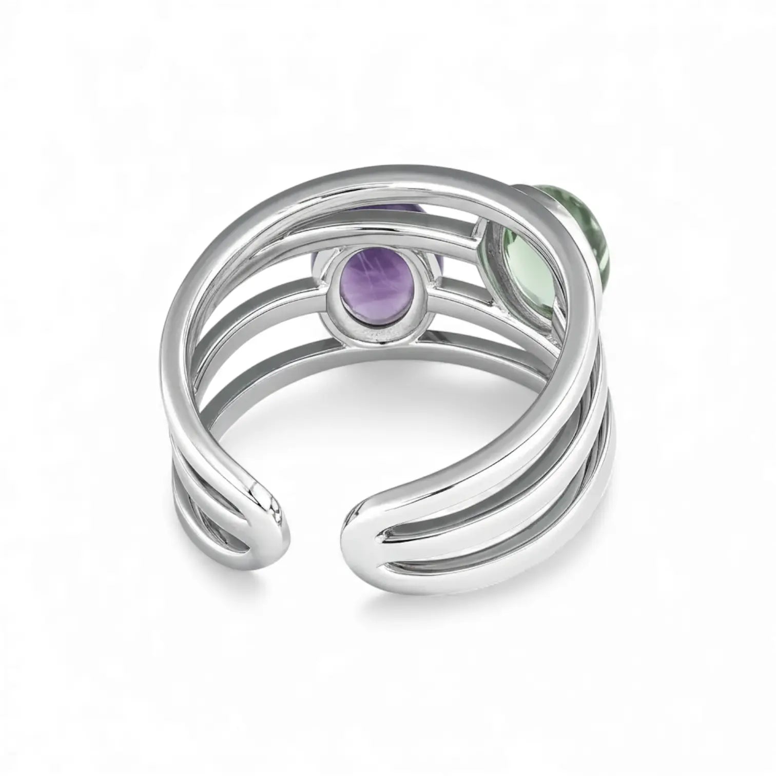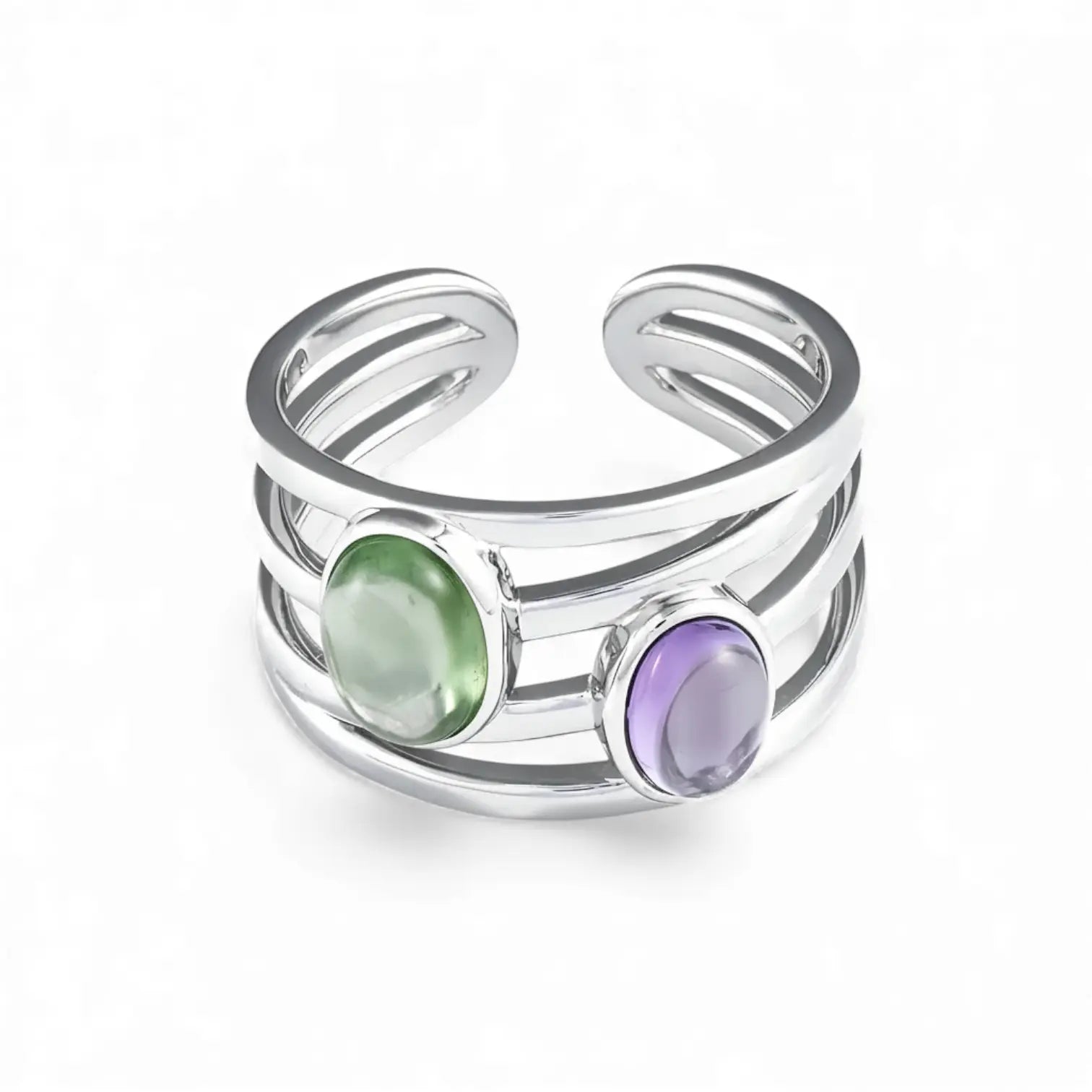 Oval Amethyst & Green Amethyst Ring - Echo of Balance