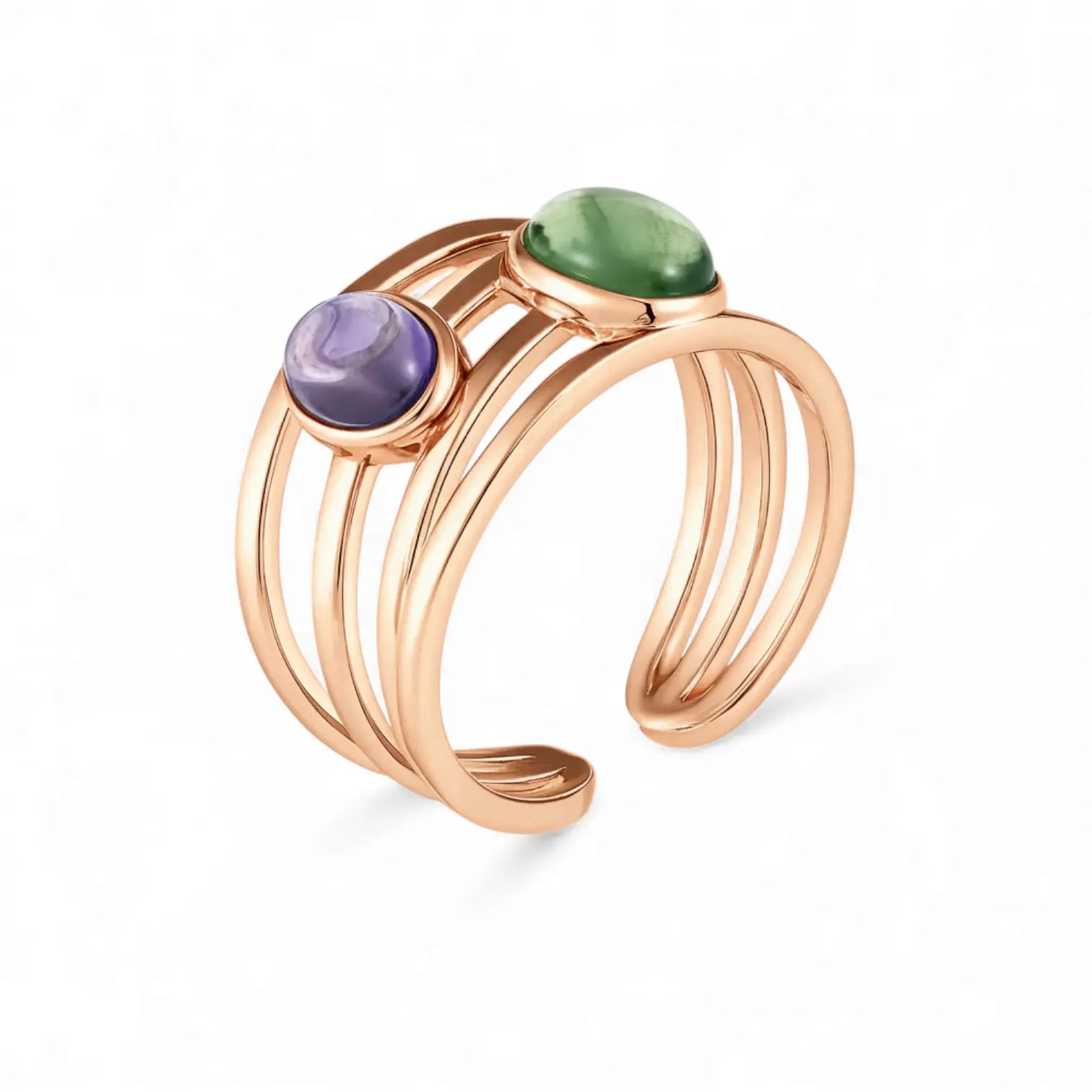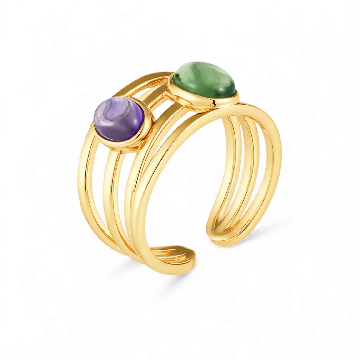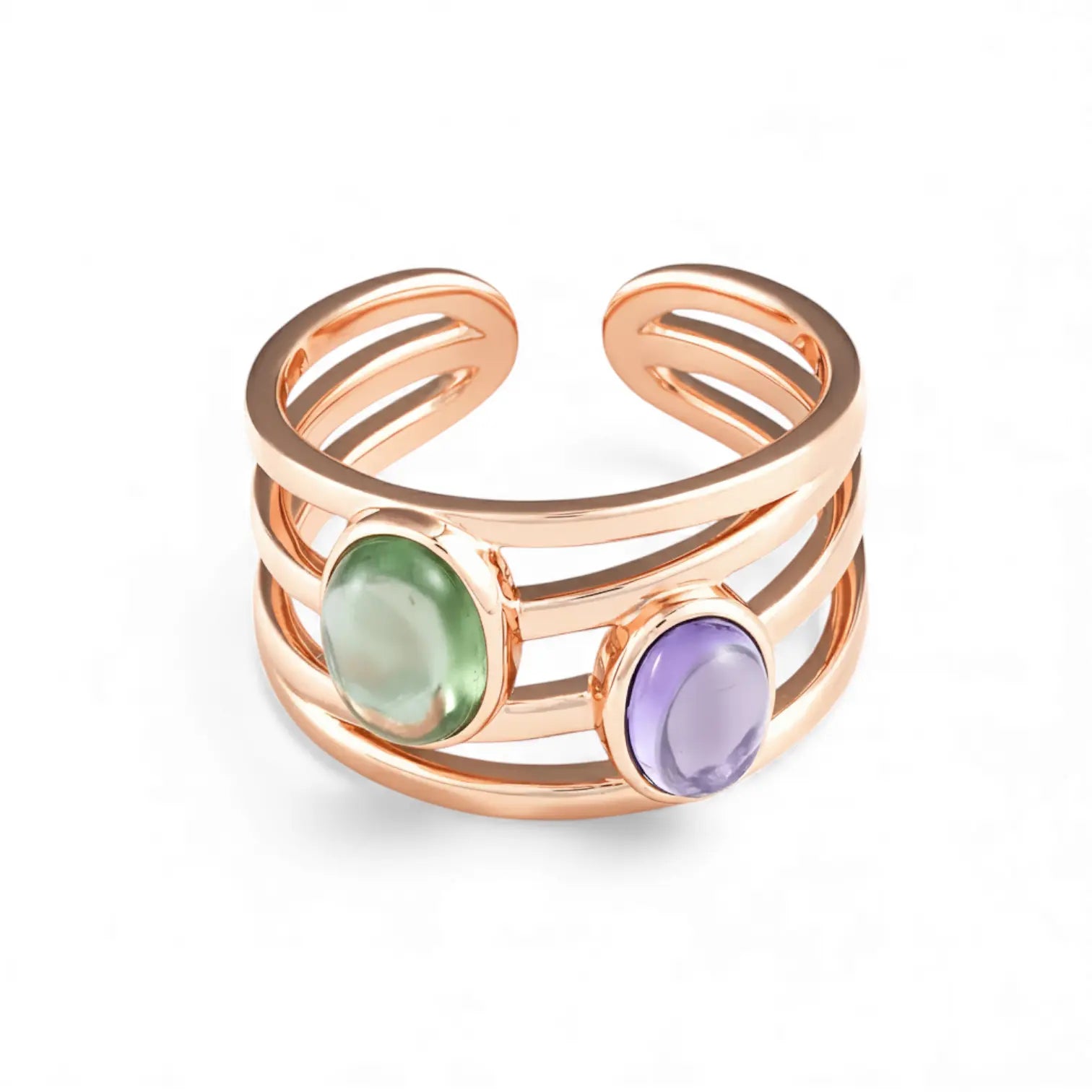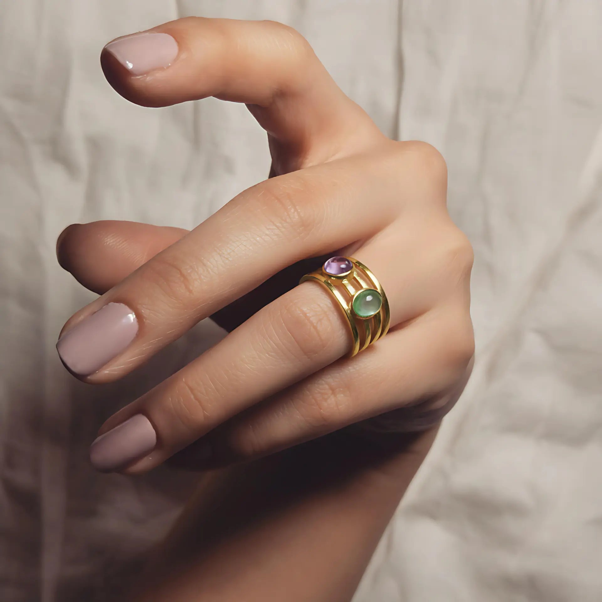 Oval Amethyst & Green Amethyst Ring - Echo of Balance