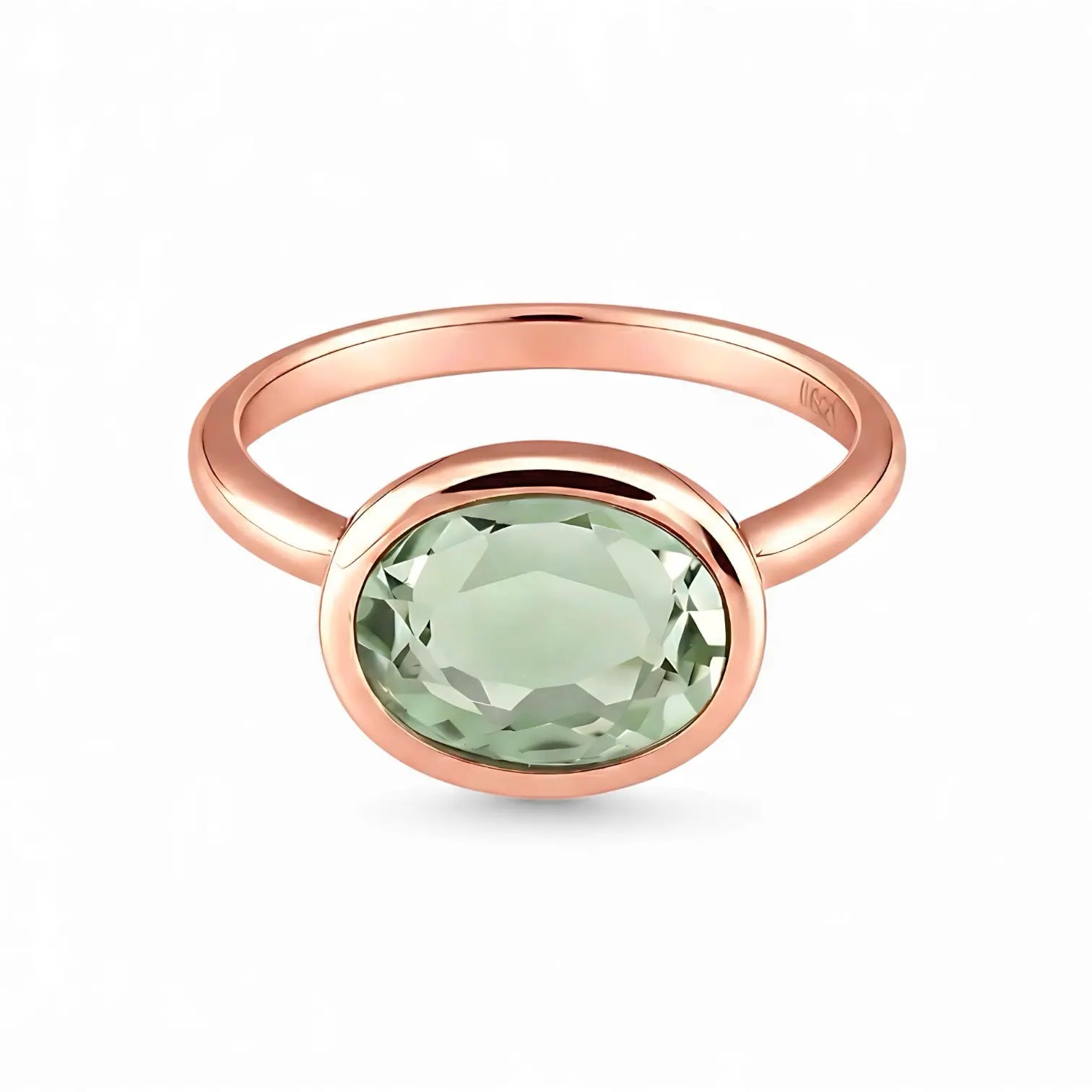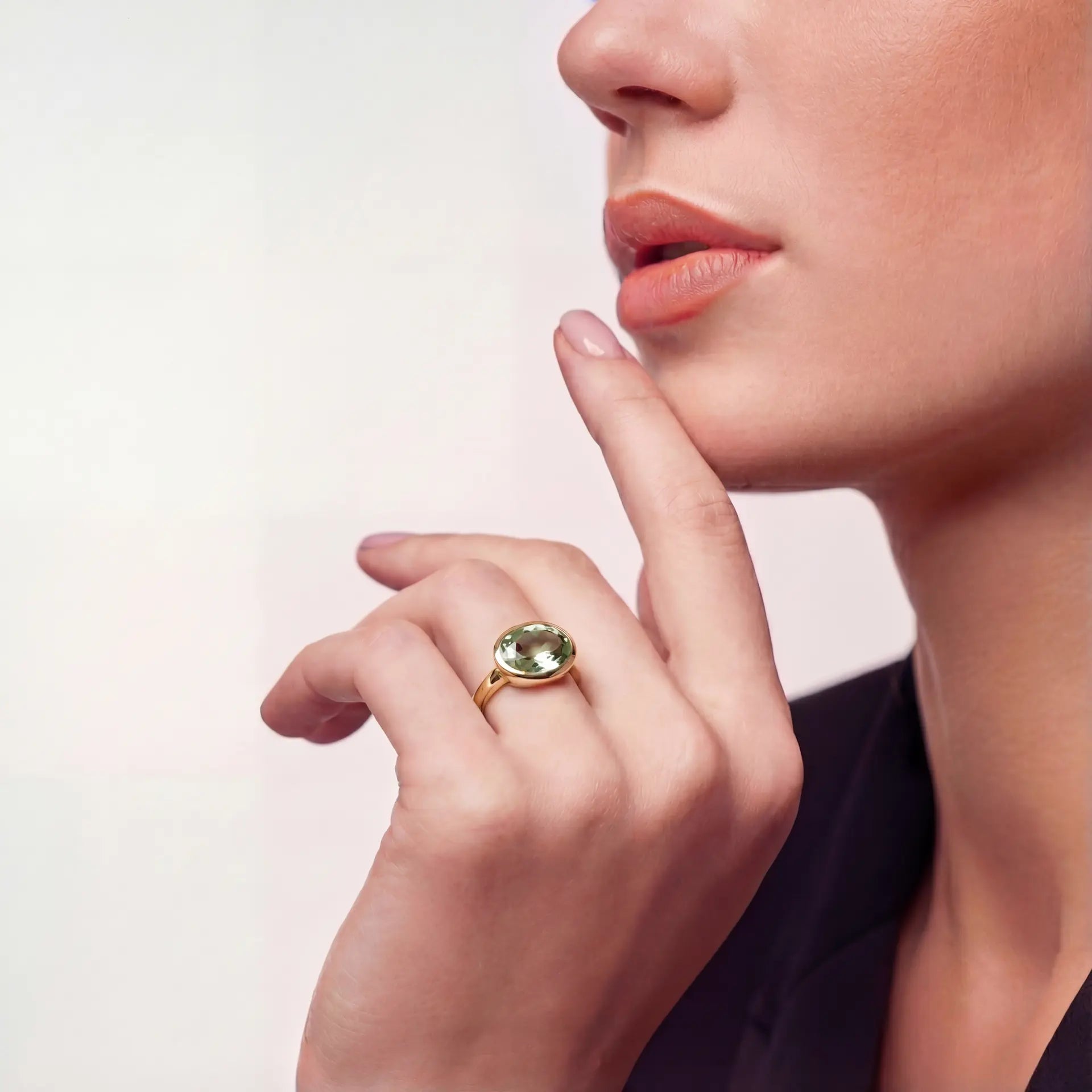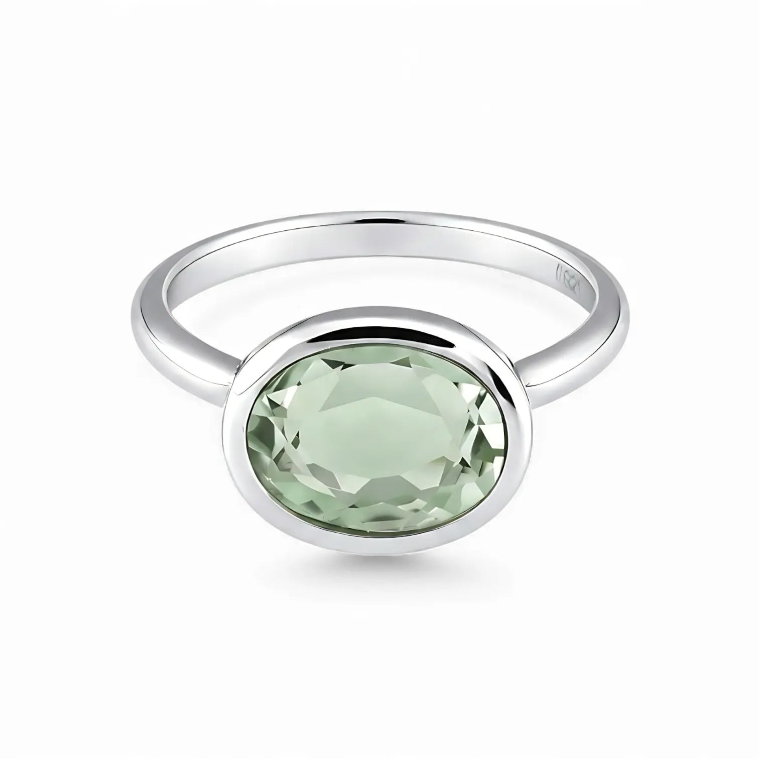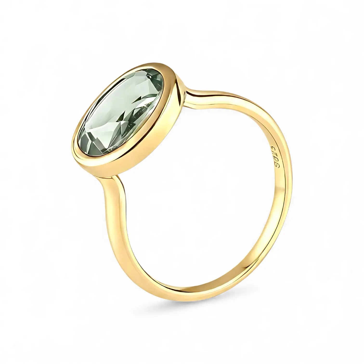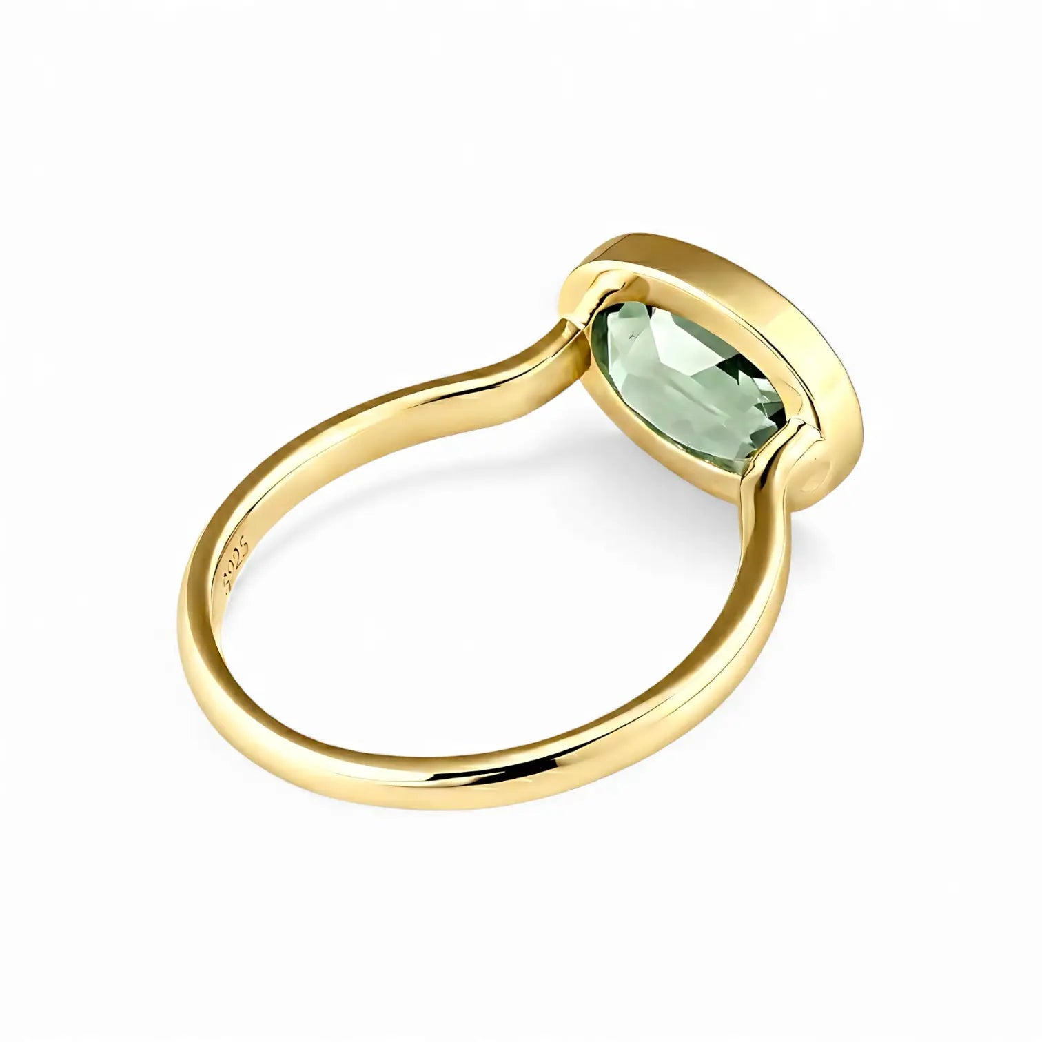 A gentle breeze seems to settle on your finger as the pale green amethyst rests in its metal embrace. The simple band lets the light move freely, softening the rhythm of the day. Its quiet green tone carries a sense of inner harmony, subtle yet steady, guiding you back to a calm, harmonious space even amid life’s shifting moments.