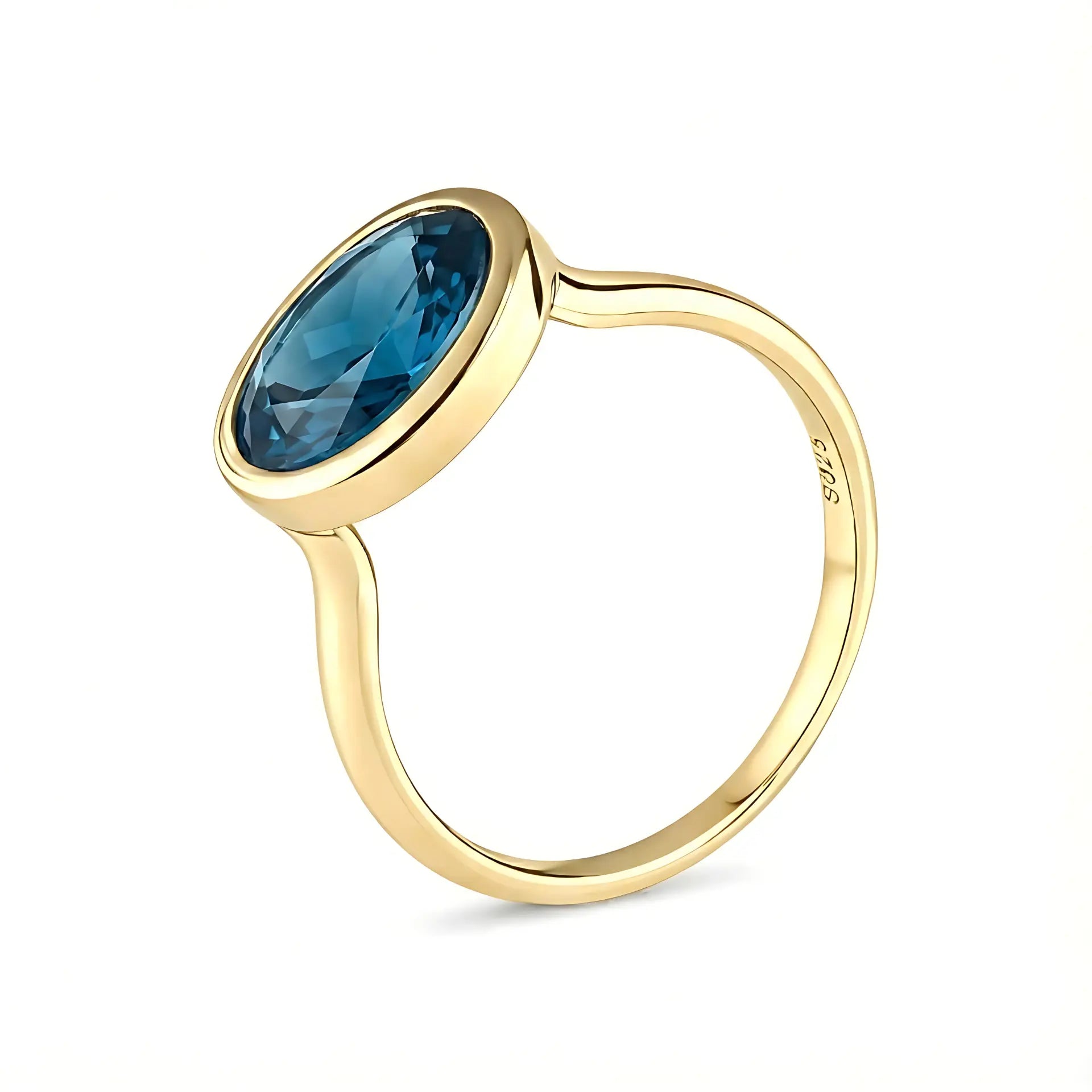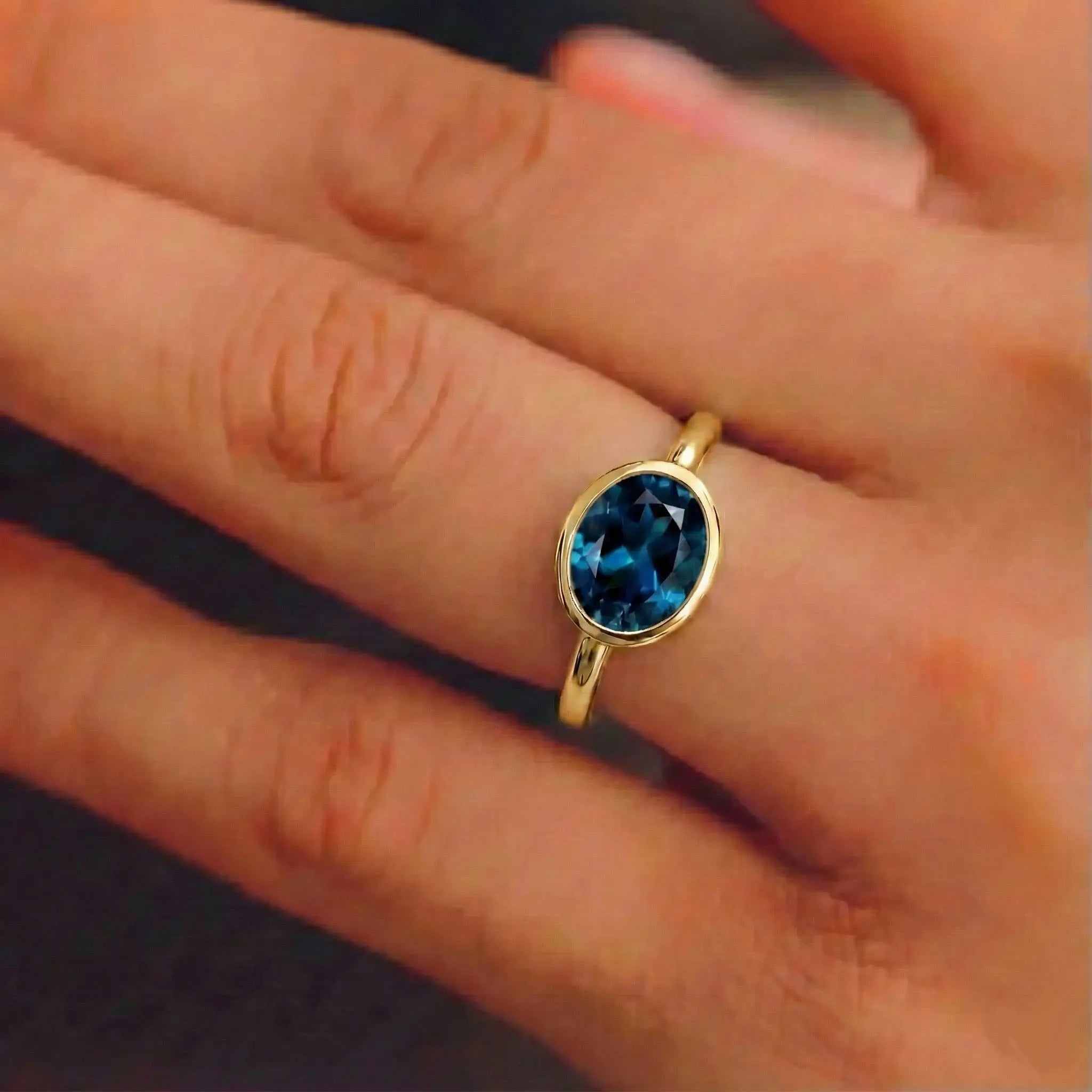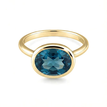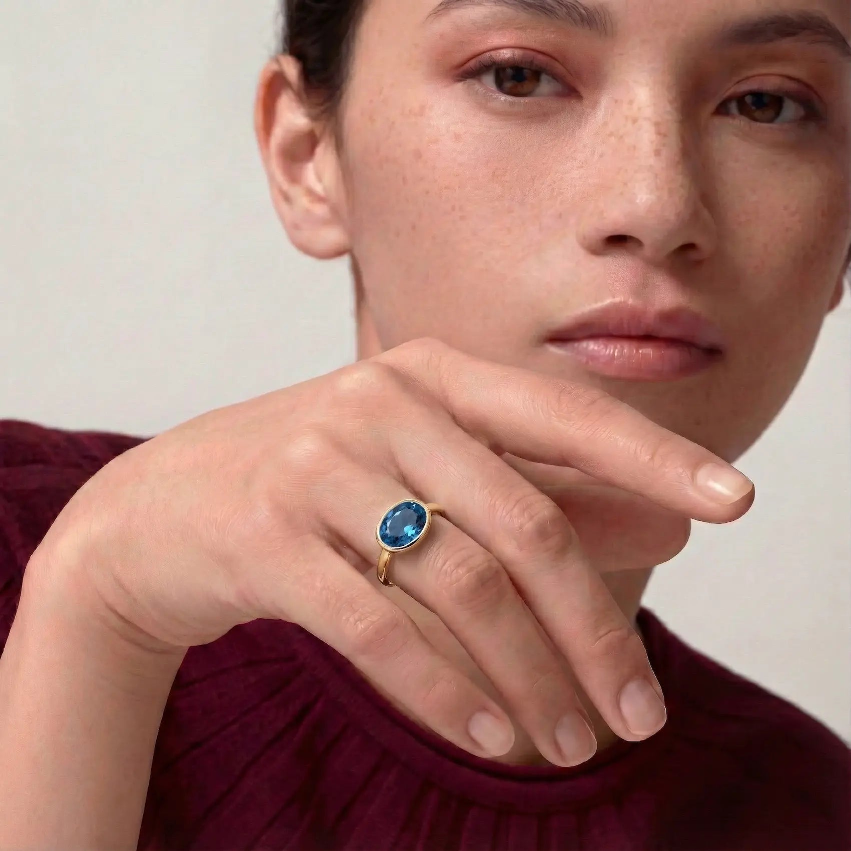 Not every light needs sharp edges. This ring uses a smooth bezel that circles the deep london blue topaz with gentle flow. The oval form feels calm on the finger, carrying almost no weight, only a quiet steadiness. It holds the mood of clarity, like still water that waits for you to pause, helping you clear the noise and return to a focused, peaceful mind.