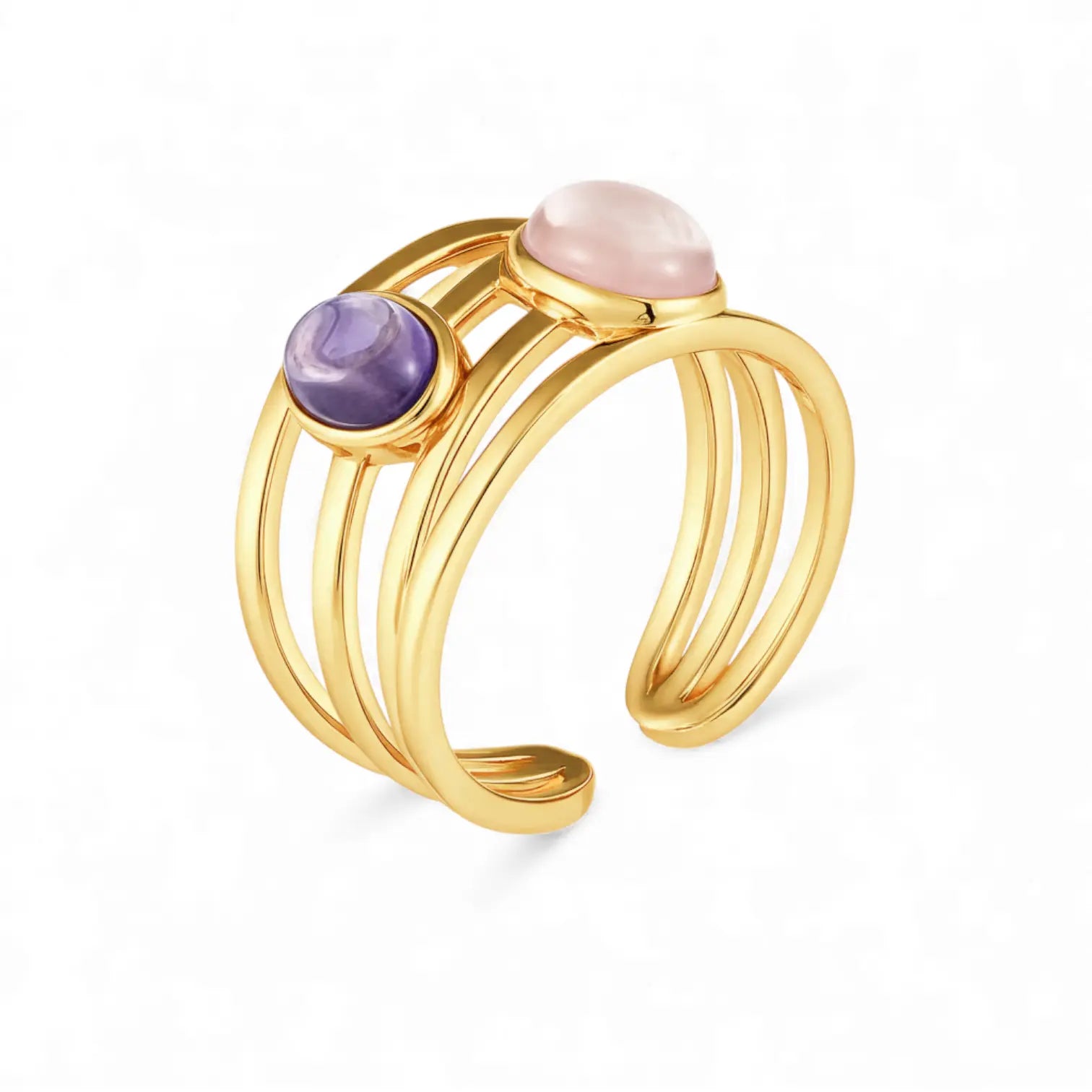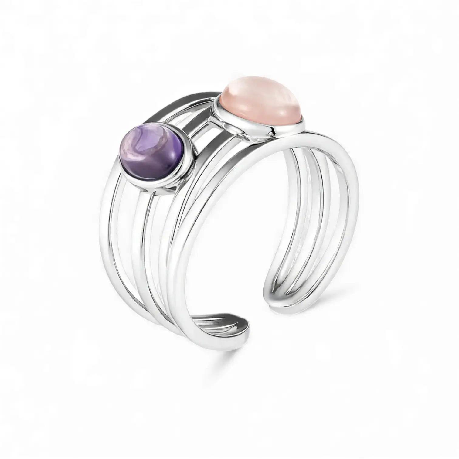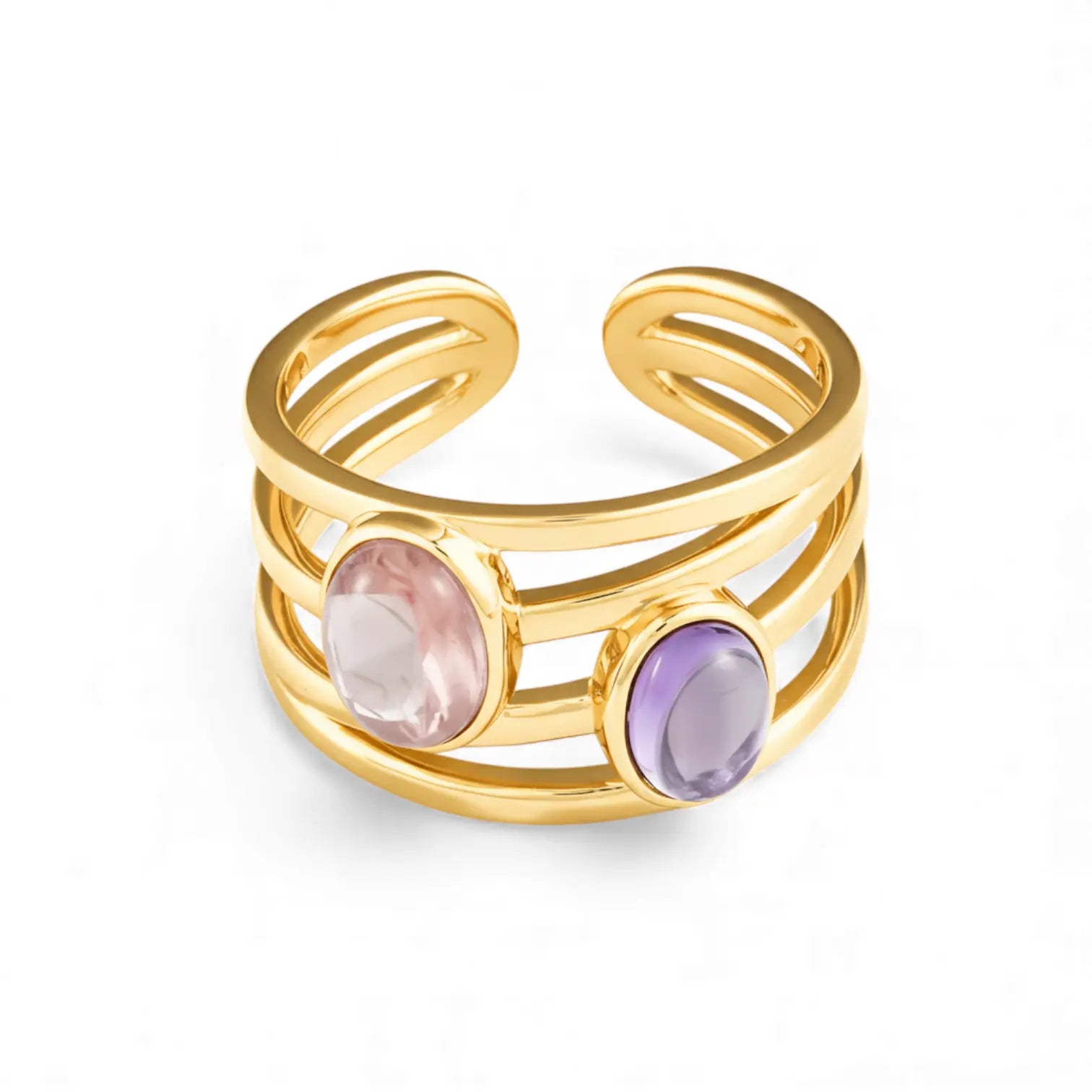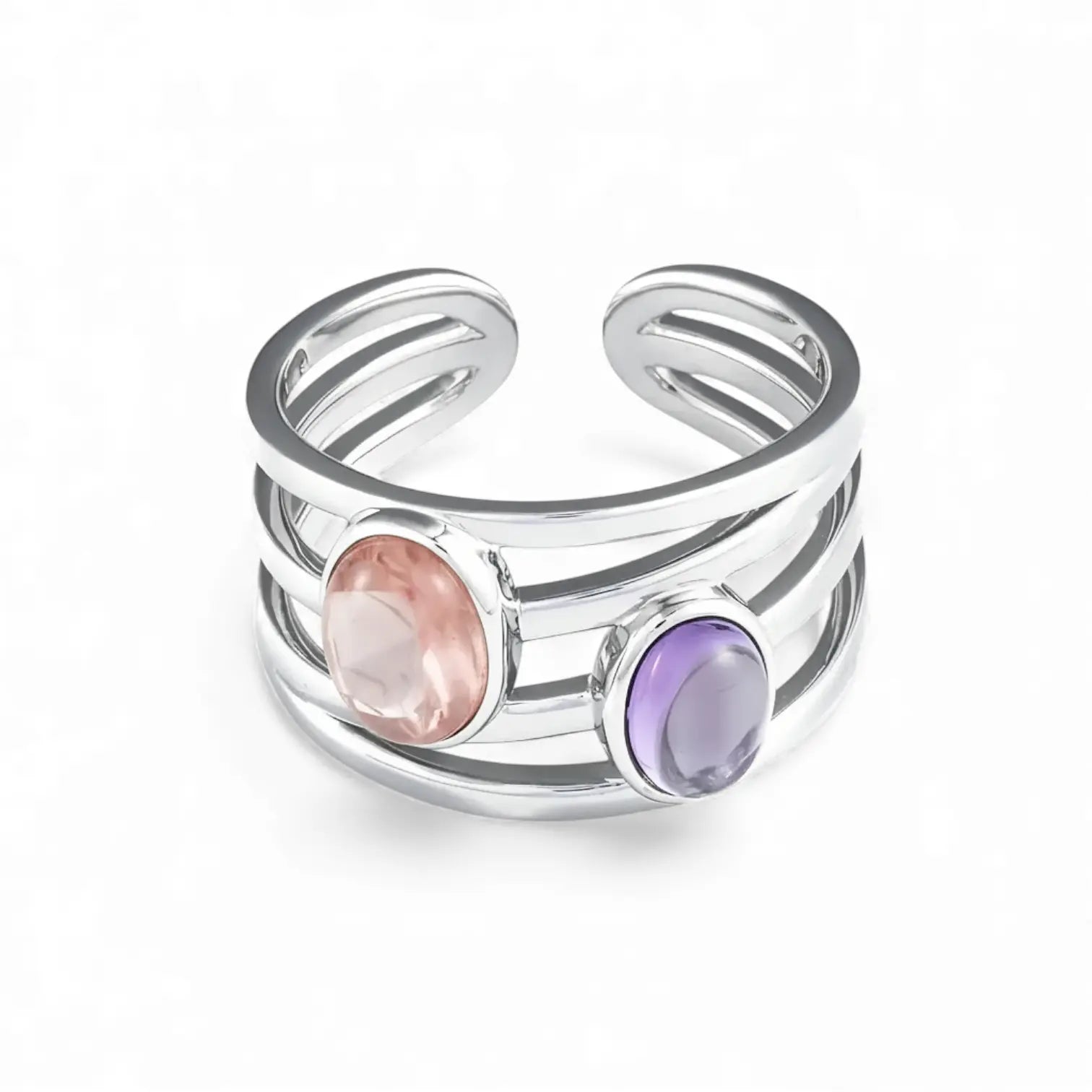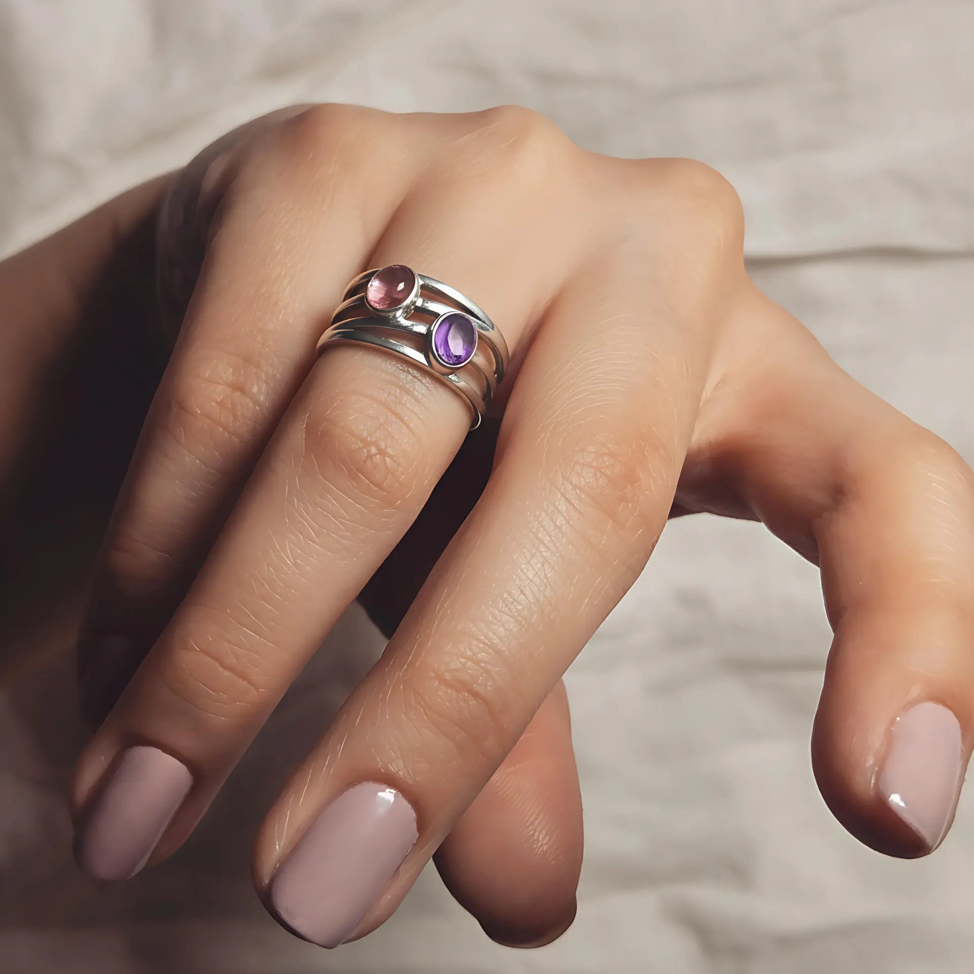 Oval Morganite & Amethyst Ring - Echo of Balance