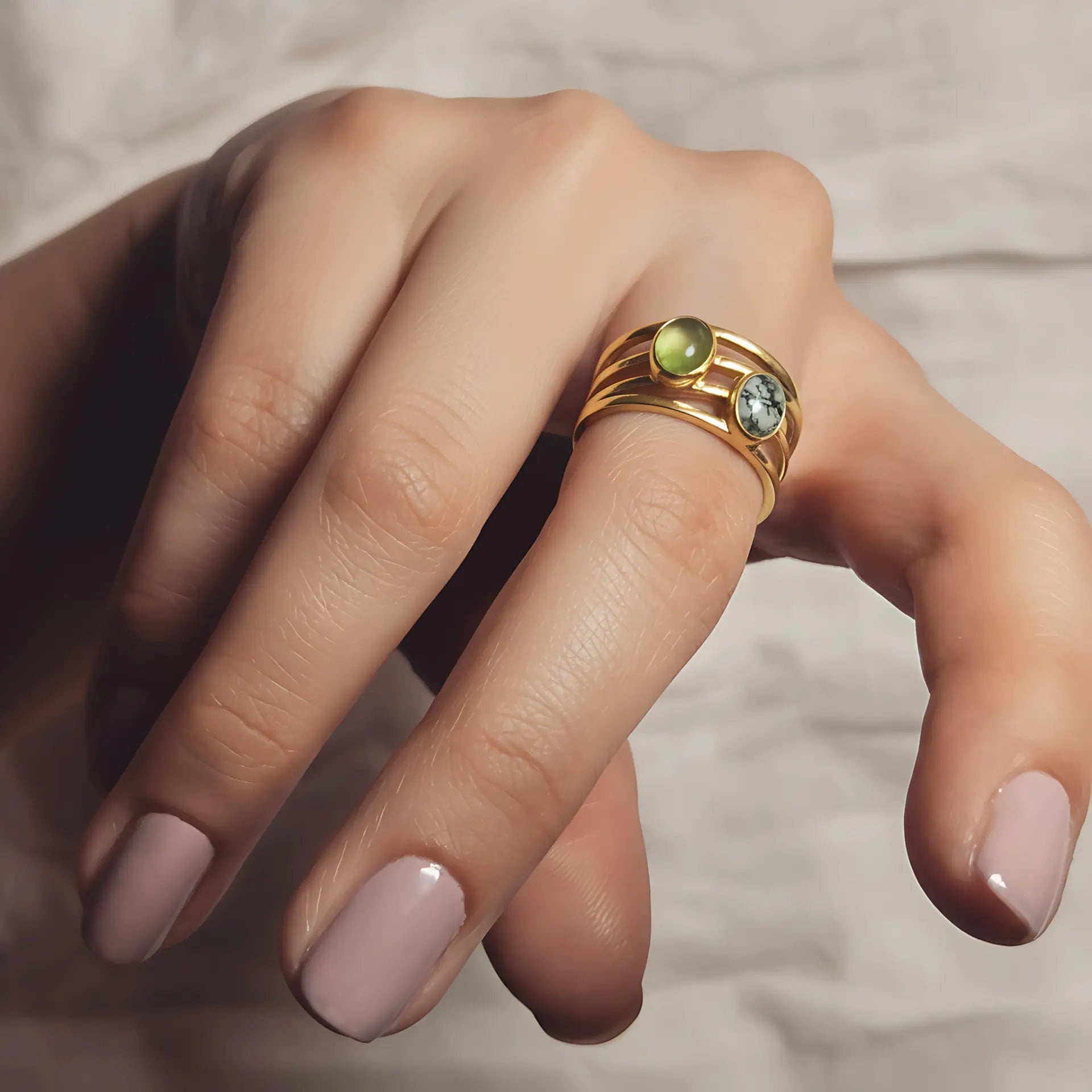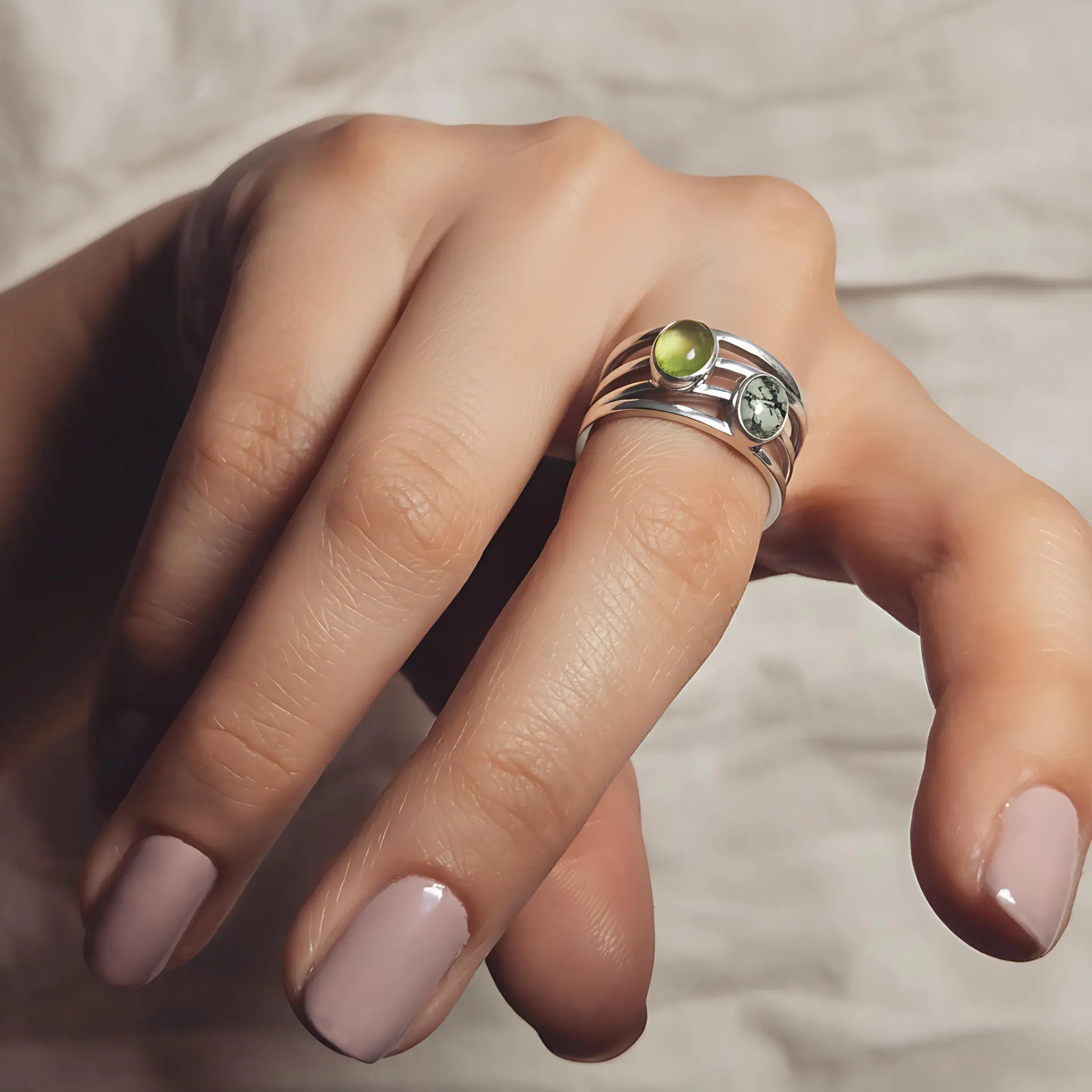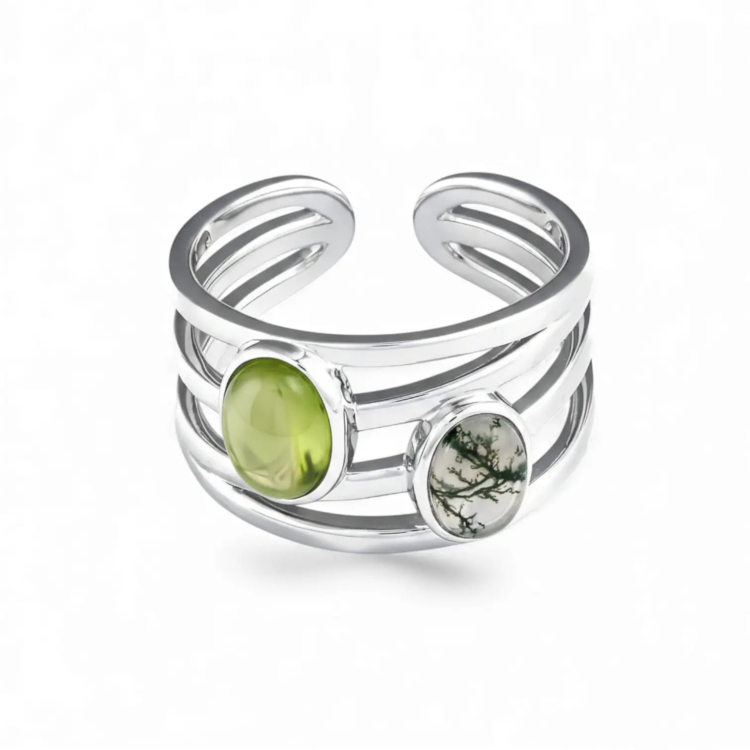 Oval Peridot & Moss Agate Ring - Echo of Balance