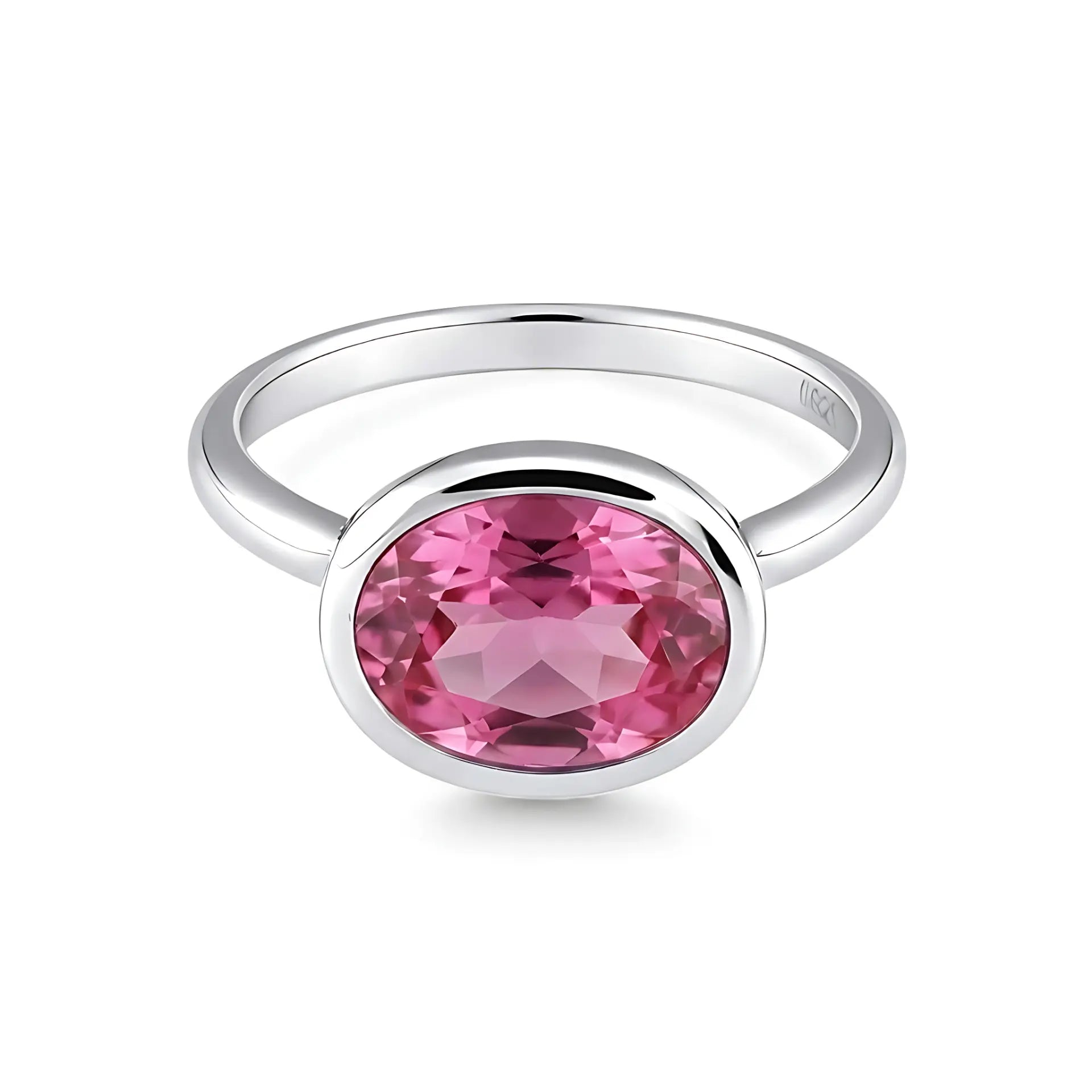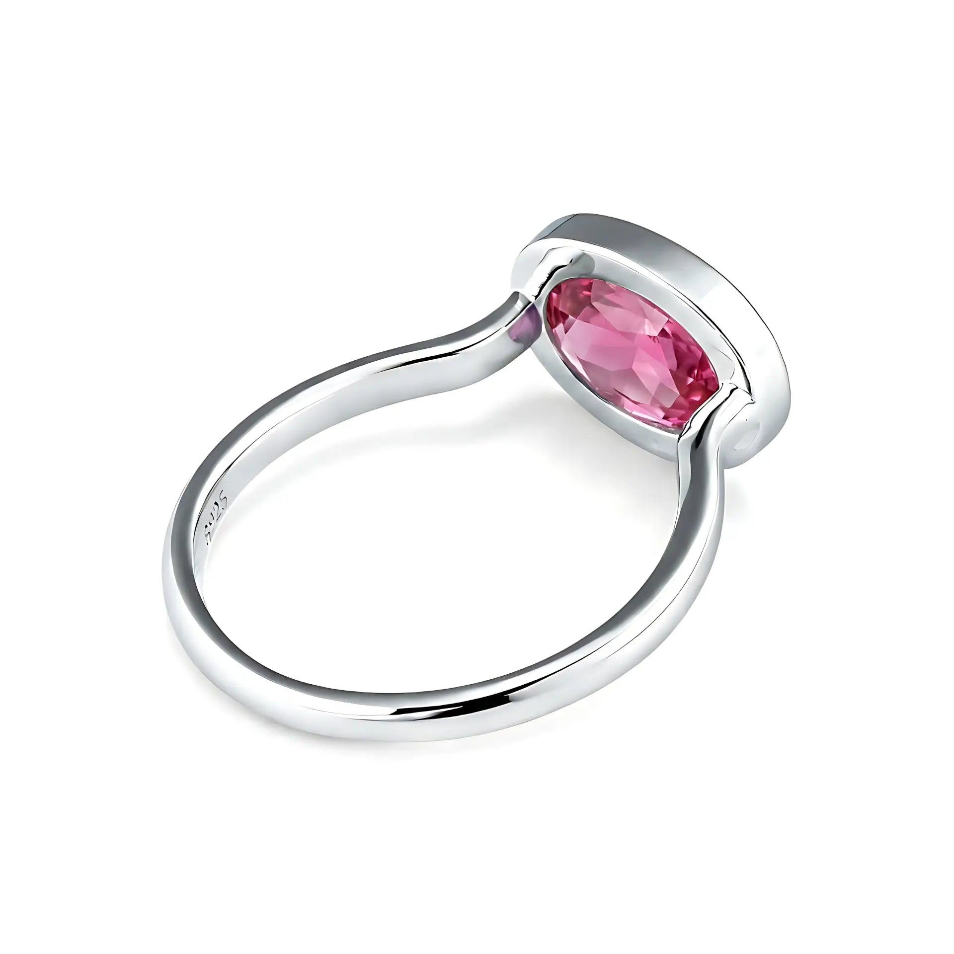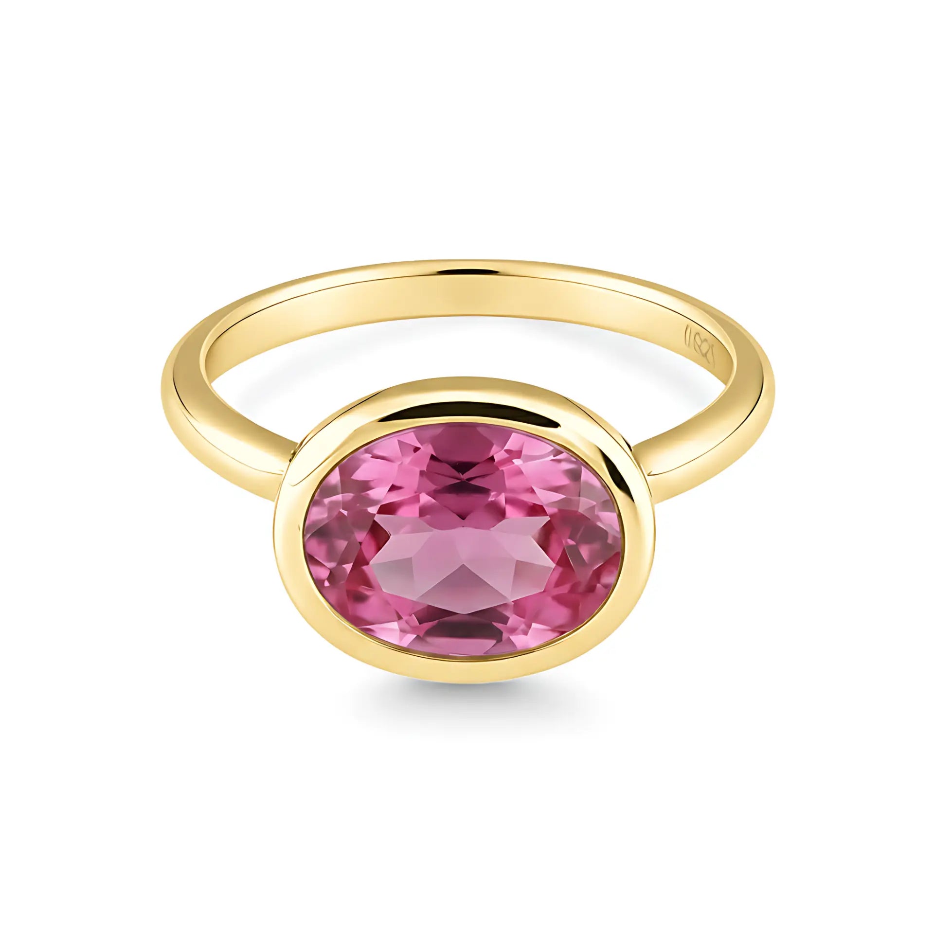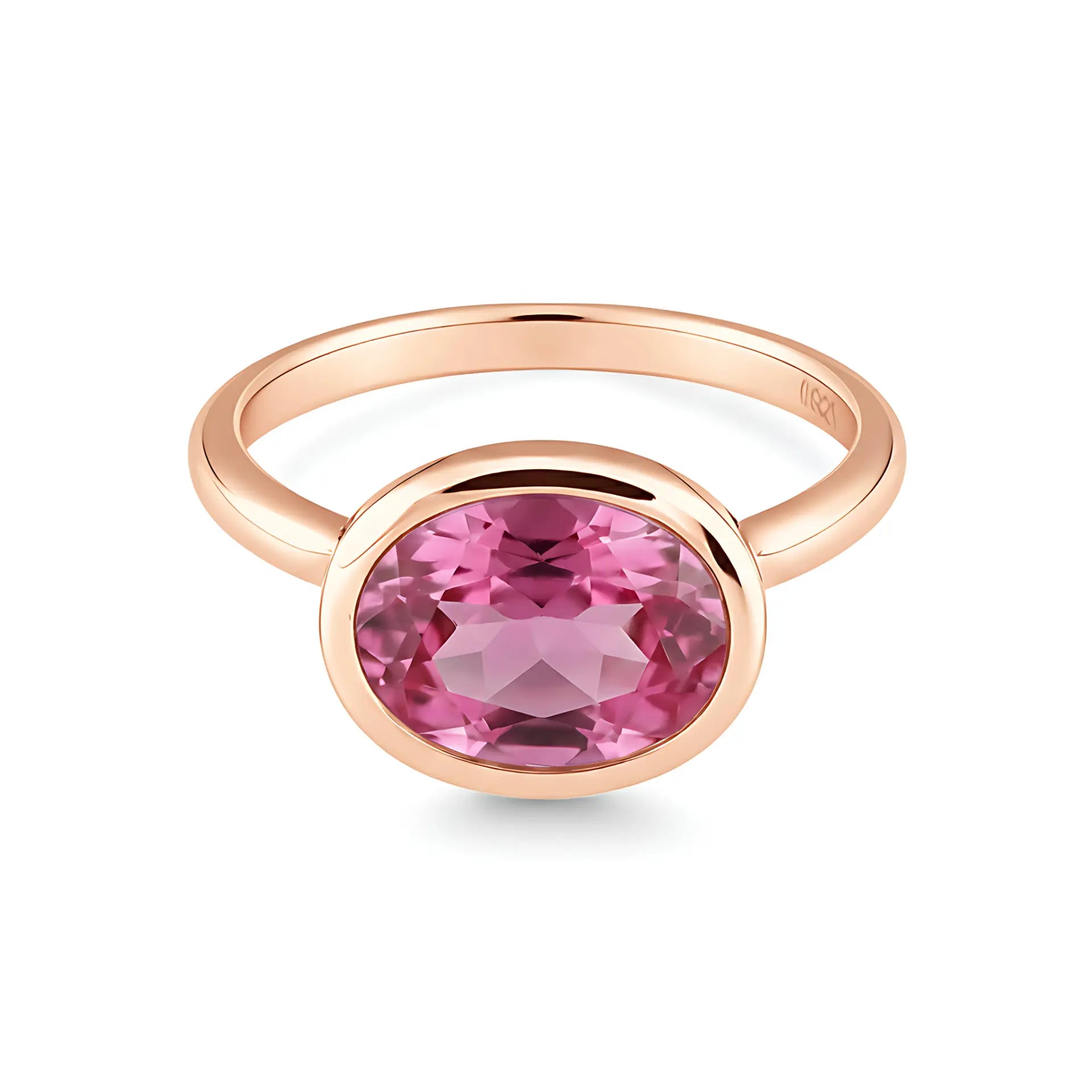 Oval Pink Tourmaline Bezel Ring - Contour
