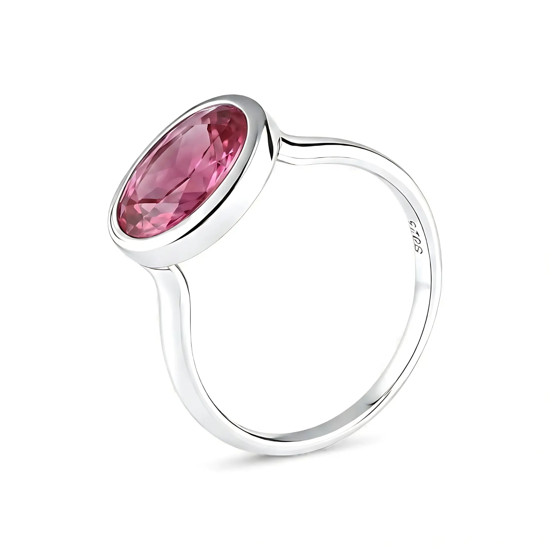 A touch of twilight warmth rests on your hand. The silver band curves gently, creating a safe embrace that fully wraps the oval pink tourmaline. This seamless bezel setting softens the gem's brilliance into a quiet, deep glow rather than a loud sparkle. It feels like a shy blush or a secret comfort. Let this piece be a tender reminder to hold onto your own softness and inner warmth.
