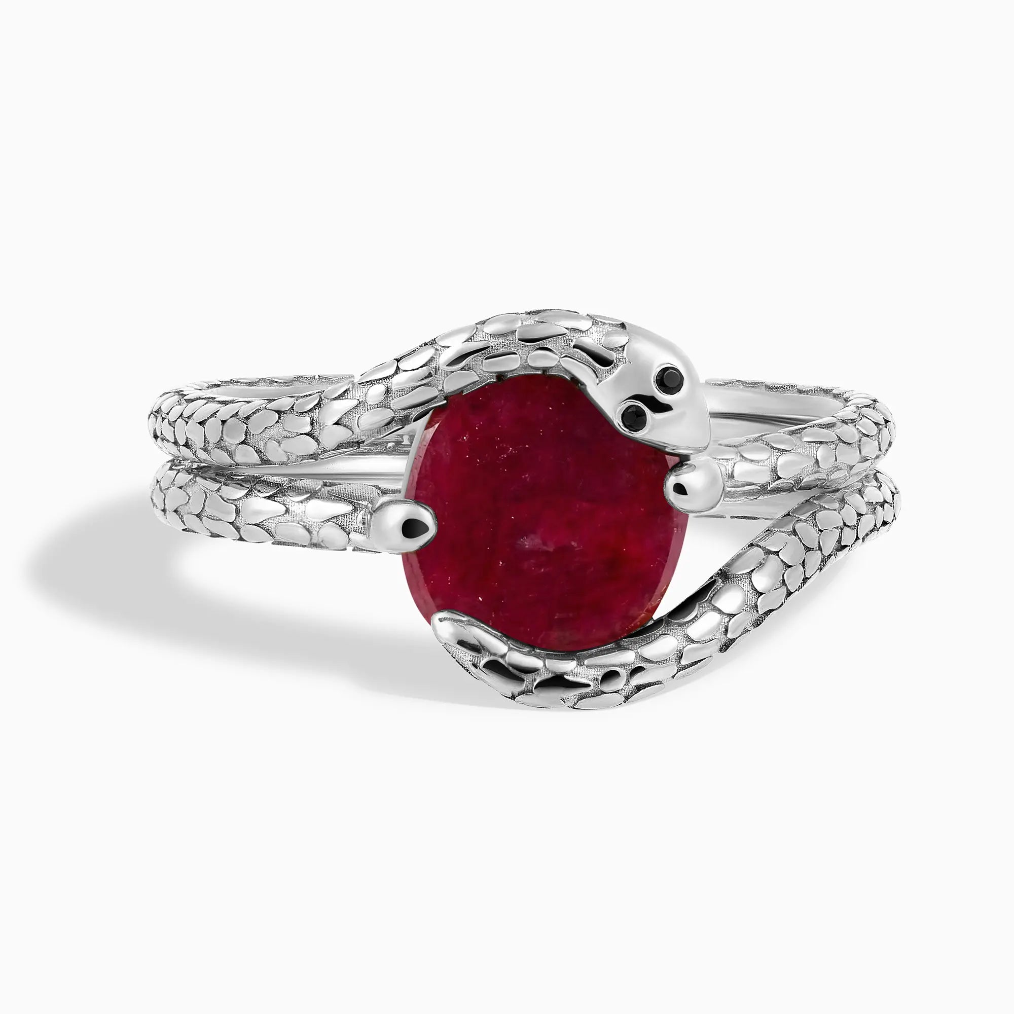 Oval Ruby Coil Ring - Serpent's Embrace