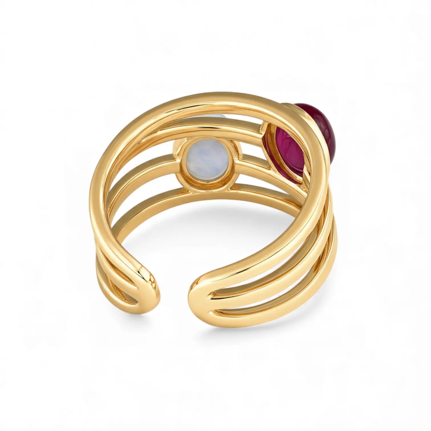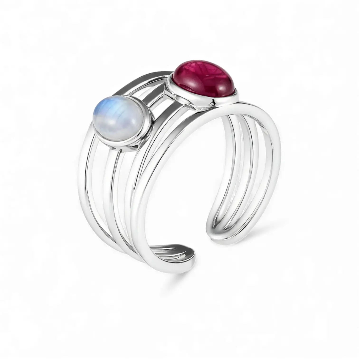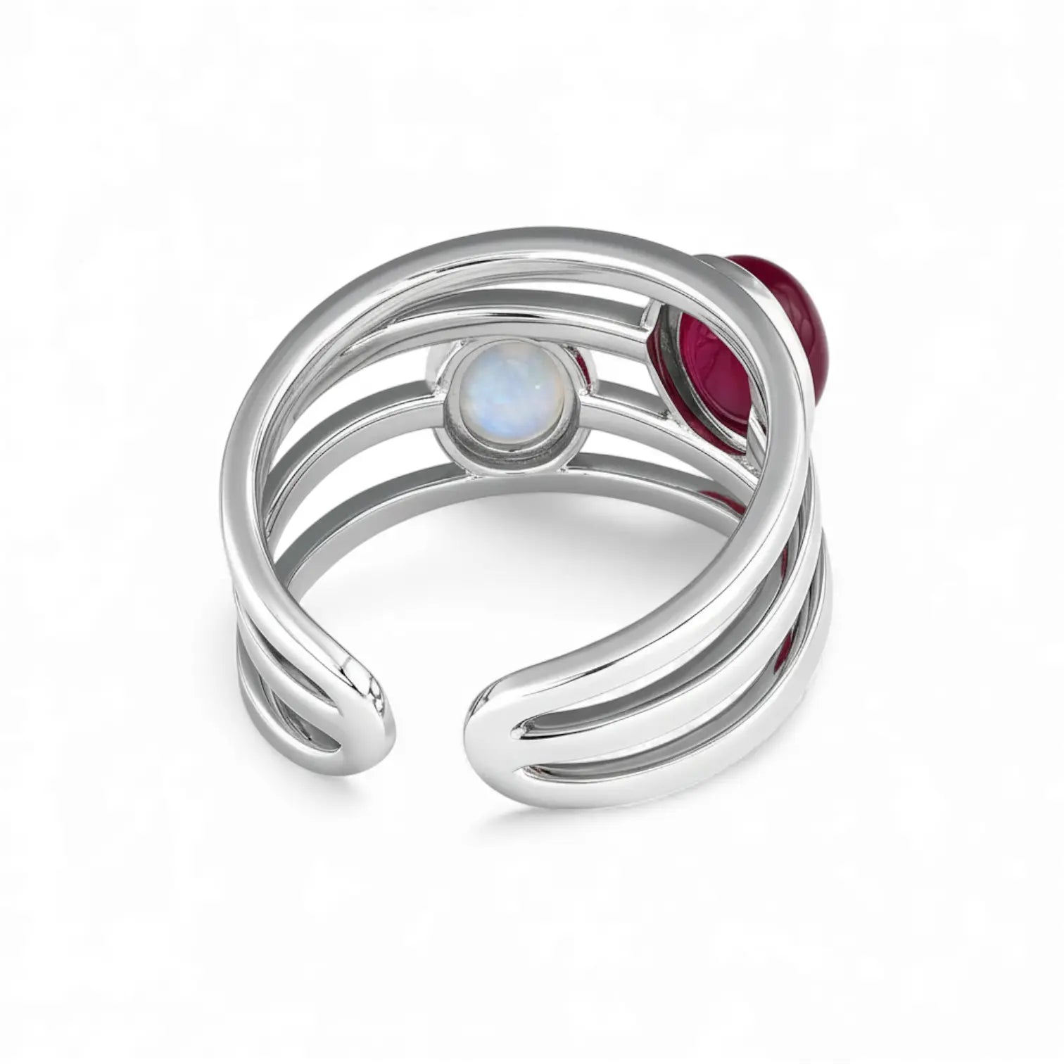 Oval Ruby & Moonstone Ring - Echo of Balance