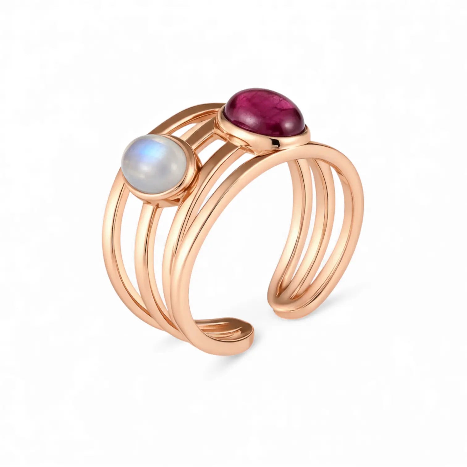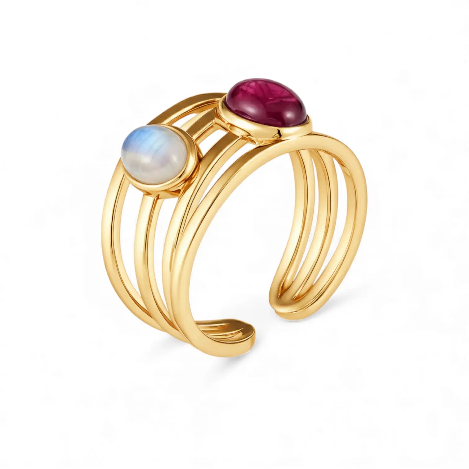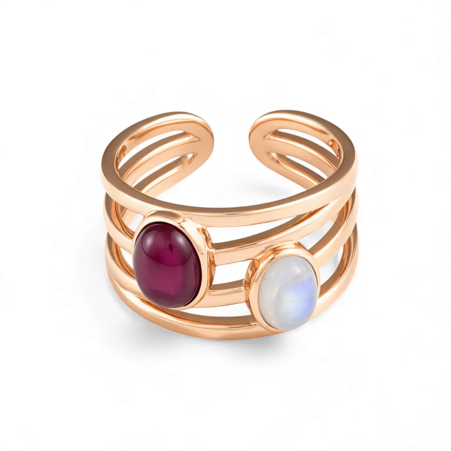 Oval Ruby & Moonstone Ring - Echo of Balance