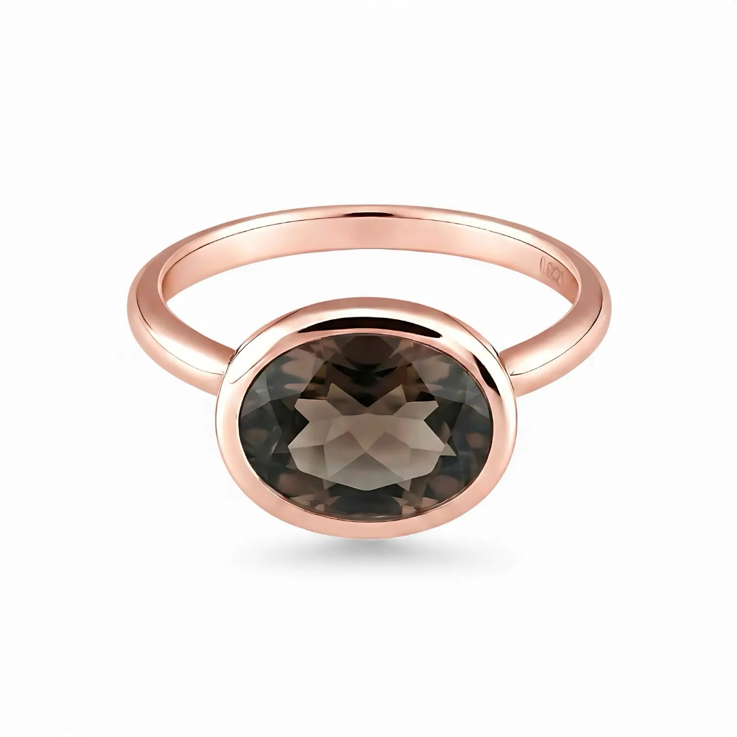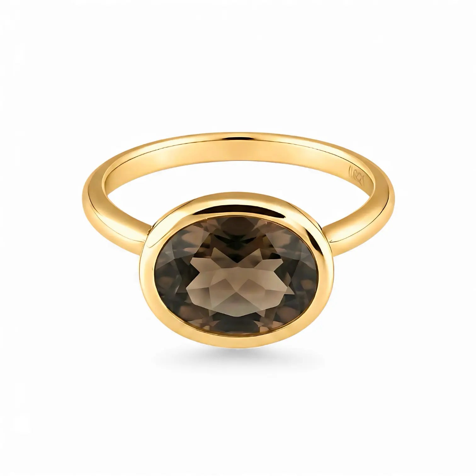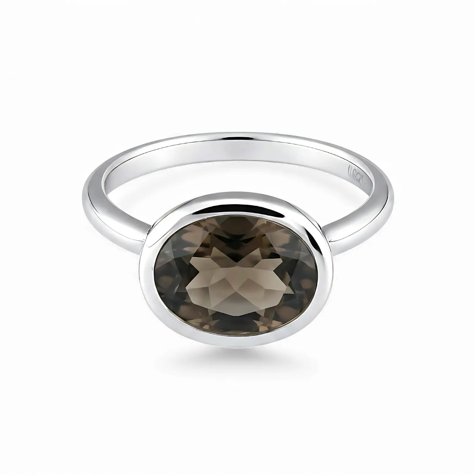 Metal flows gently around the oval smoky quartz, its deep tone resting on the finger with a quiet, grounding presence. The design feels open and unhurried, giving the day room to soften. Each line remains calm and measured, guiding the wearer back to a steady rhythm and a sense of balance that feels close and reassuring.