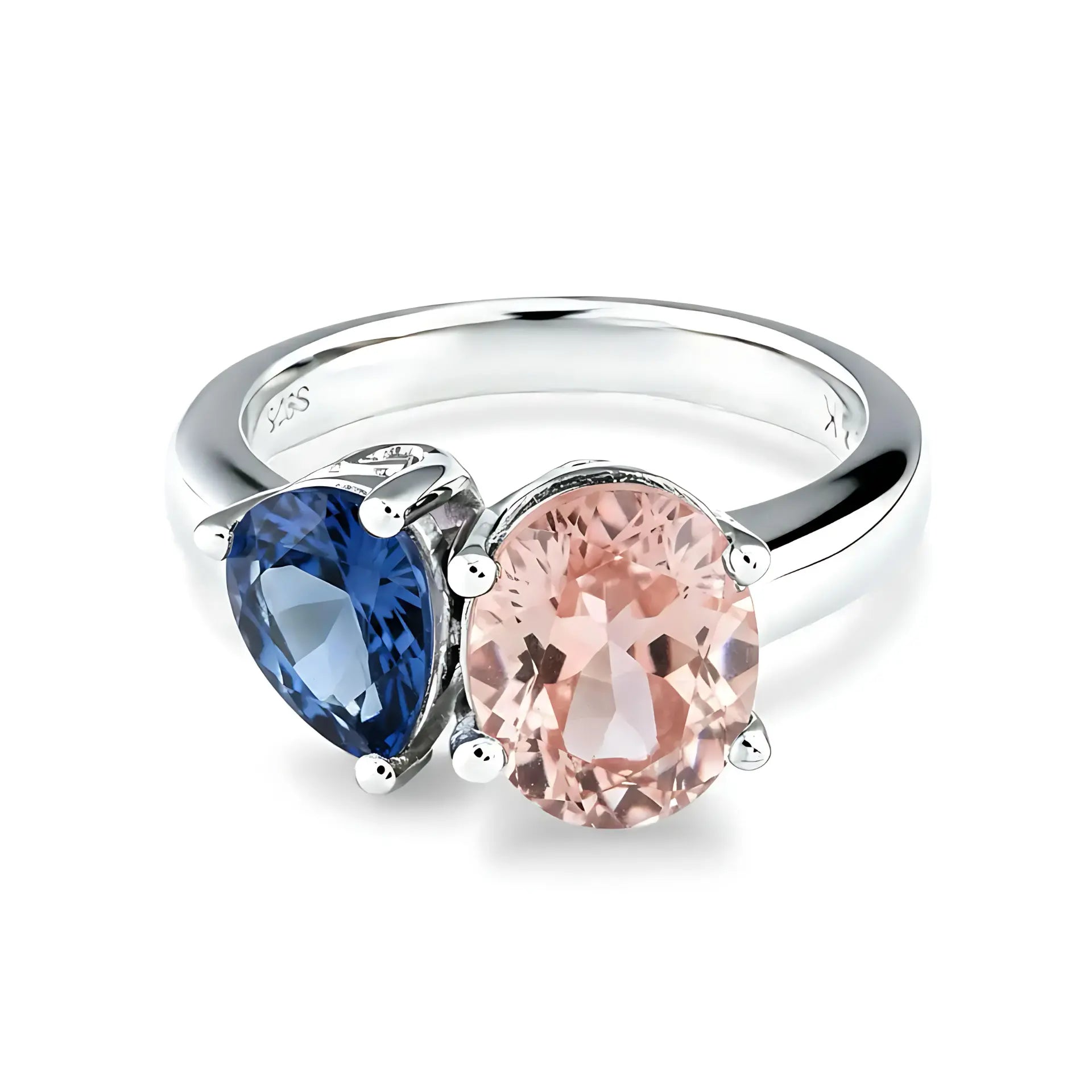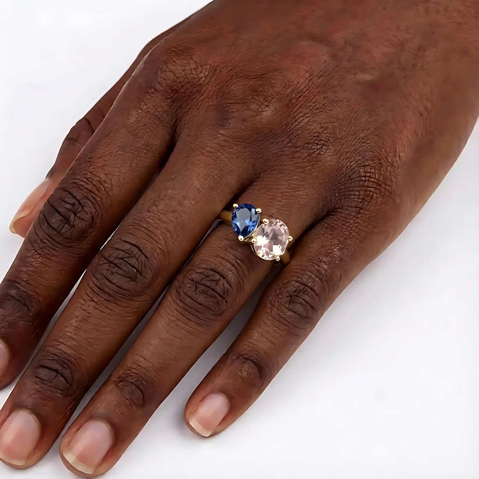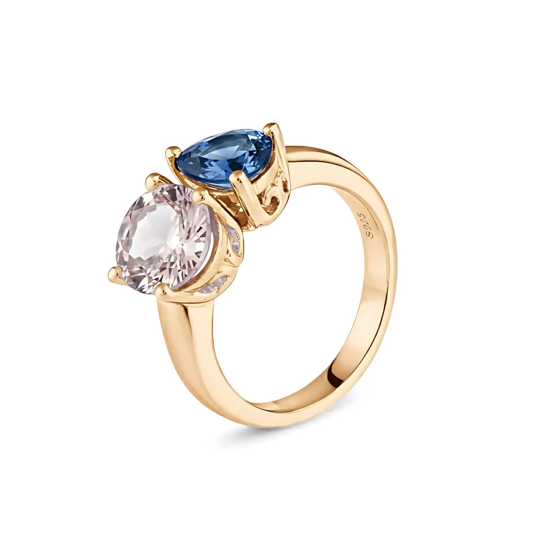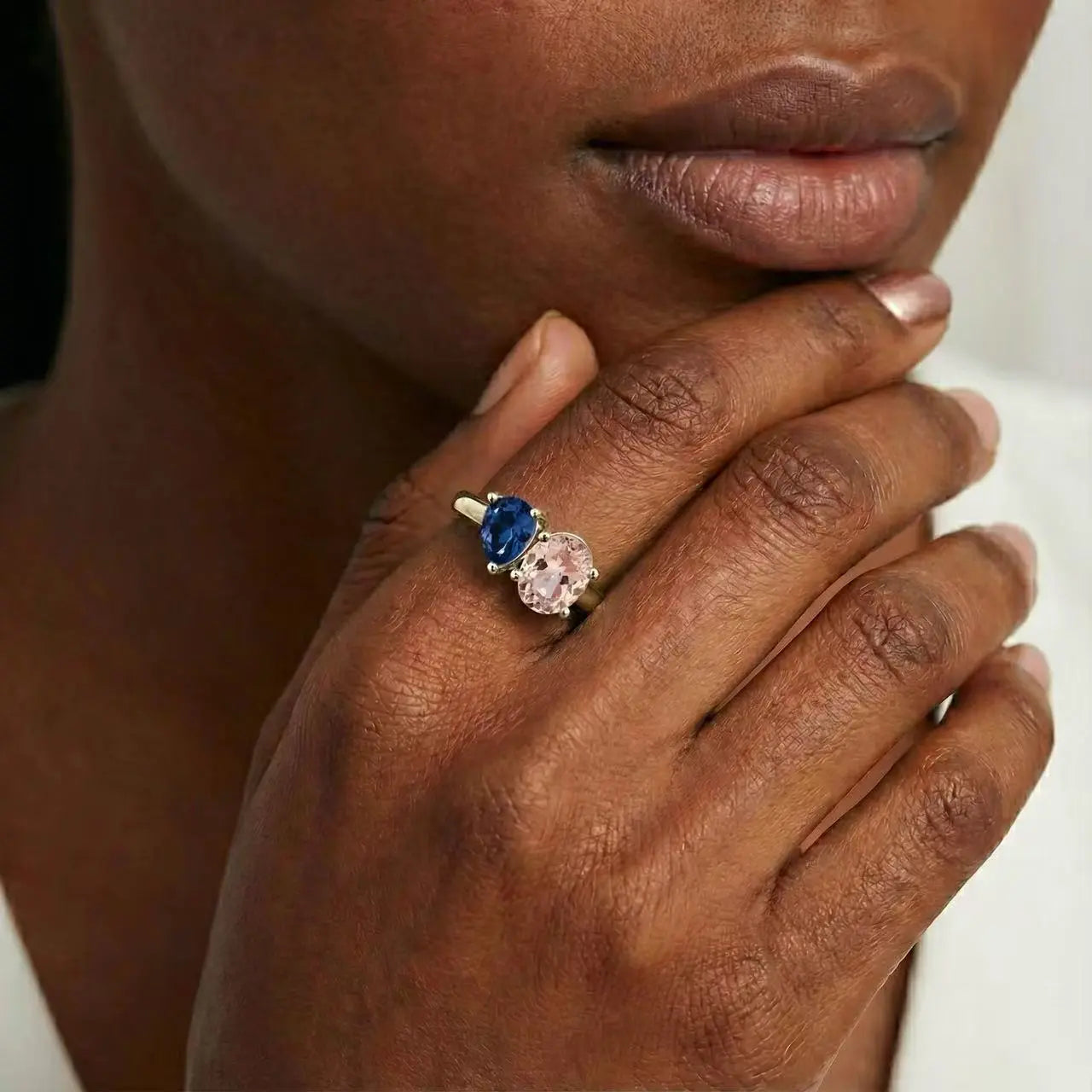 Pear London Blue Topaz & Oval Morganite Toi et Moi Ring - Twin Reverie