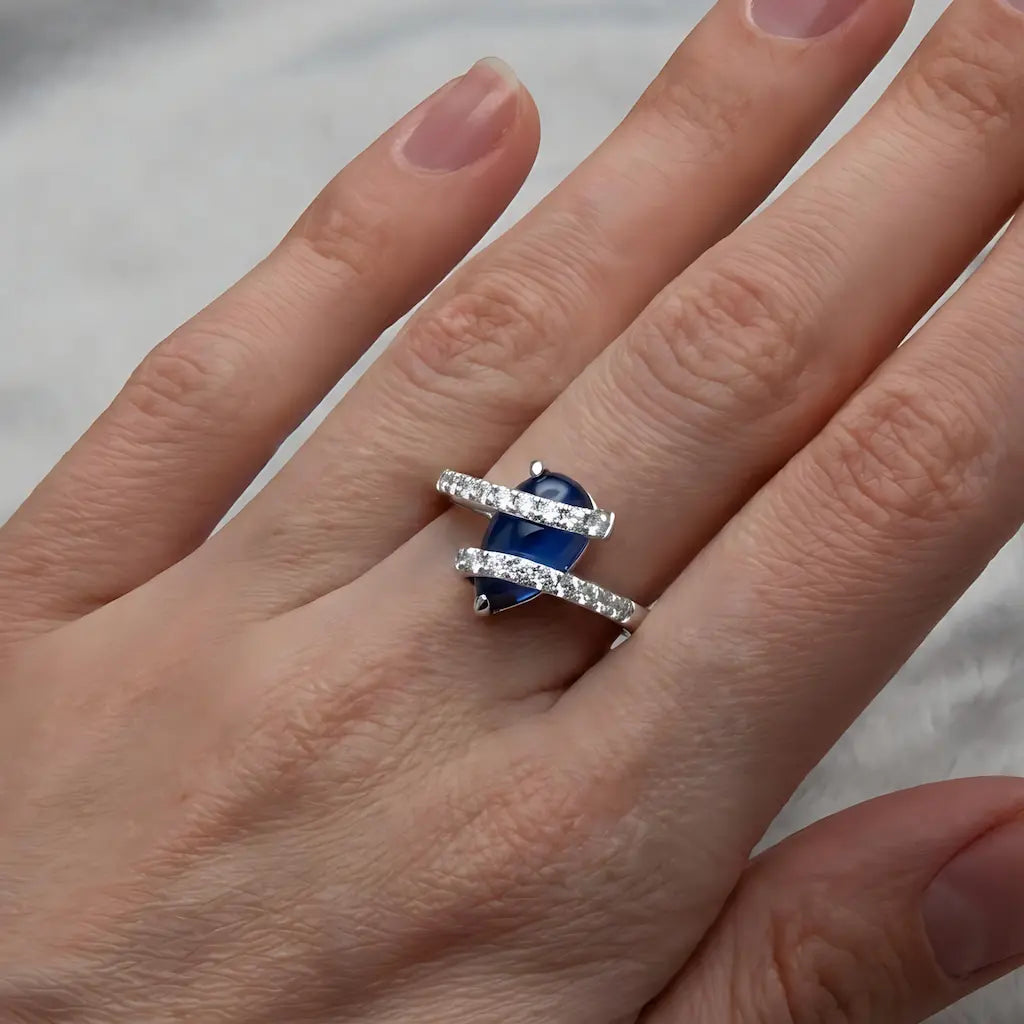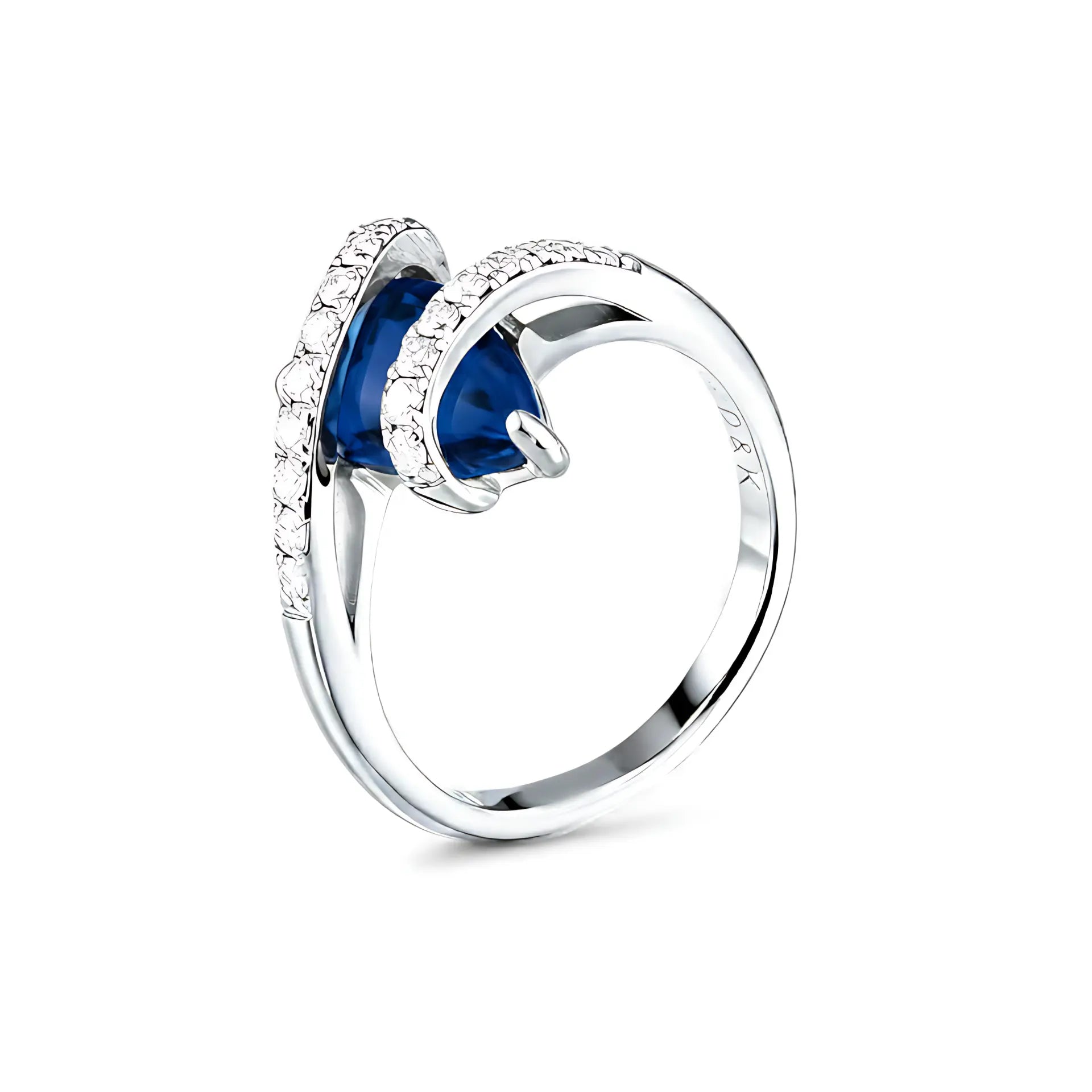 Our wrap ring from the Orbit collection clears a path for your thoughts and brings clarity into daily life. The deep blue of London Blue Topaz carries a cool, steady brightness. And the wrapped bands on each side frame it with a clean touch of light. It sharpens your judgment, steadies your heart, and helps you find direction in the midst of complexity. It becomes a clear, steady anchor in your everyday world.