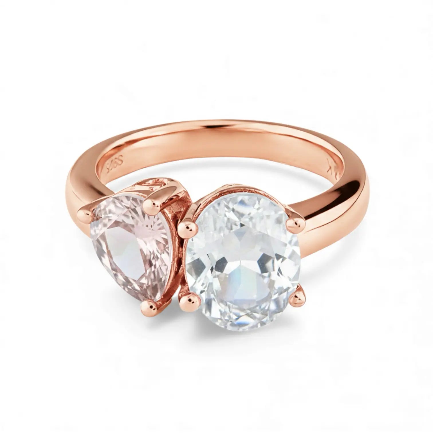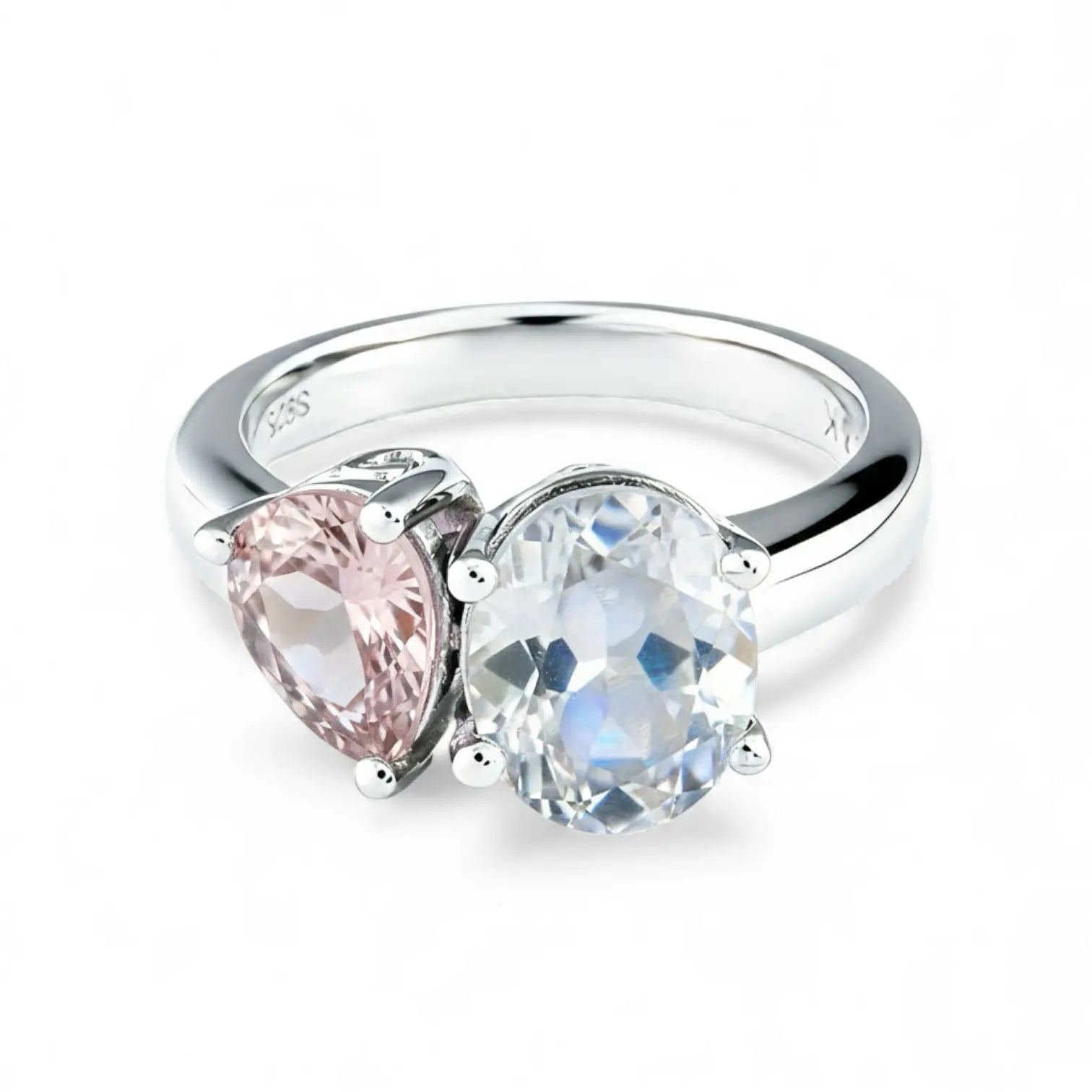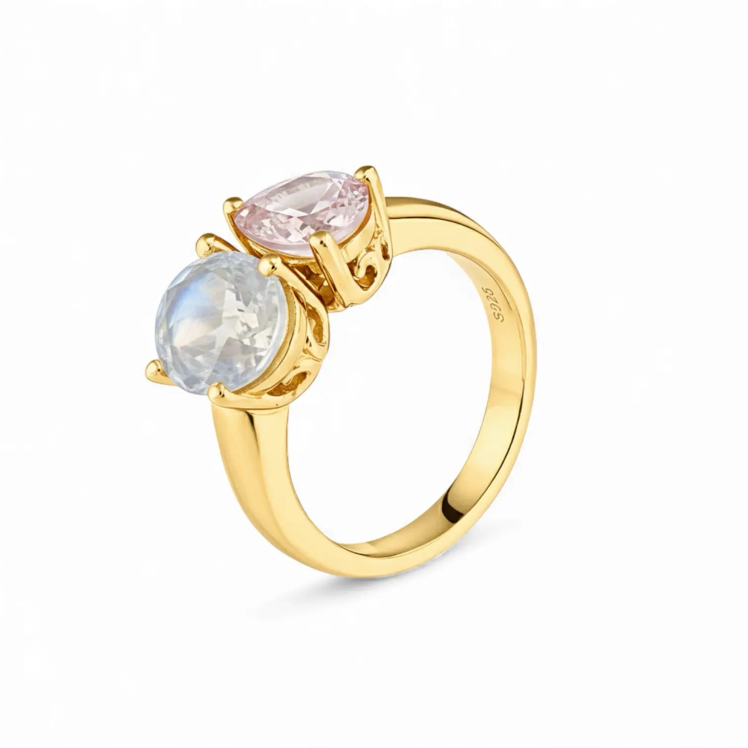 Pear Morganite & Oval Moonstone Toi et Moi Ring - Twin Reverie