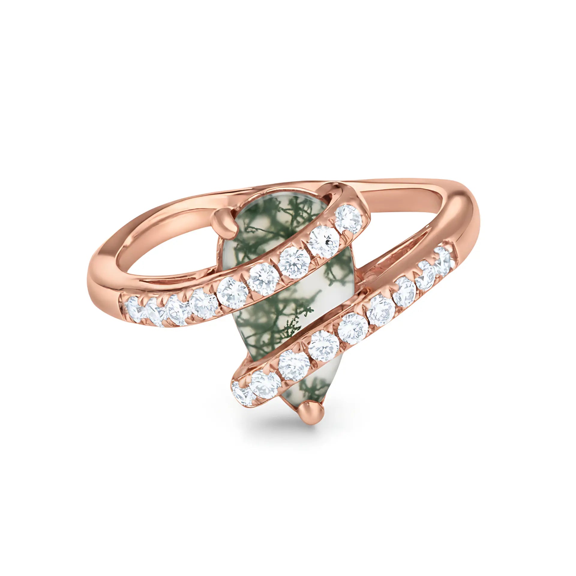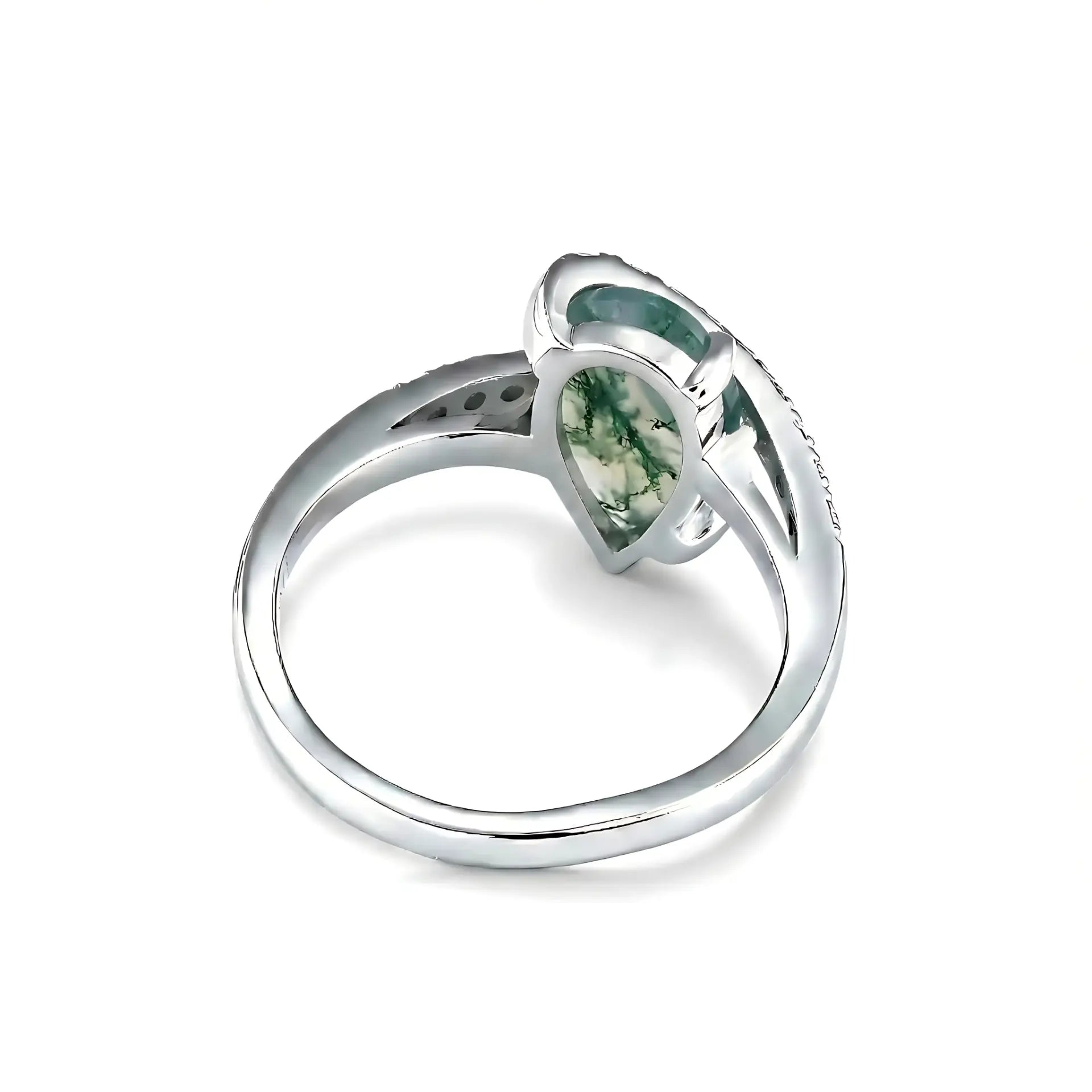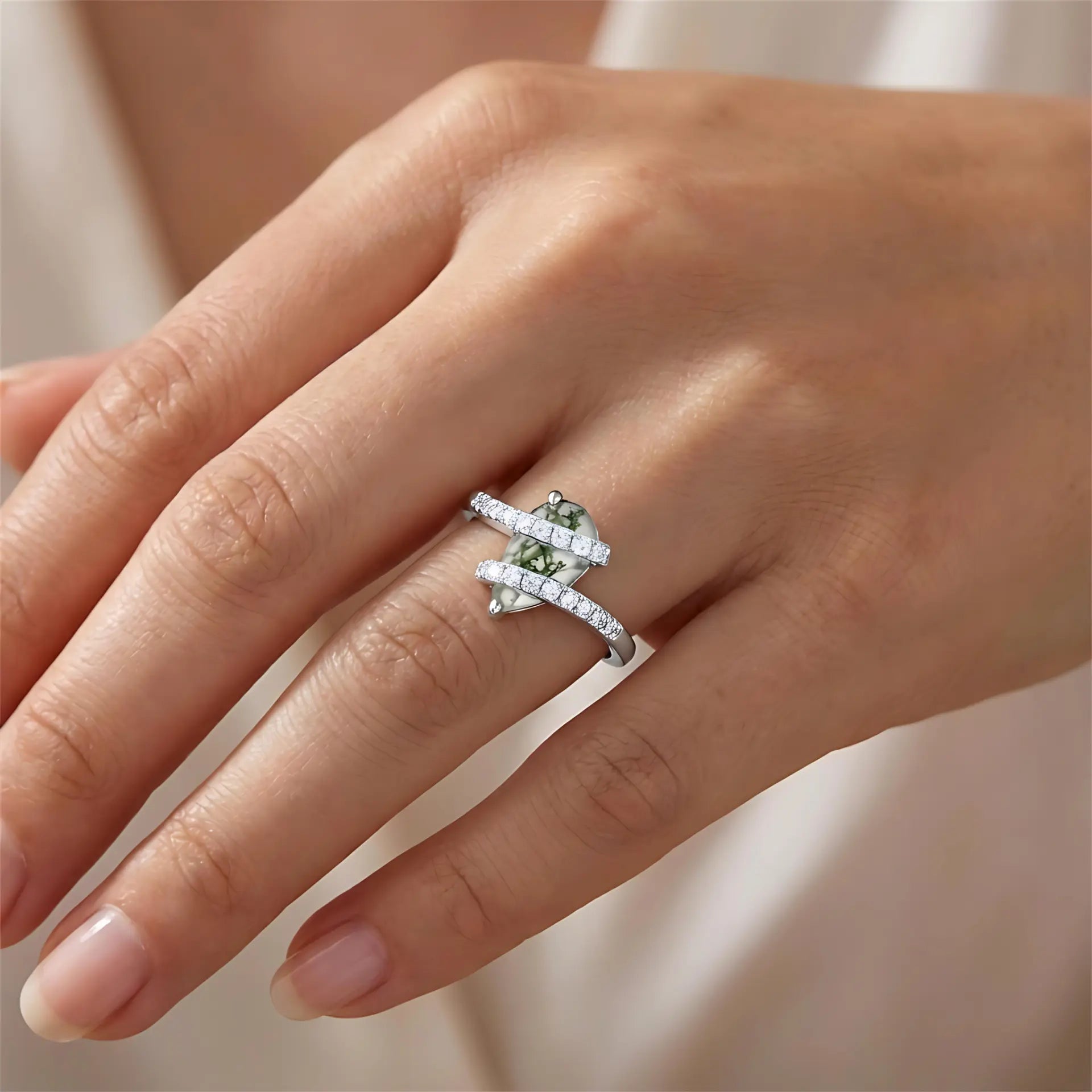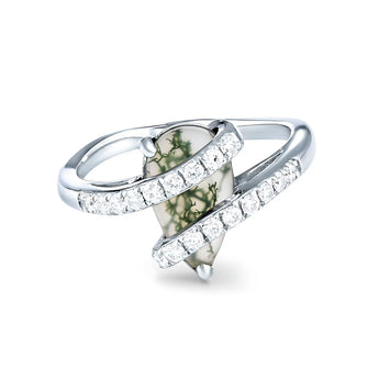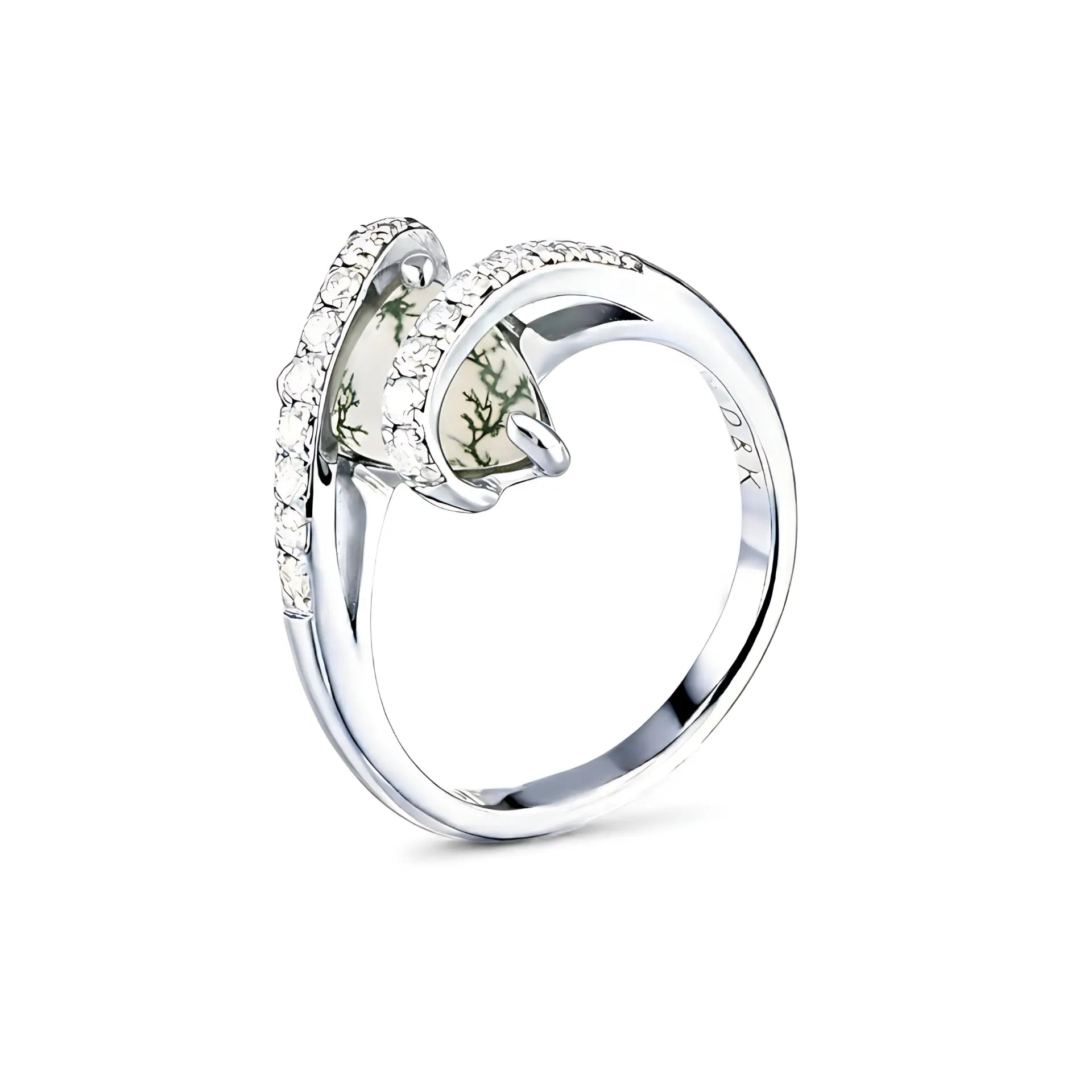Our ring conceals a quiet, upward-growing force. Within its translucent green lies a life-giving texture reminiscent of moss, gently cradled by the wrapping band. The zircon's sparkles, like morning light on tender buds, imbue the entire ring with a subtle, burgeoning vitality. Let this Moss Agate wrap ring be the piece that supports your next step. Choose it today and grow with it, day by day.
